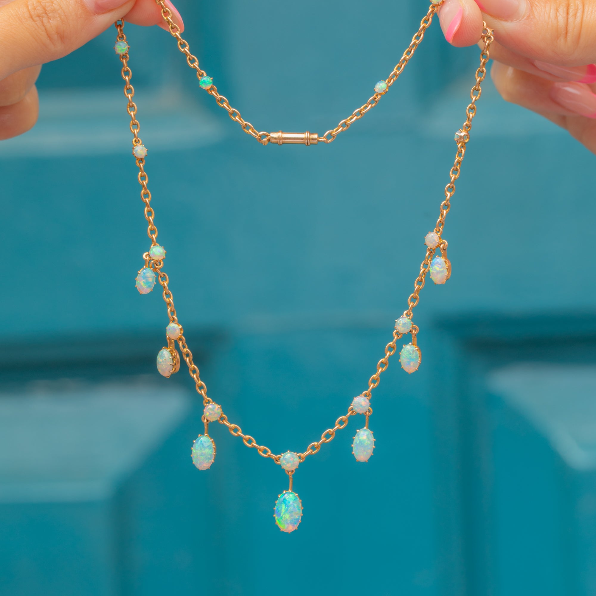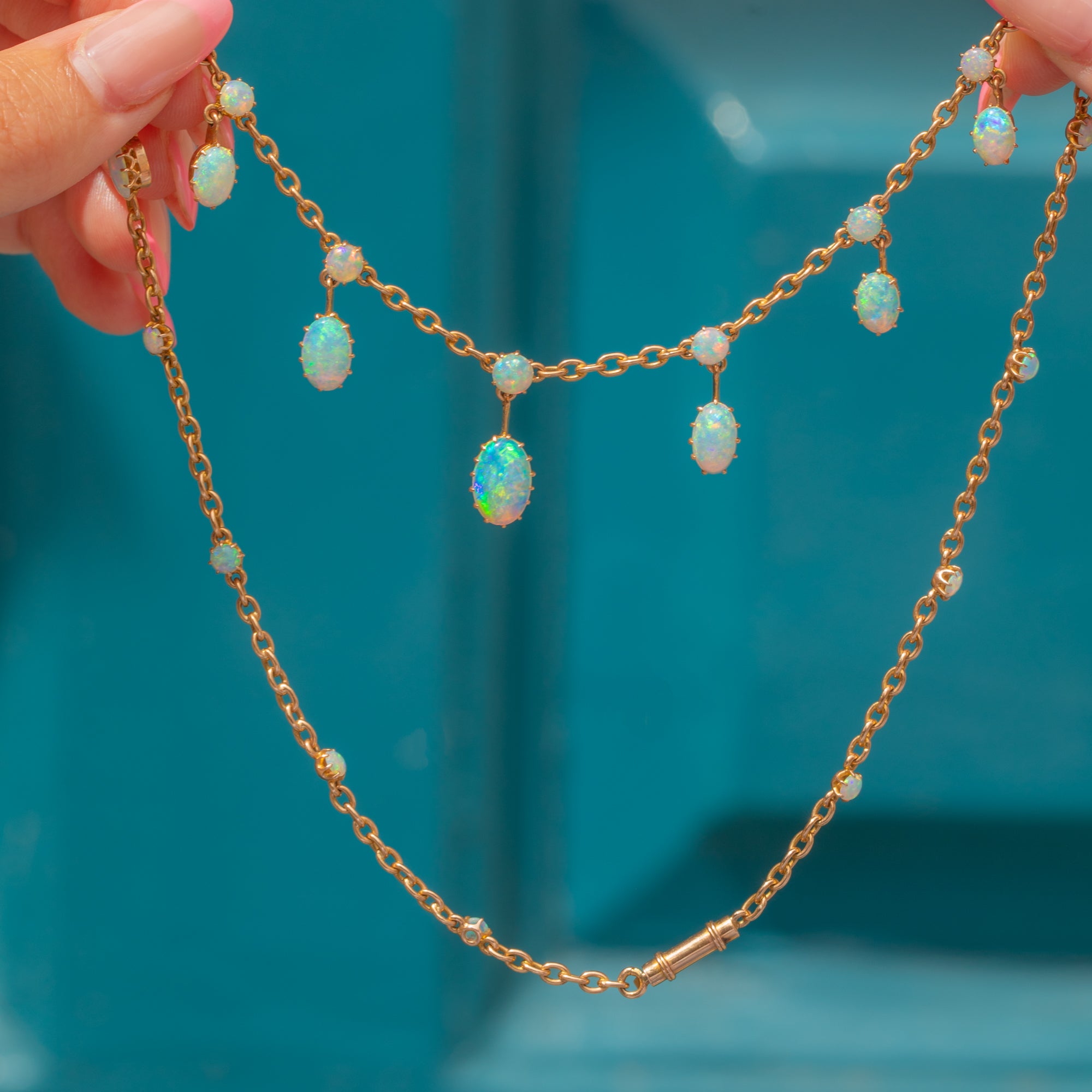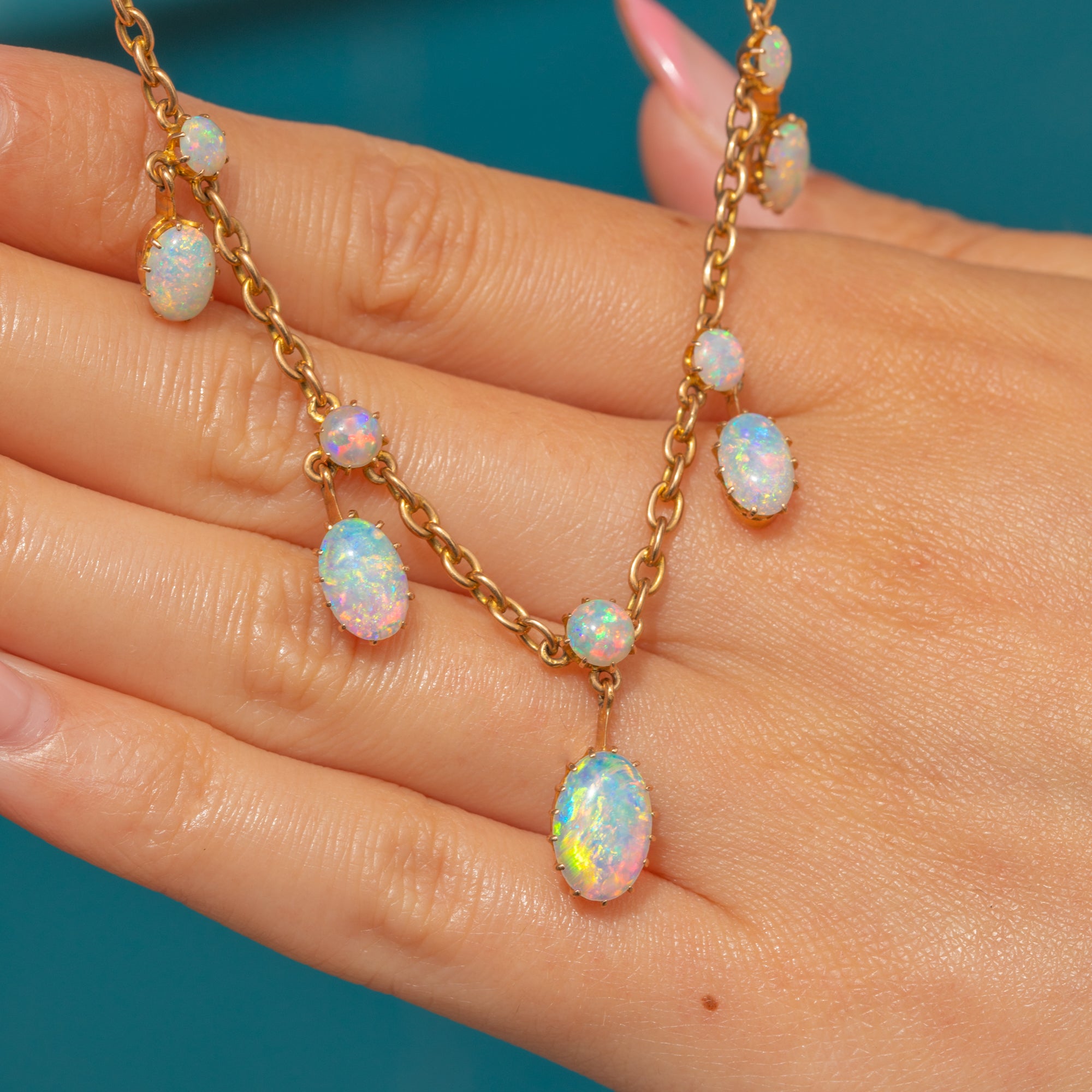 Antique 18ct Gold Opal Fringe Necklace, 6.75ct, in Antique Fitted Box