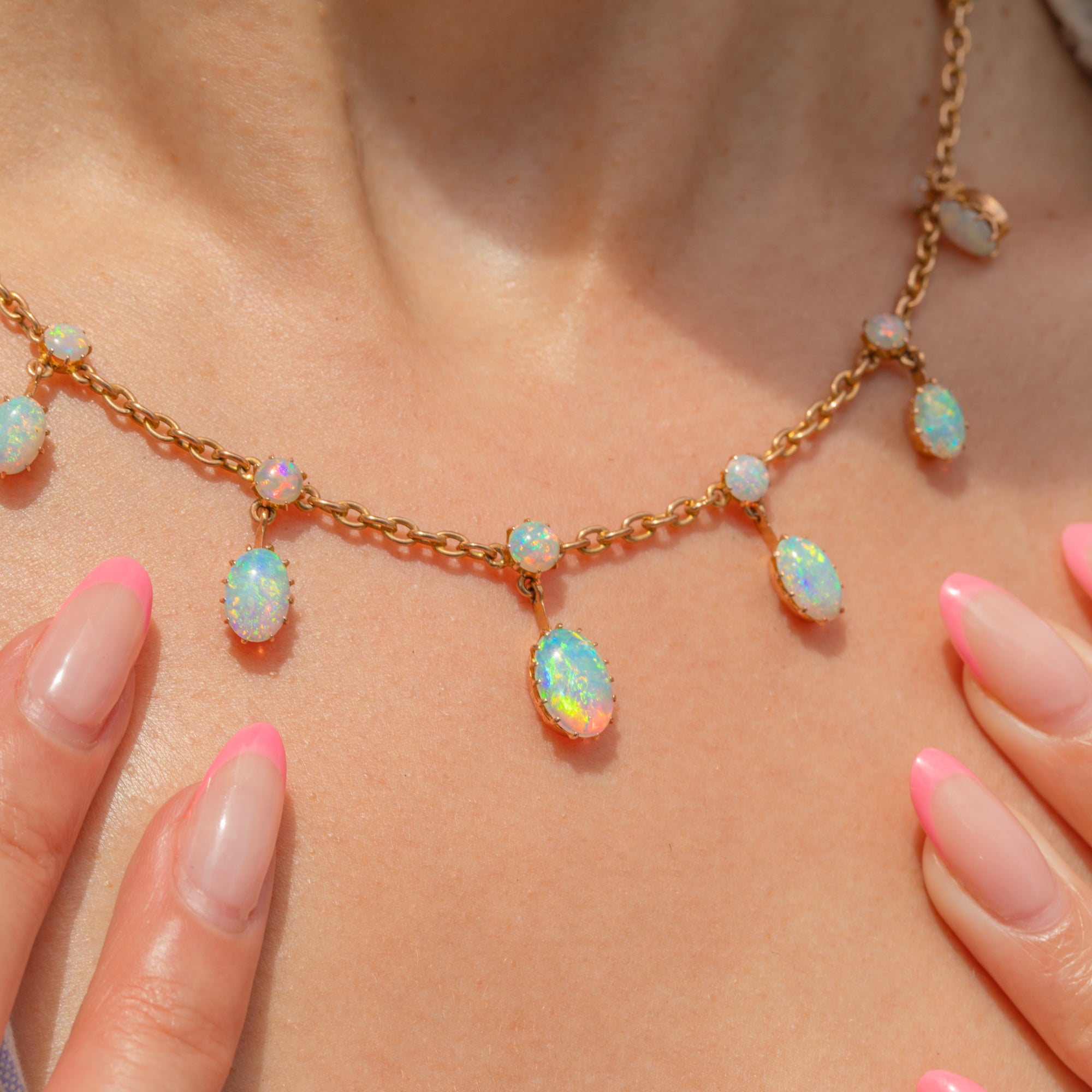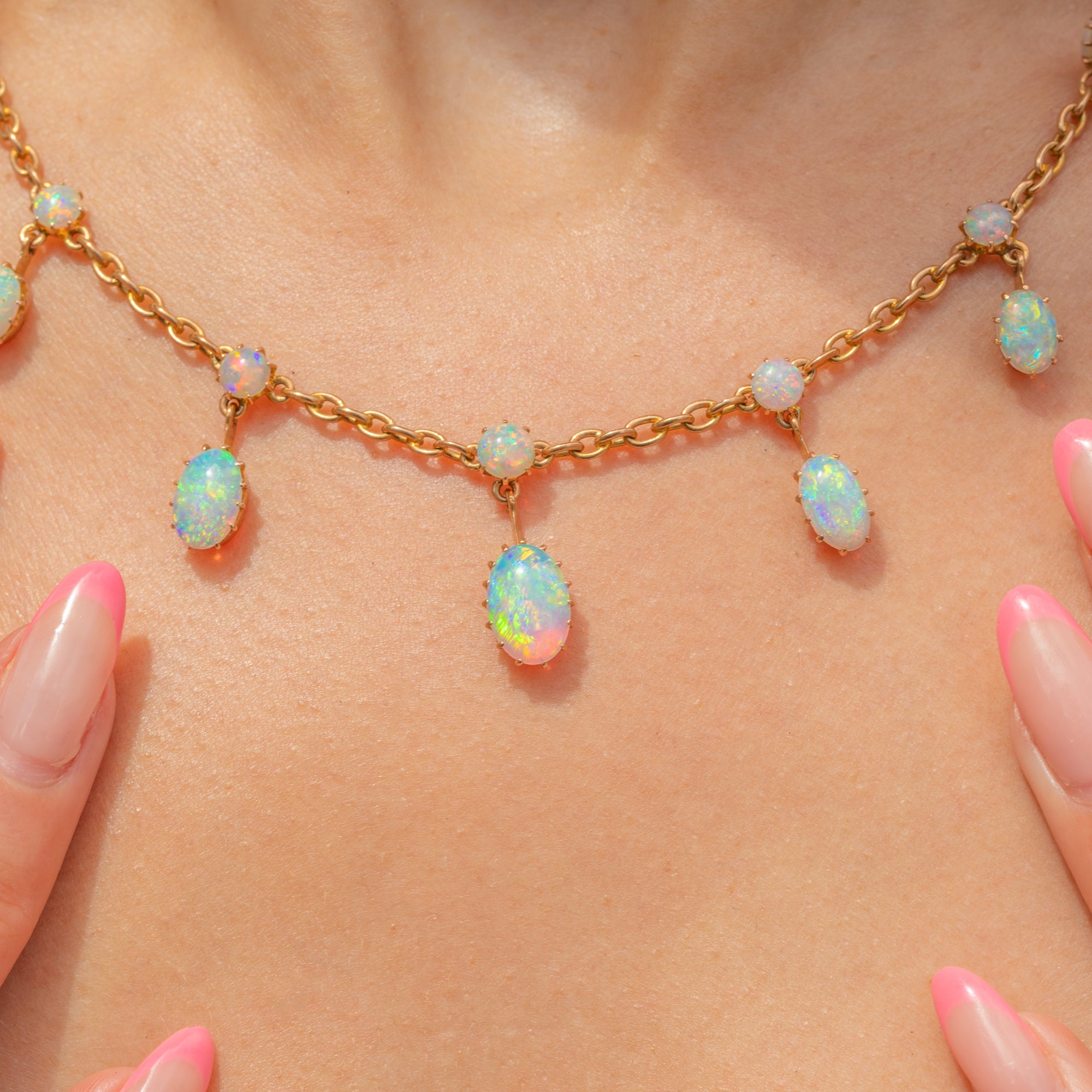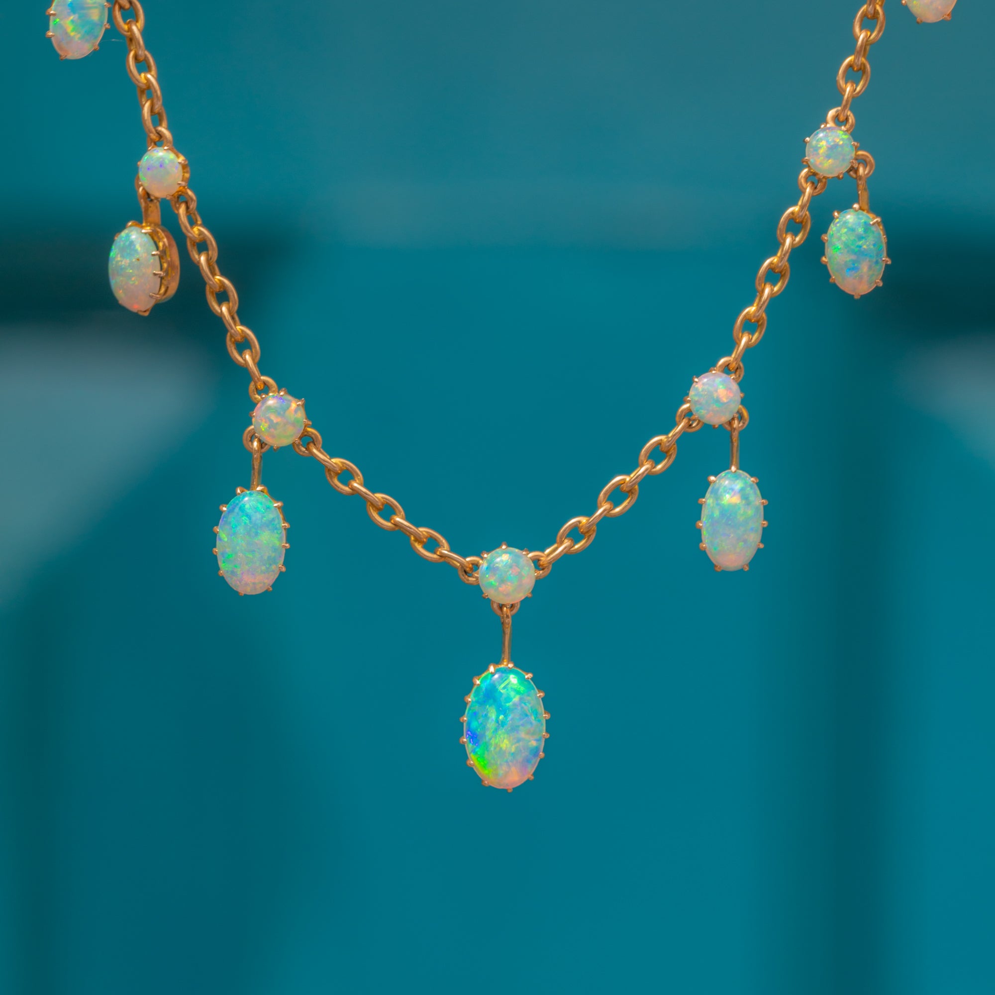 We are in awe of this antique 18ct Gold Opal fringe necklace! Displaying some of the most vibrant Opals we have ever laid eyes on, we think this piece will leave you totally enchanted.