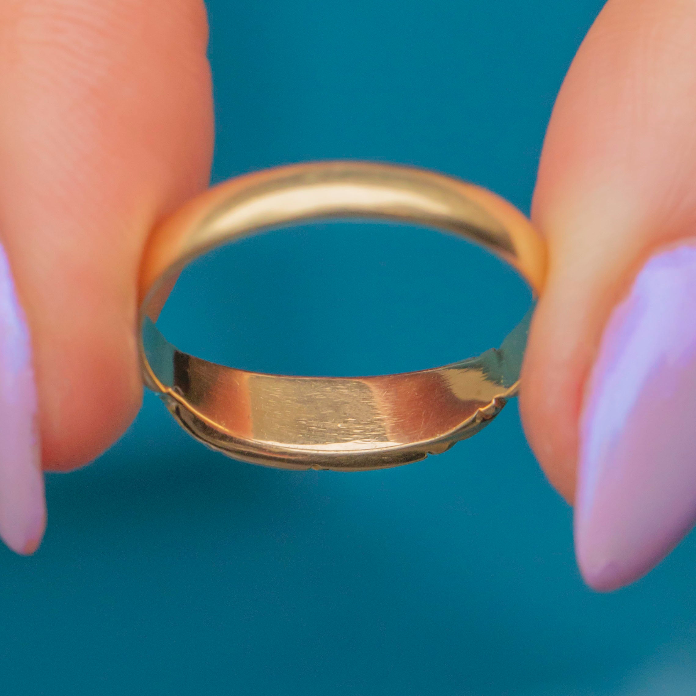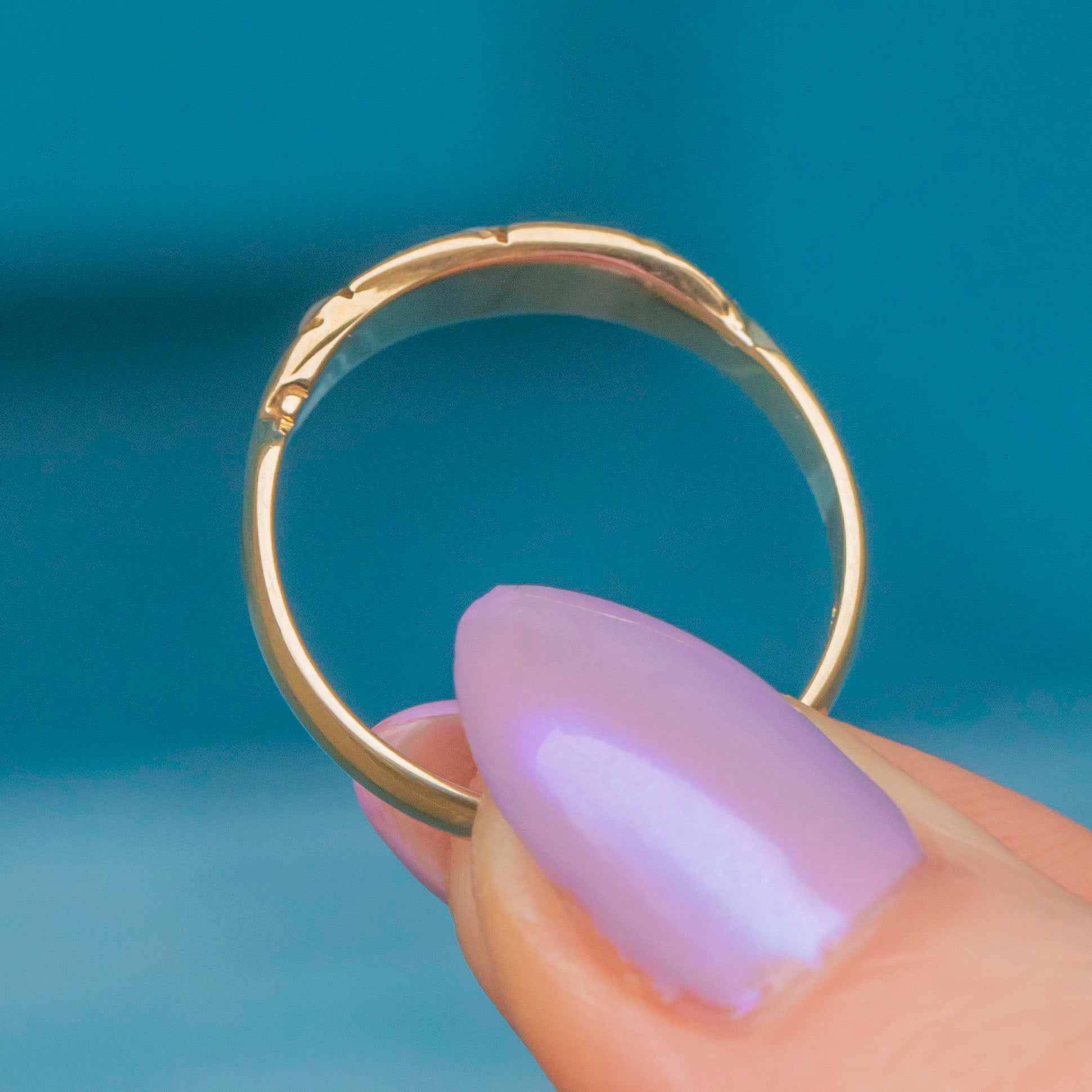 A quintessentially Victorian piece, this buttery 18ct Gold ring possesses the elegant demeanour for which this era is so well known - just look at her stunning triangular settings!