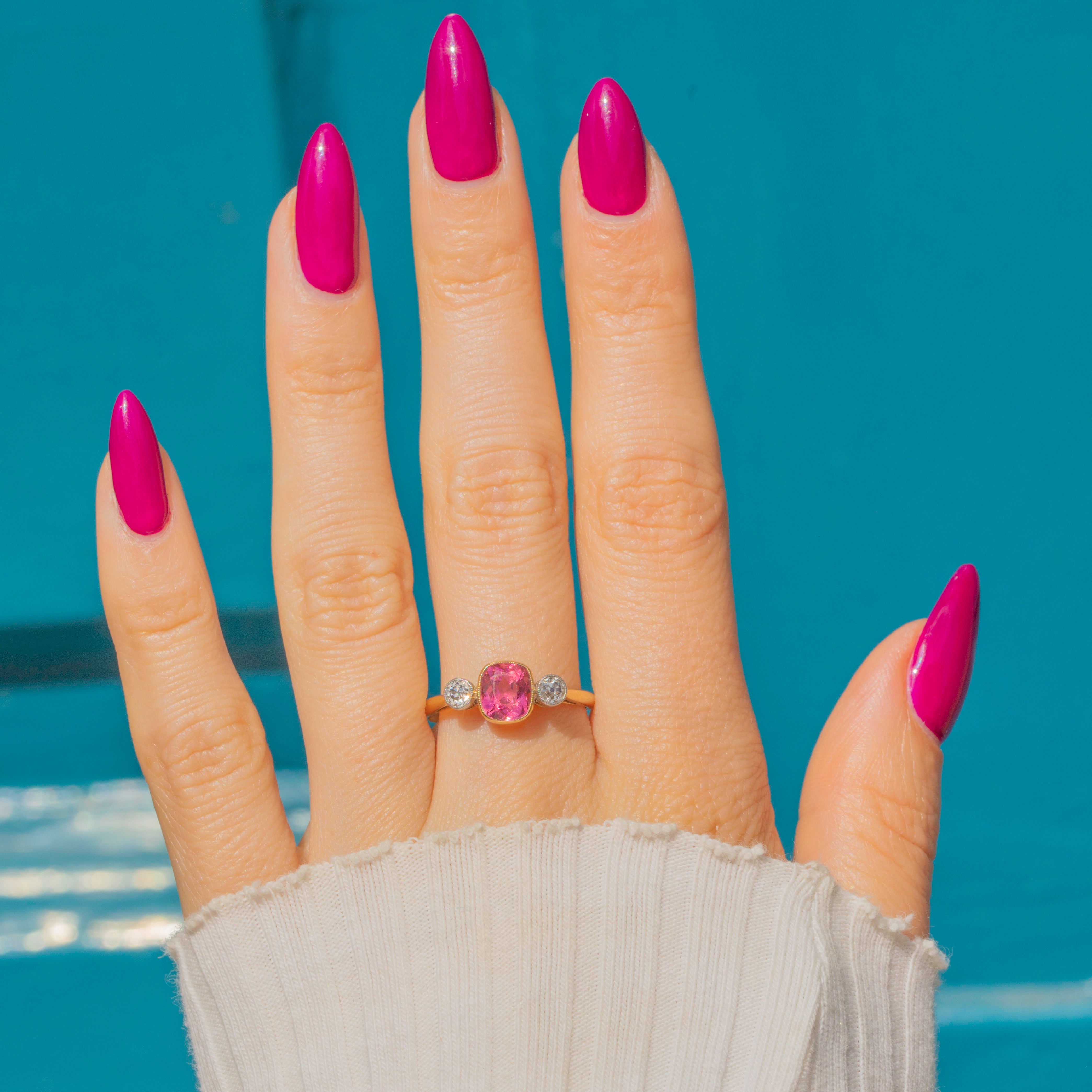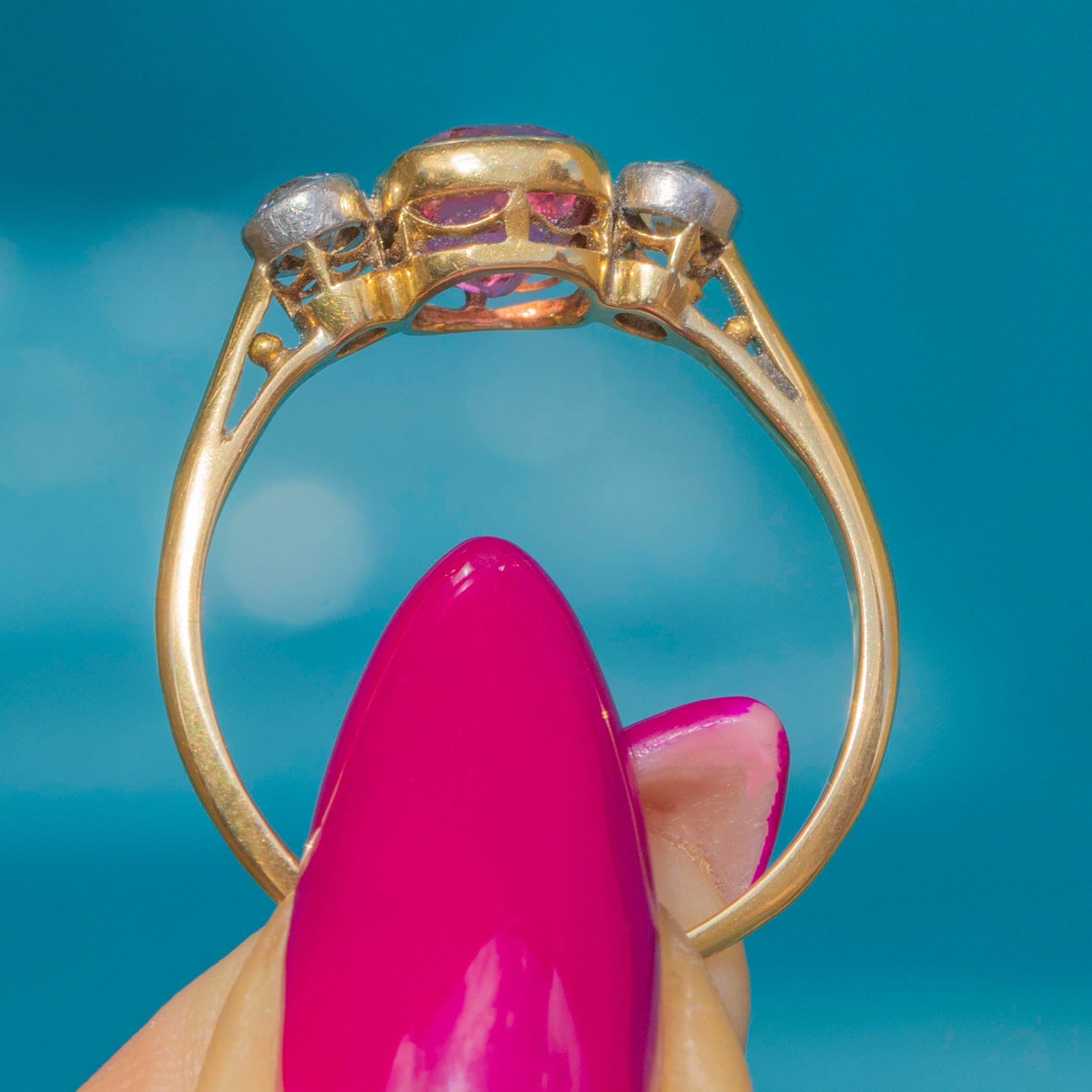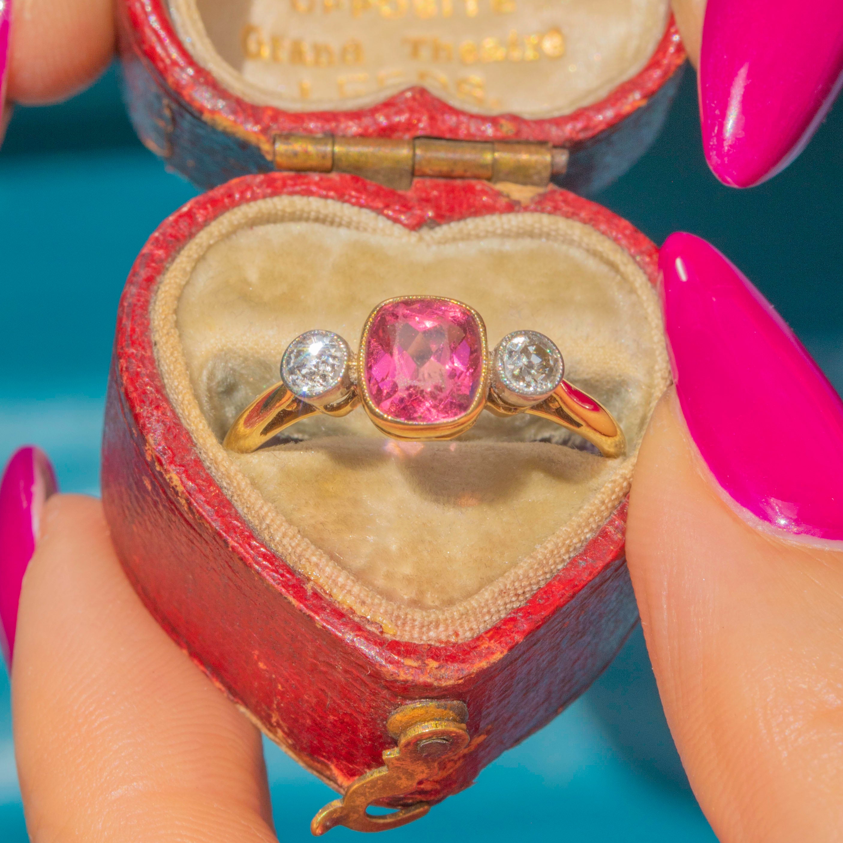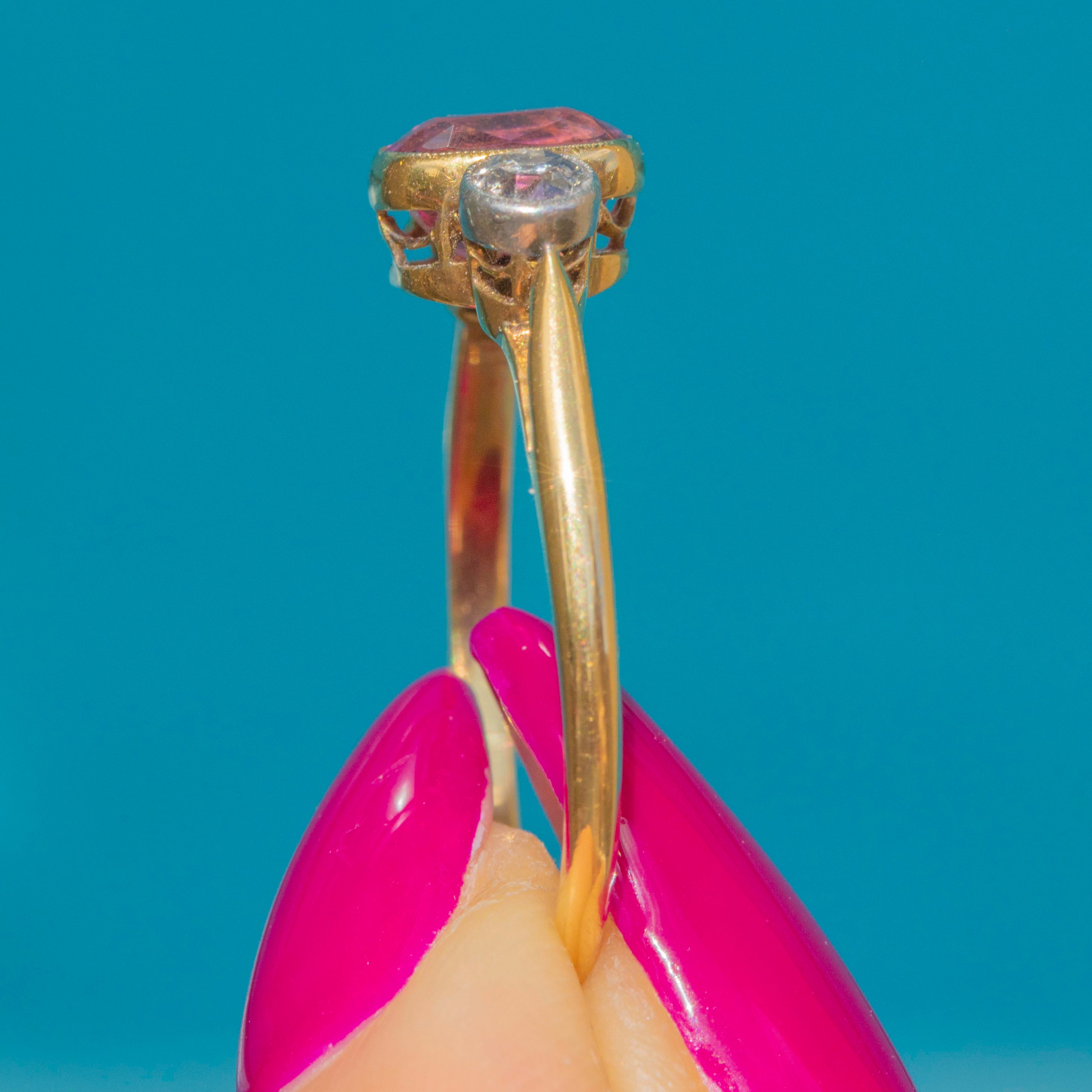 Antique 18ct Gold Pink Tourmaline Diamond Ring, 0.90ct Tourmaline