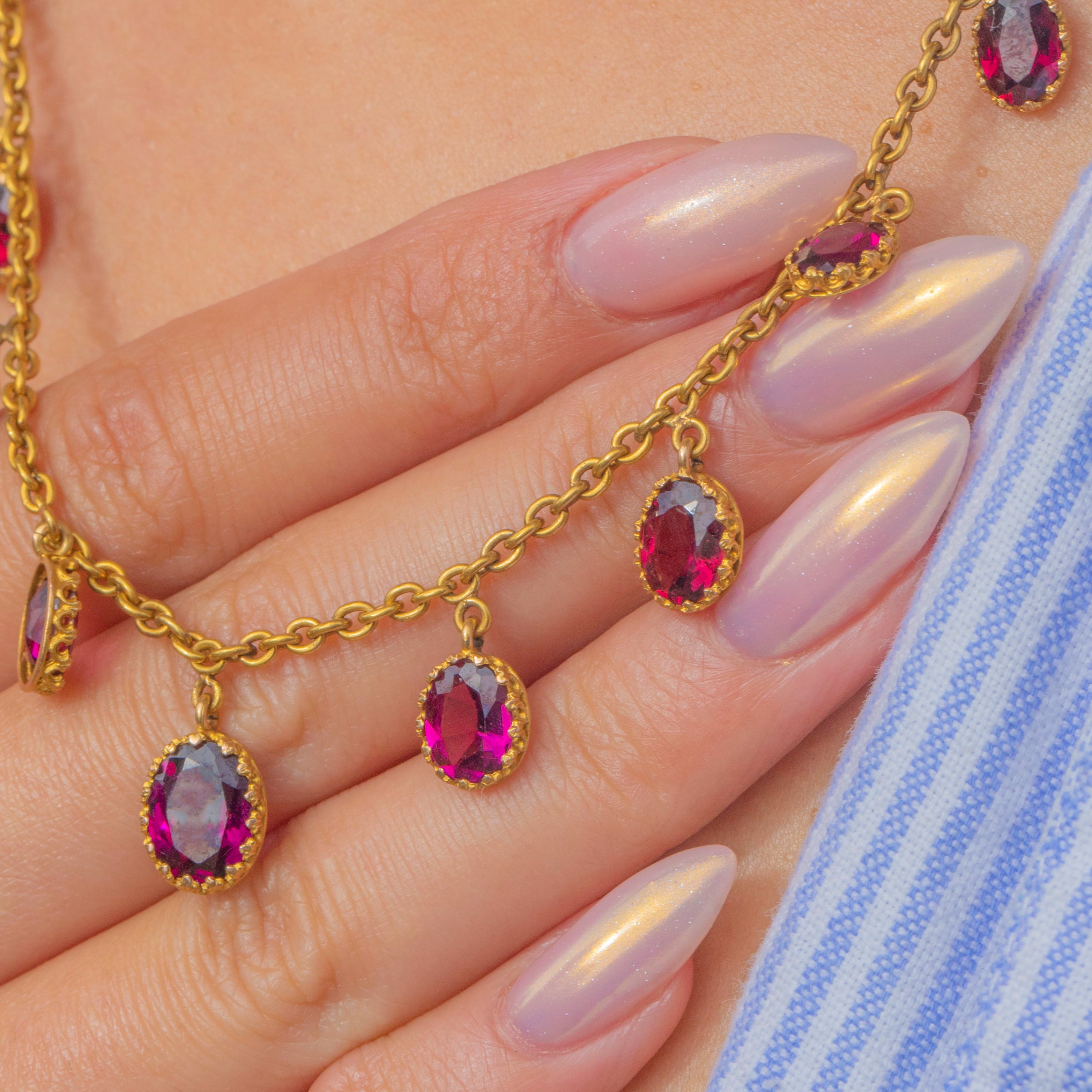 Antique 18ct Gold Rhodolite Garnet Fringe Necklace 4.50ct – Engraved Barrel Clasp
