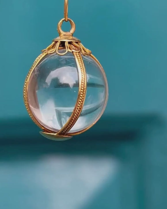 Antique 18ct Gold Rock Crystal Pools of Light Orb Pendant