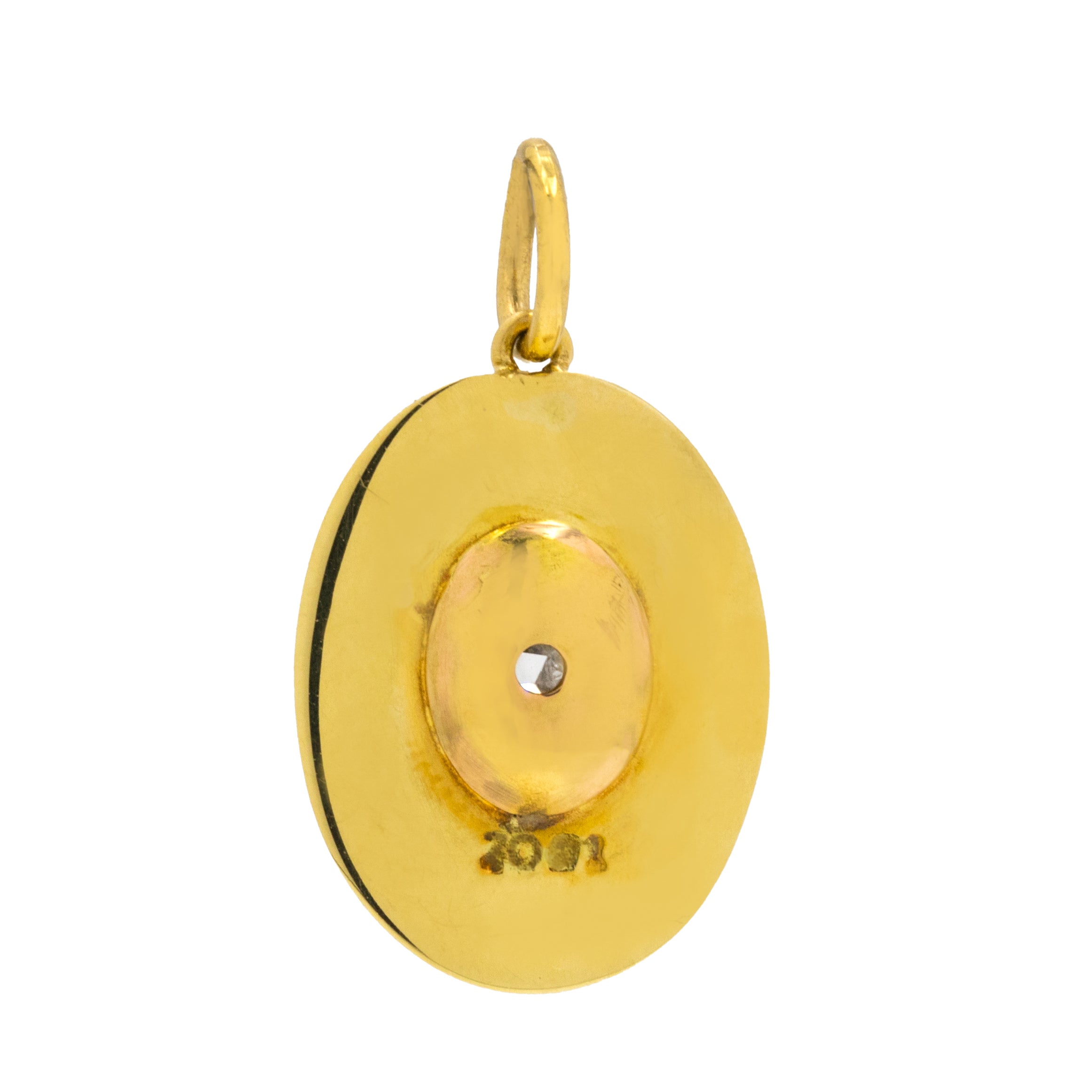 We can't get enough of this antique 18ct Gold rose-cut Diamond star-set oval charm! Her smooth slab of saturated 18ct Gold is embedded with a disco ball display of crisp white sparkles emanating from her 0.20ct rose-cut Diamond.