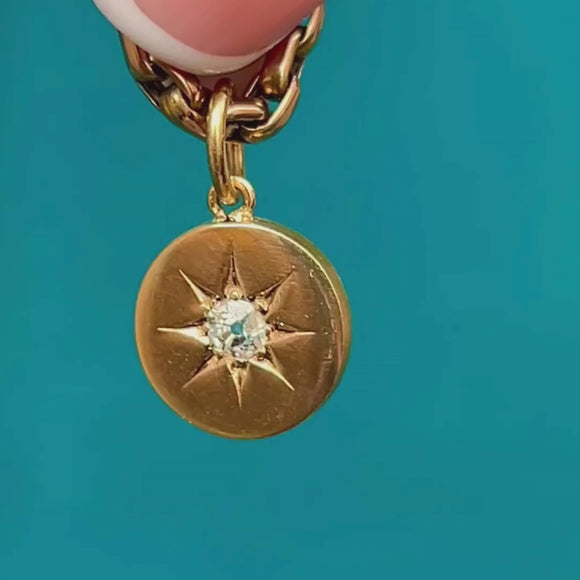 Antique 18ct Gold Round Diamond Star-Set Charm