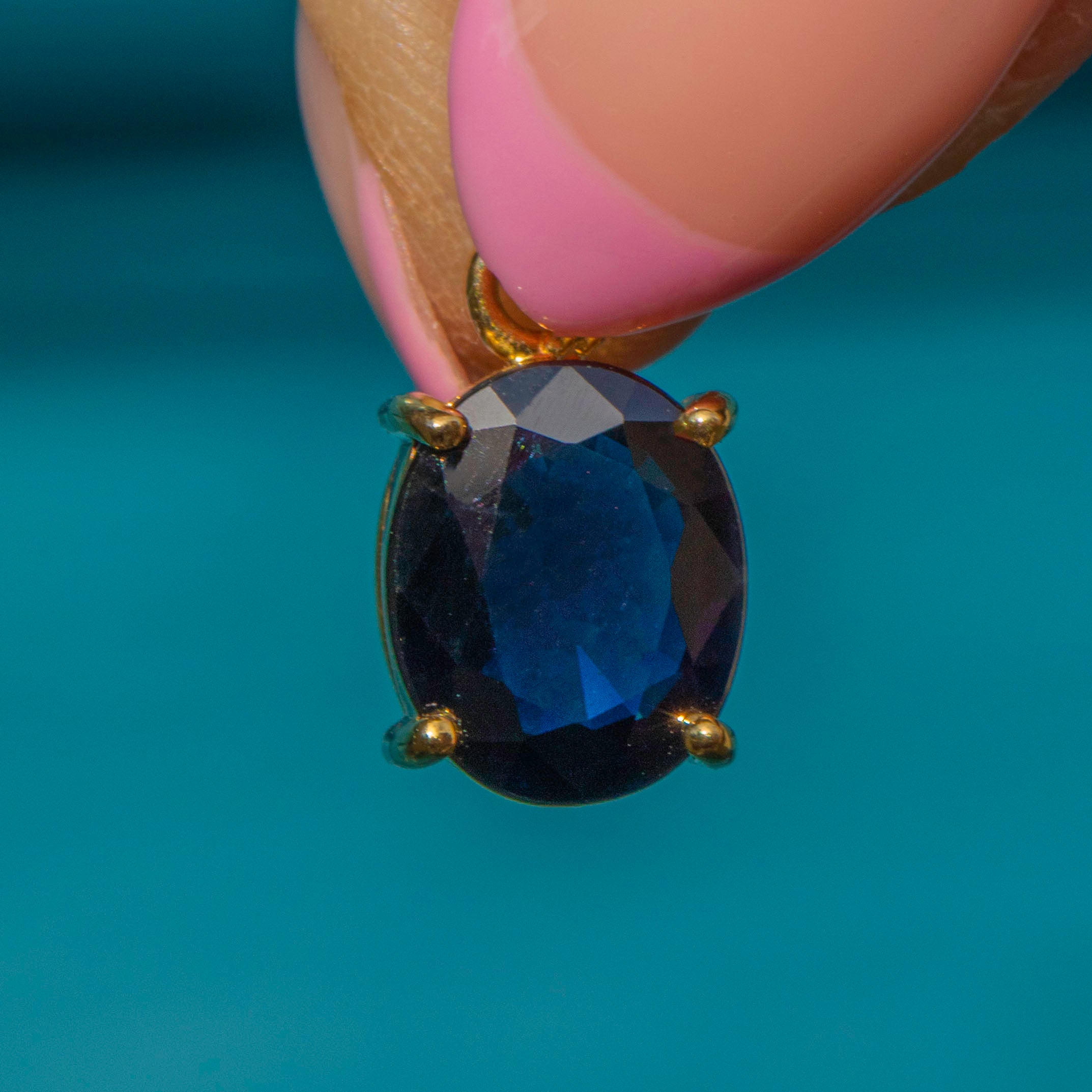 Fall in love with this antique 18ct Gold Sapphire charm! Flashes of midnight blue glisten from every facet of this rich 2.46ct oval cut Sapphire, catching the light magnificently.