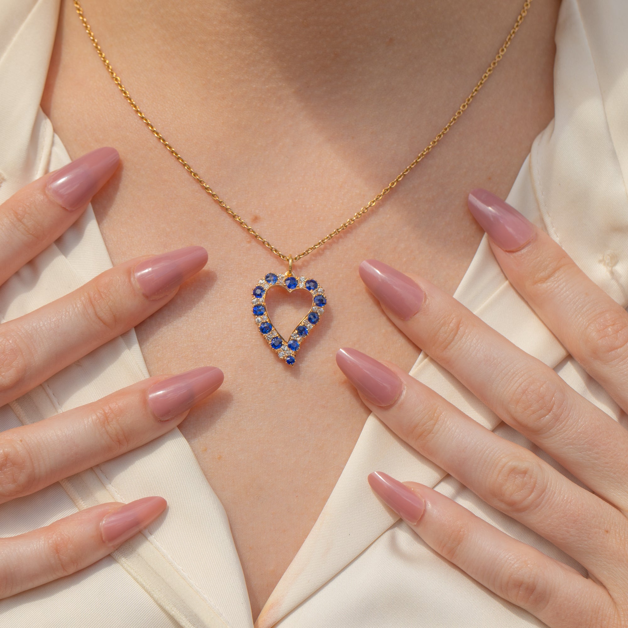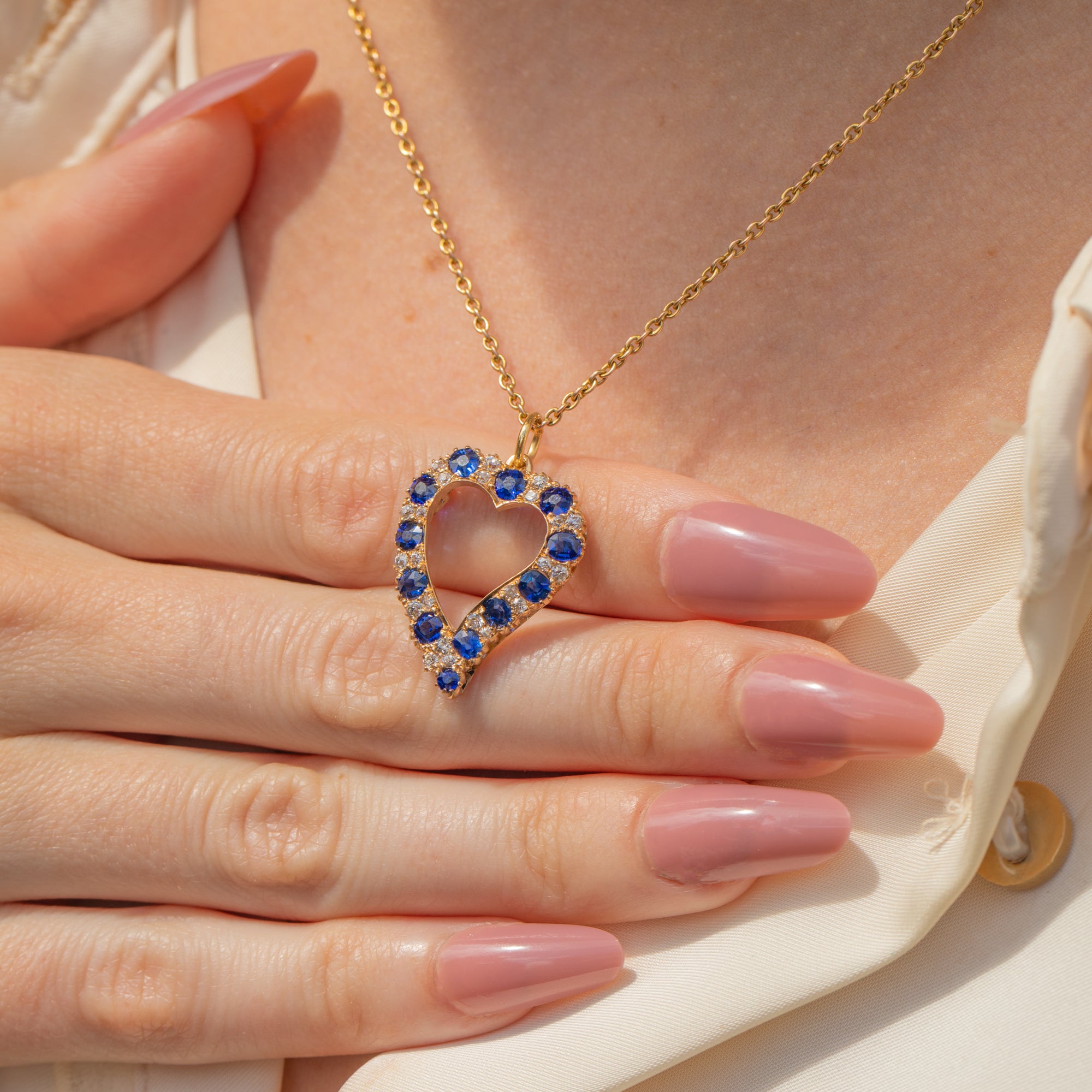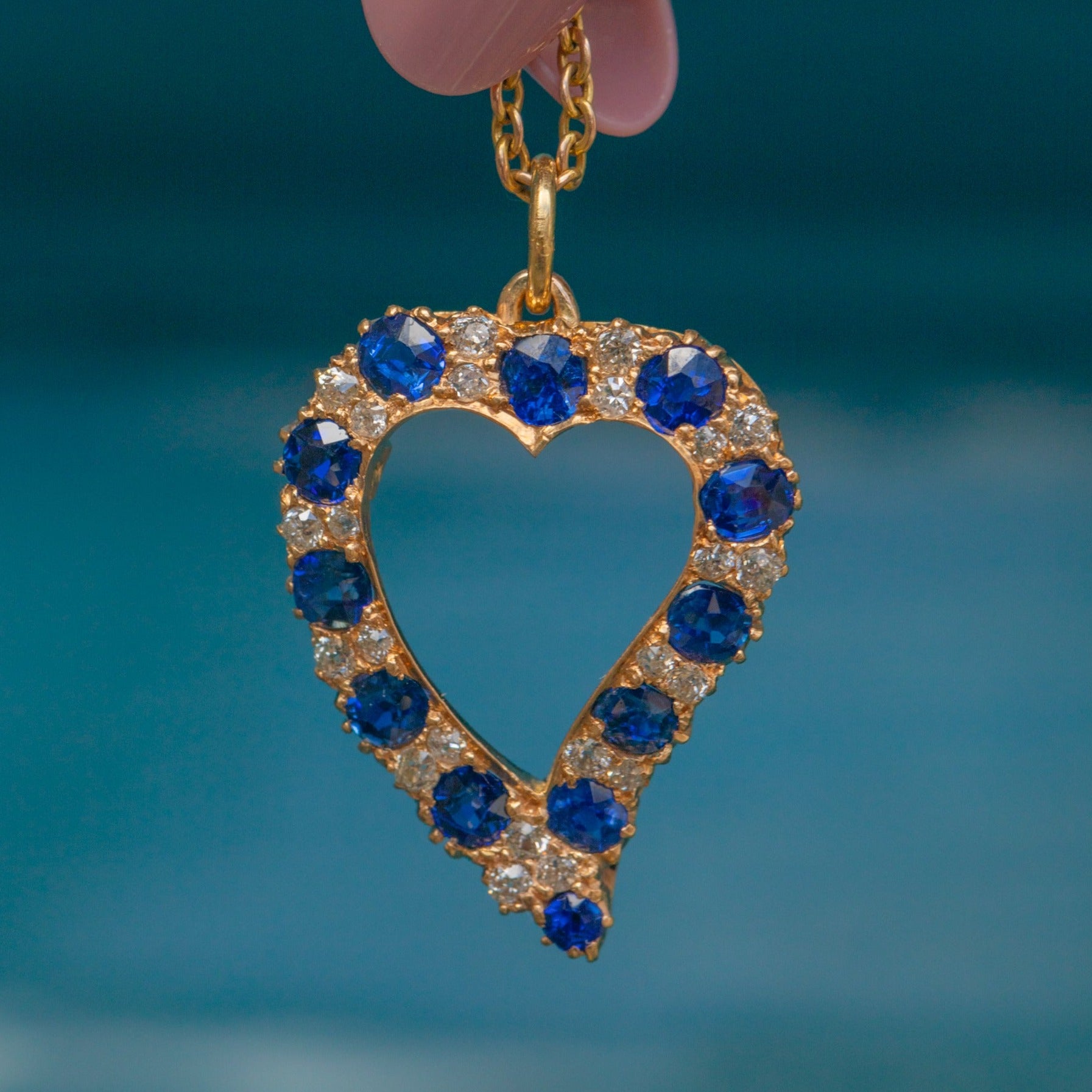 Antique 18ct Gold Sapphire Diamond Witches Heart Pendant