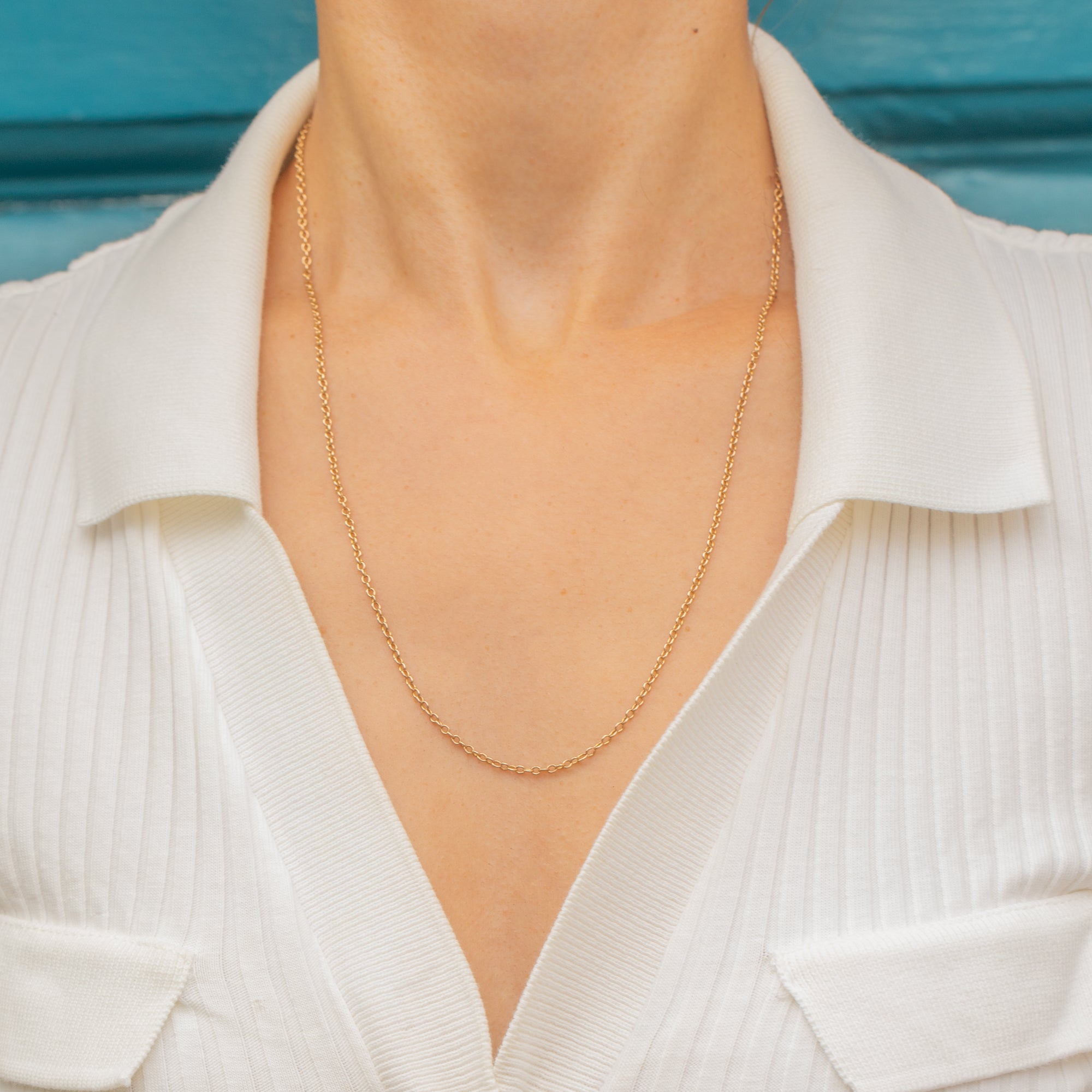 A fine Victorian pendant chain in solid 9ct Gold, this piece is crafted with classic round belcher links measuring 2mm wide. At 20" in length, it’s the perfect everyday chain — elegant yet strong — ideal for layering or for pairing with a favourite pendant.