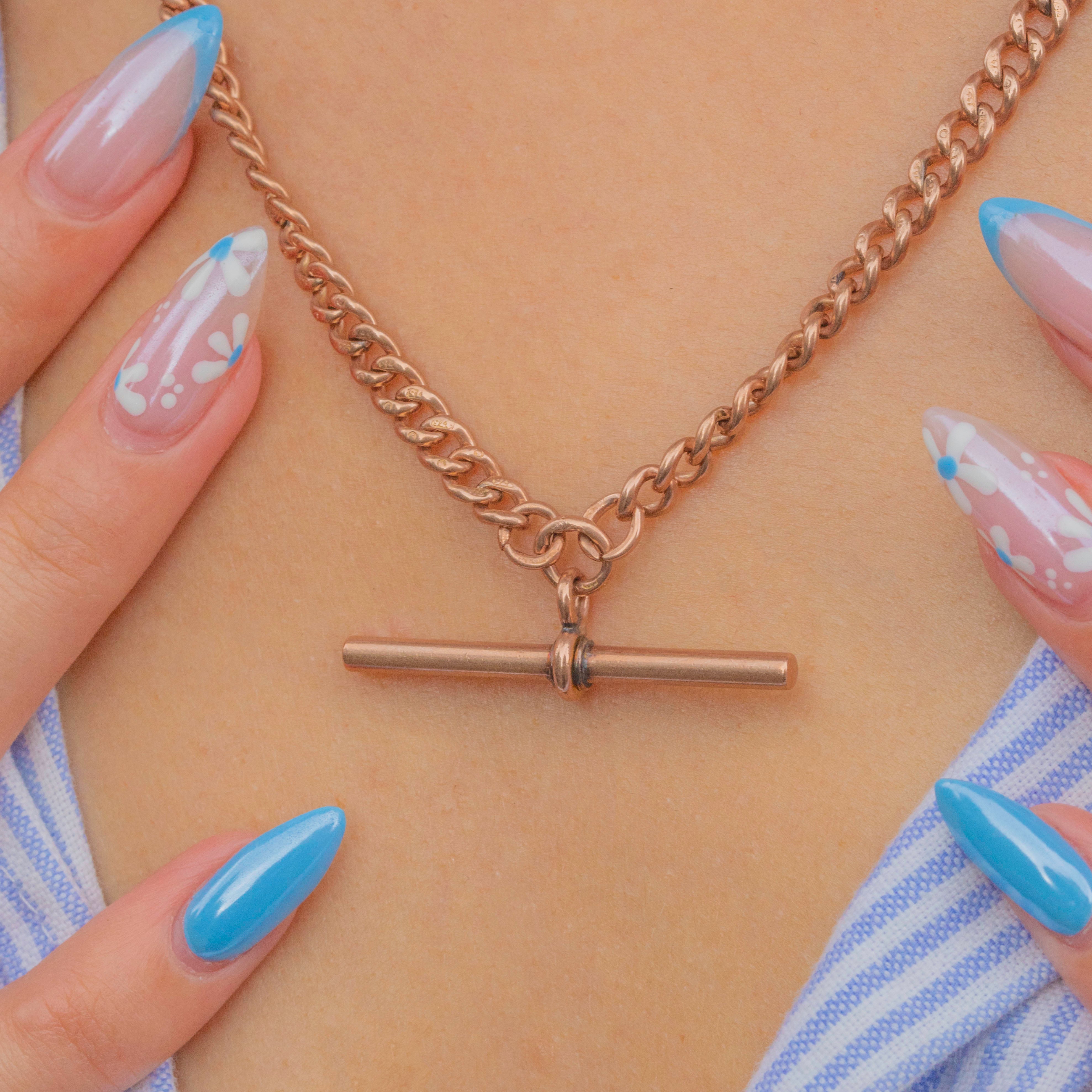 Its interlocking glossy curb links radiate blush hues and, at 19.5" long, the chain sits smoothly against your décolletage. Complete with a large T-bar and two highly sought-after dog-clips, it is the perfect customisable piece to suspend a range of charms and pendants.