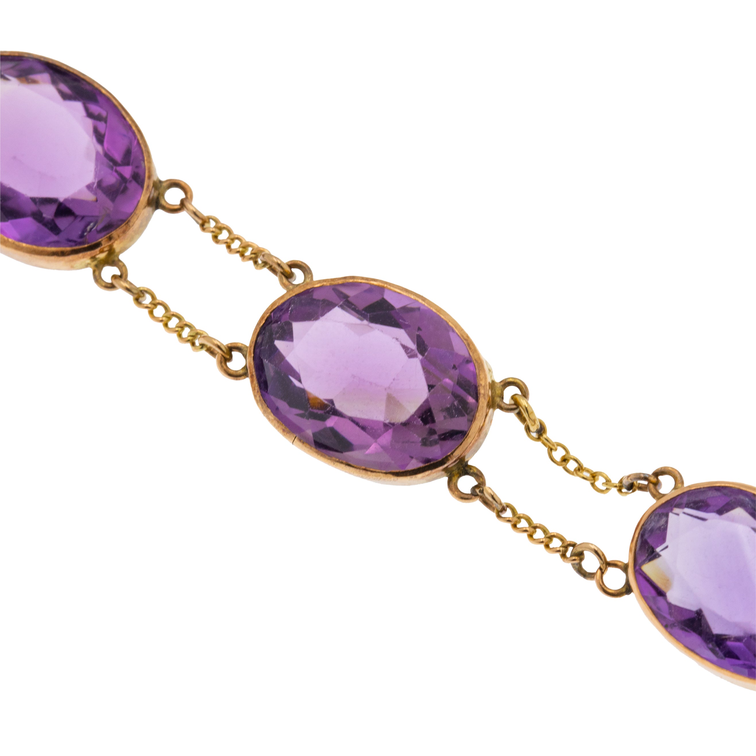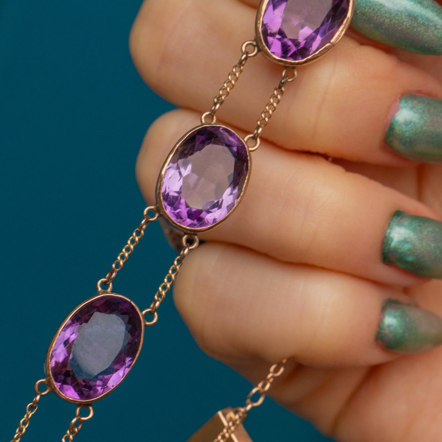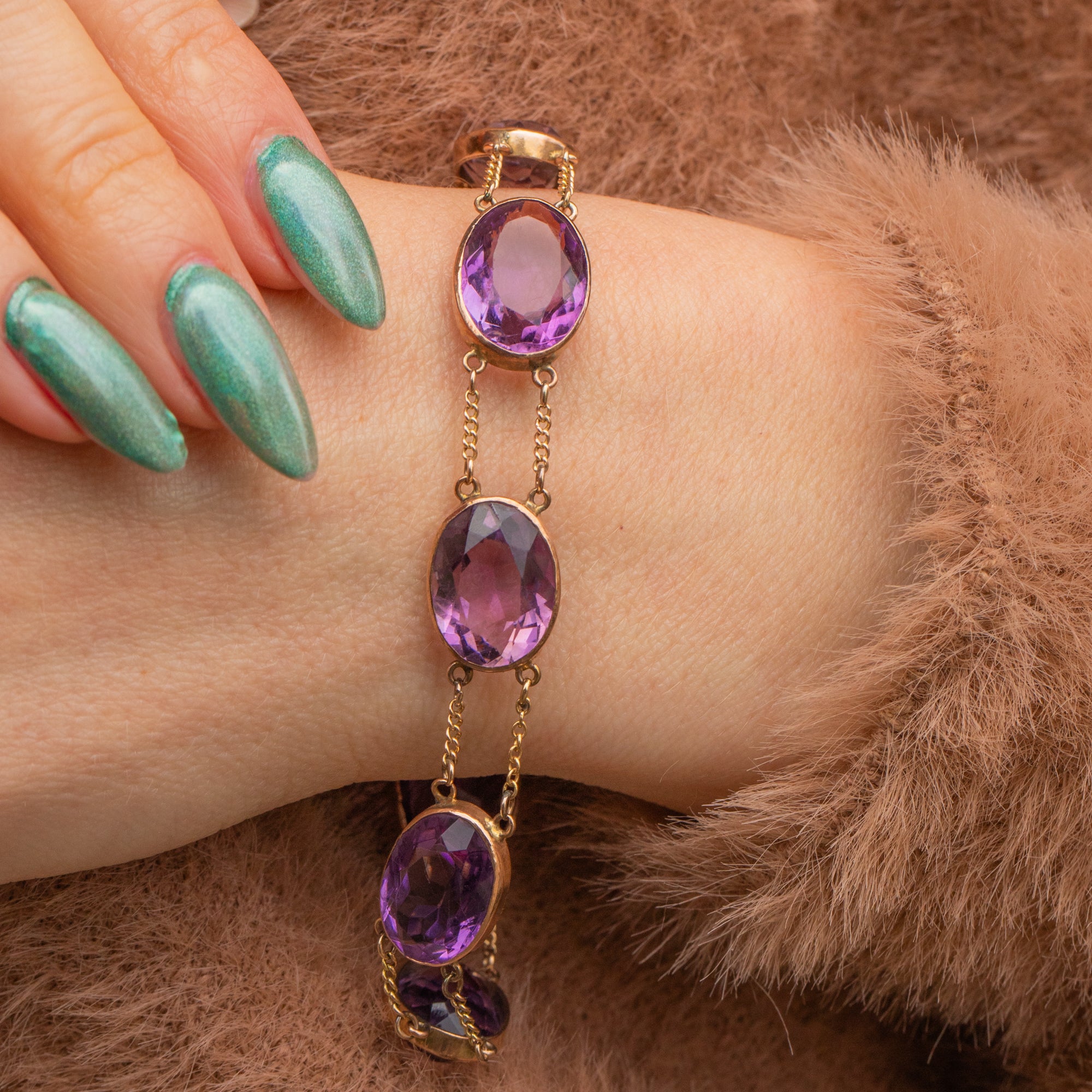 Fit for royalty, this antique 9ct Gold Amethyst bracelet is home to six vibrant oval-cut Amethysts with a total spread of 28.00ct!