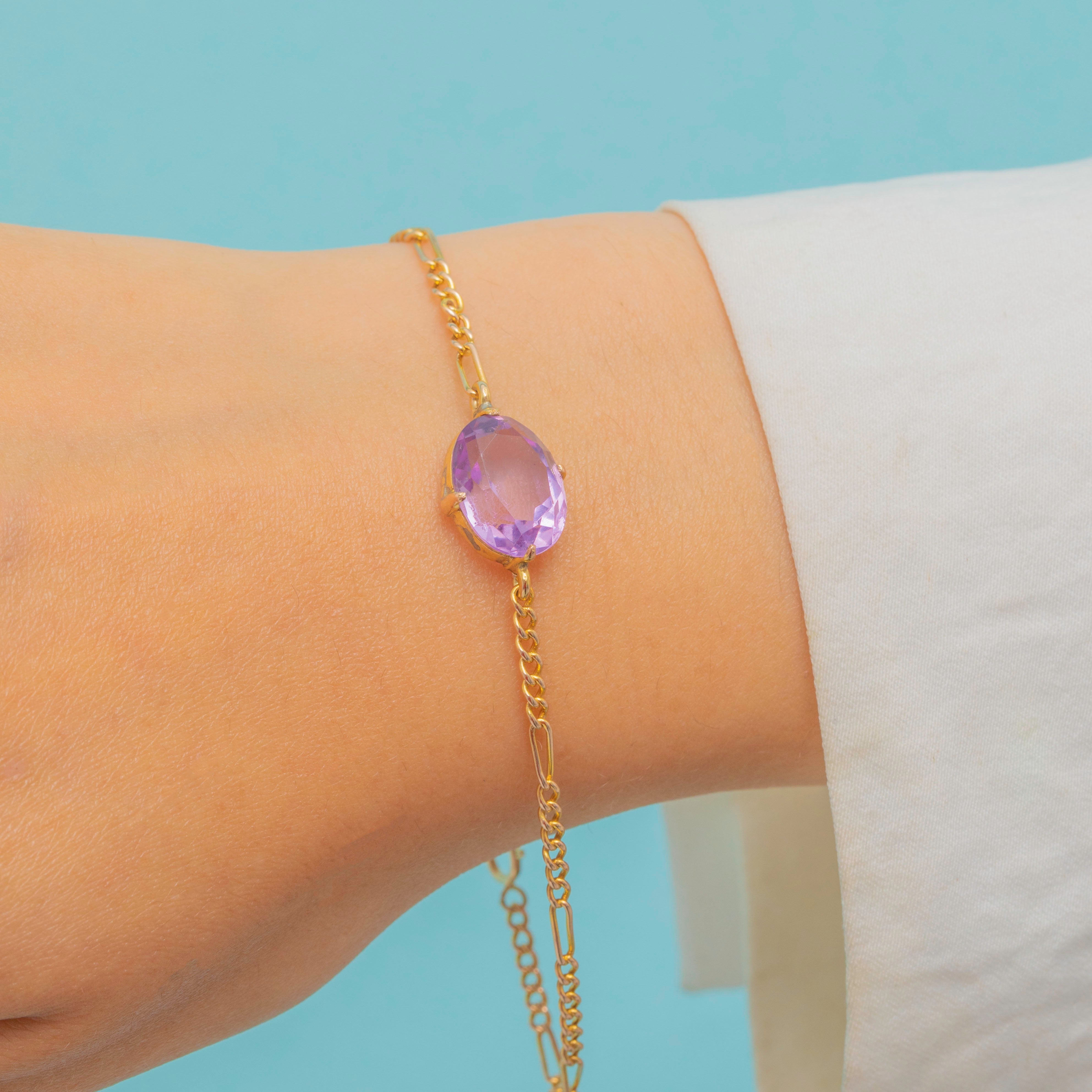 In the centre of the bracelet sits a plump oval Amethyst, radiating lilac hues from its crisp facets and boasting 3.25ct. This antique bracelet is ideal for stacking alongside your other antique goodies or wearing as a standalone piece.