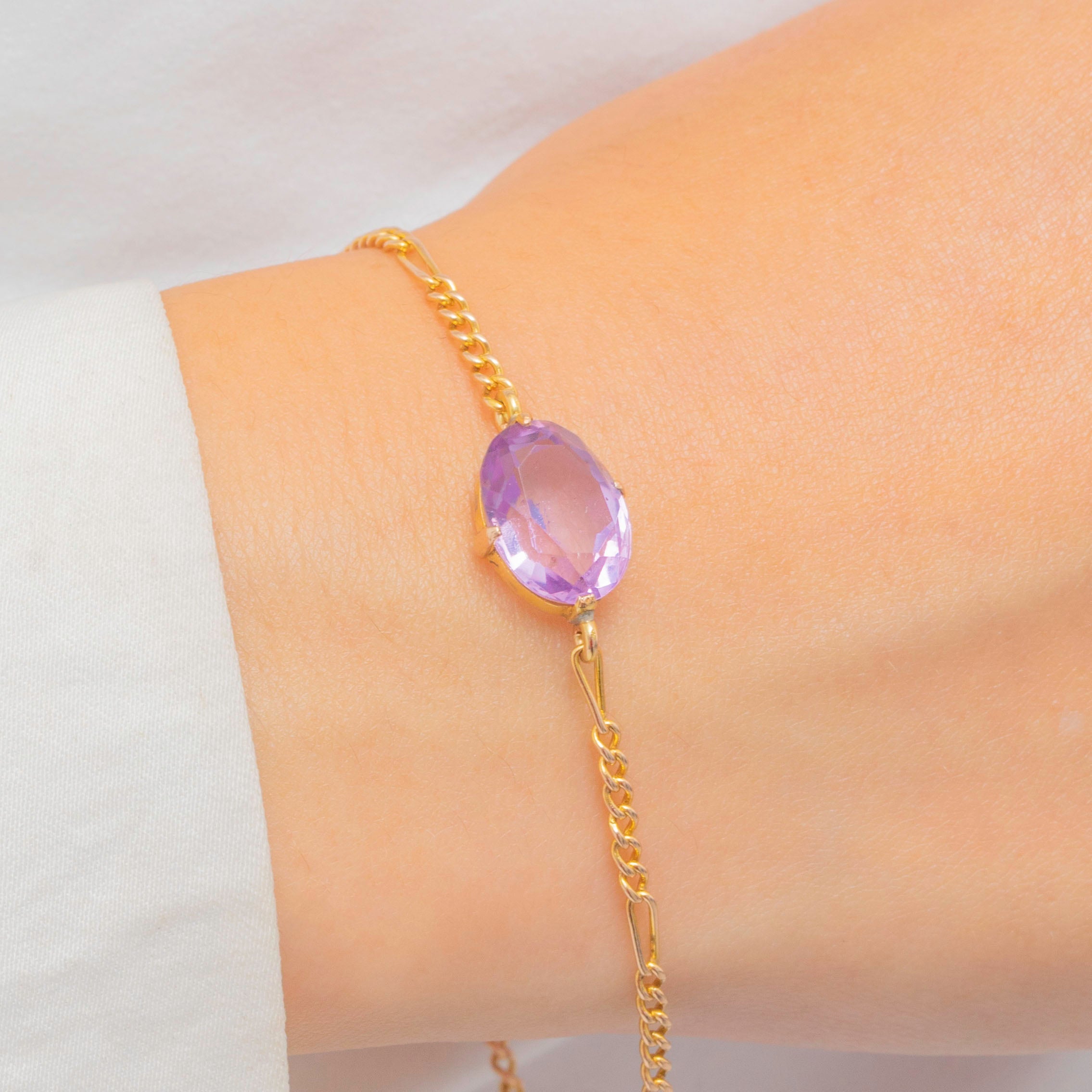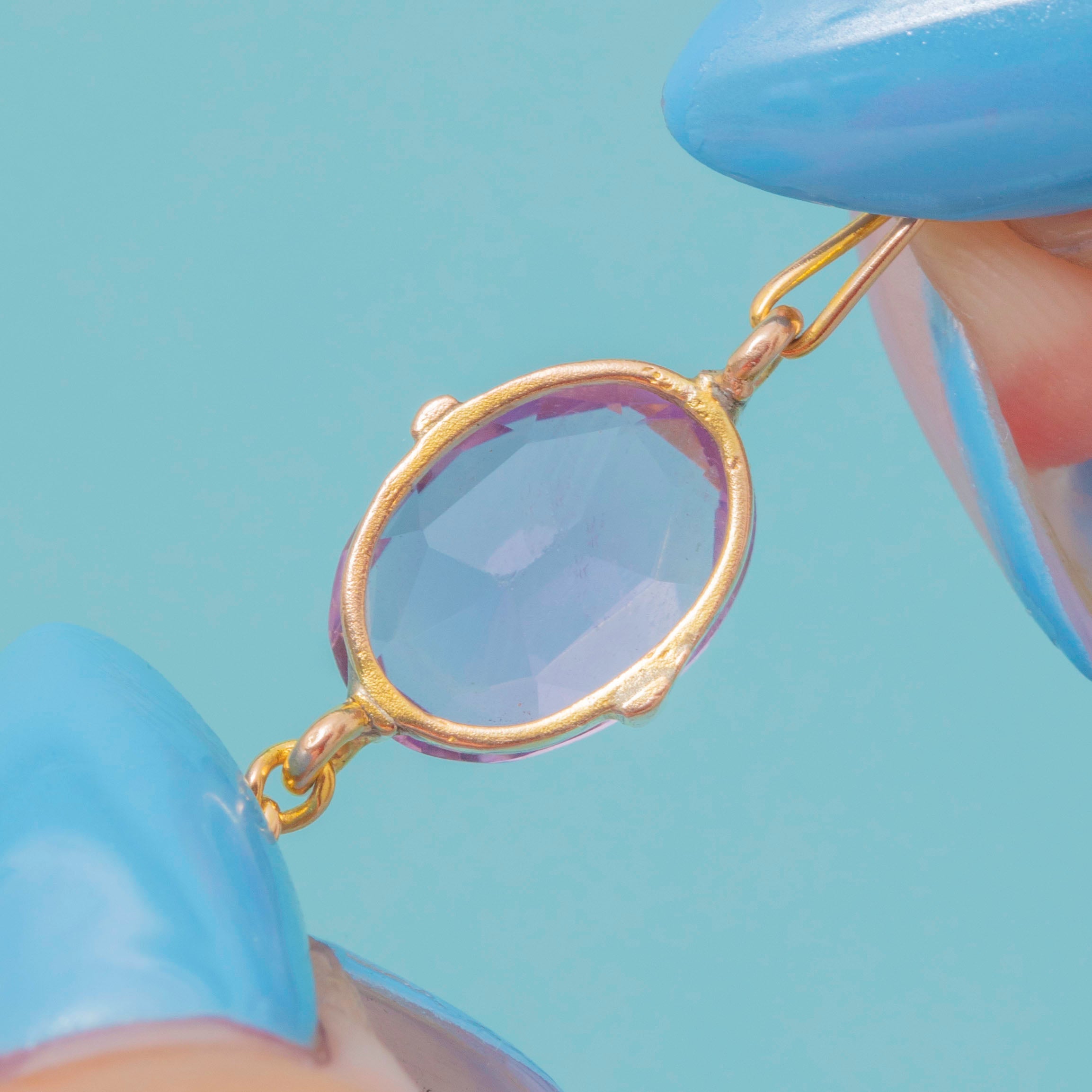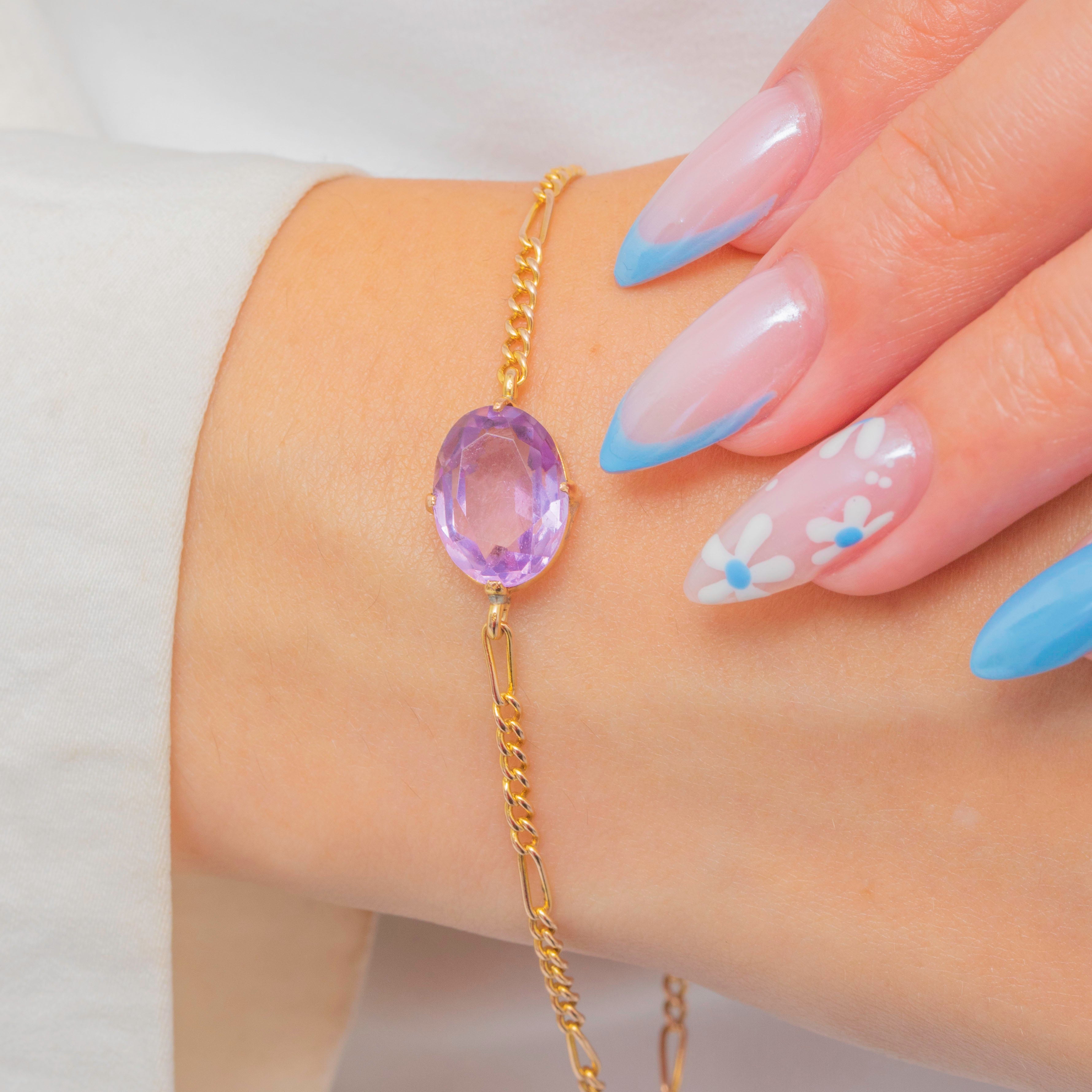 EXCELLENT: The Amethyst is secure in its settings and free from any notable scuffs or scratches. There are some minor spots of discolouration to the Gold, though this is to be expected with age. With the bolt ring in perfect working order and nothing else to note, this Victorian bracelet can be worn with utmost confidence.