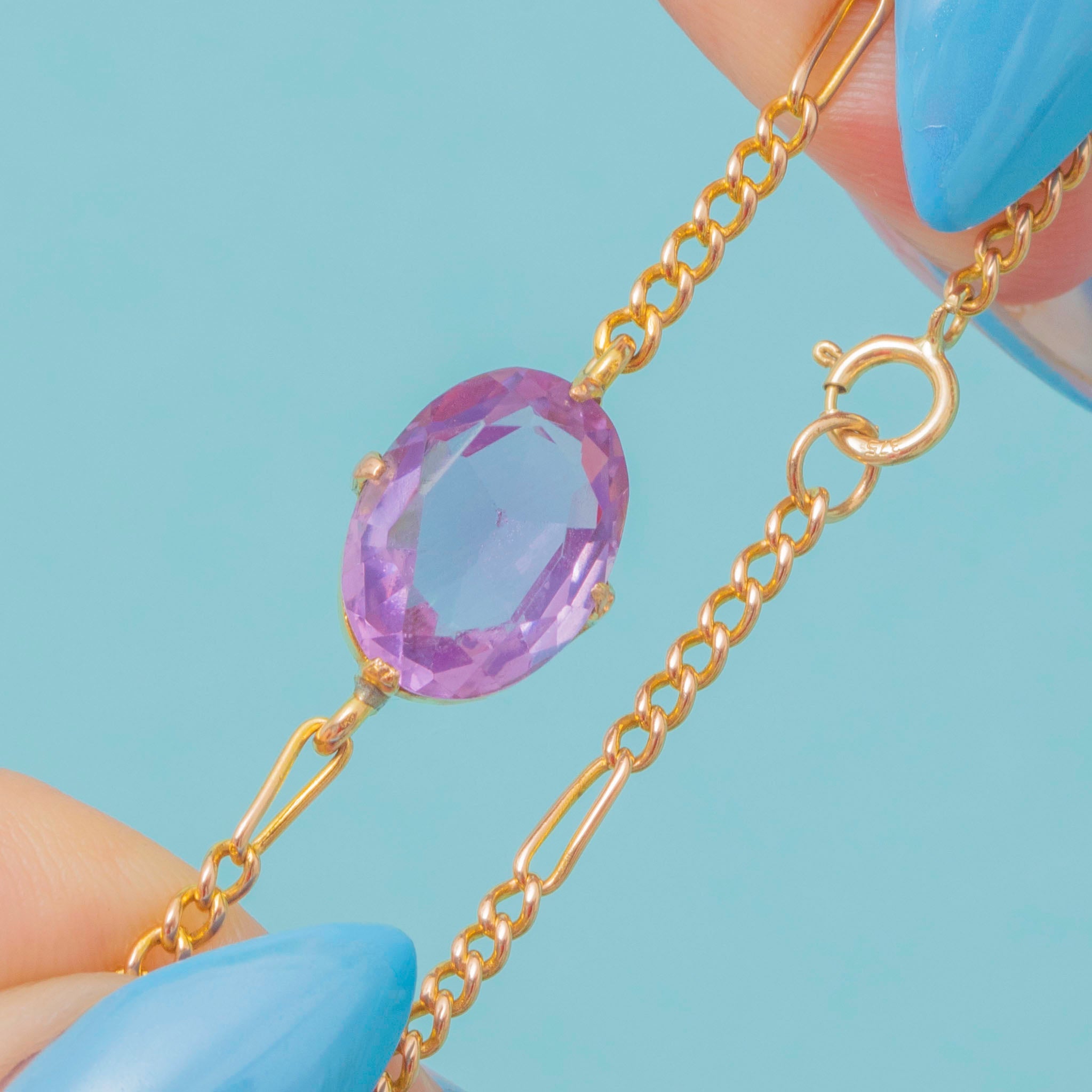 Antique 9ct Gold Amethyst Figaro Bracelet, 3.25ct