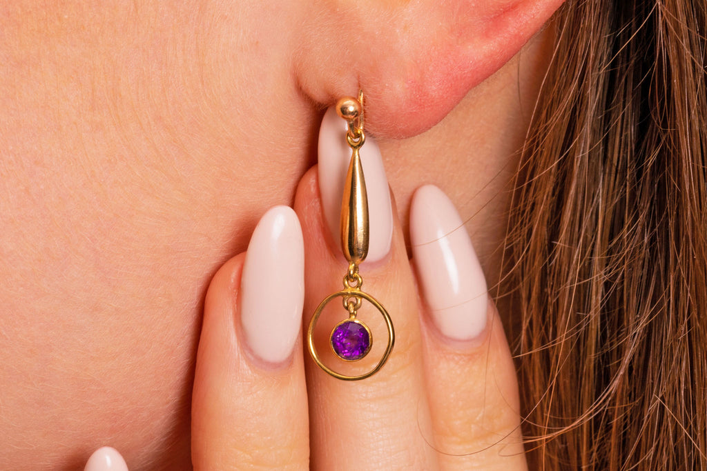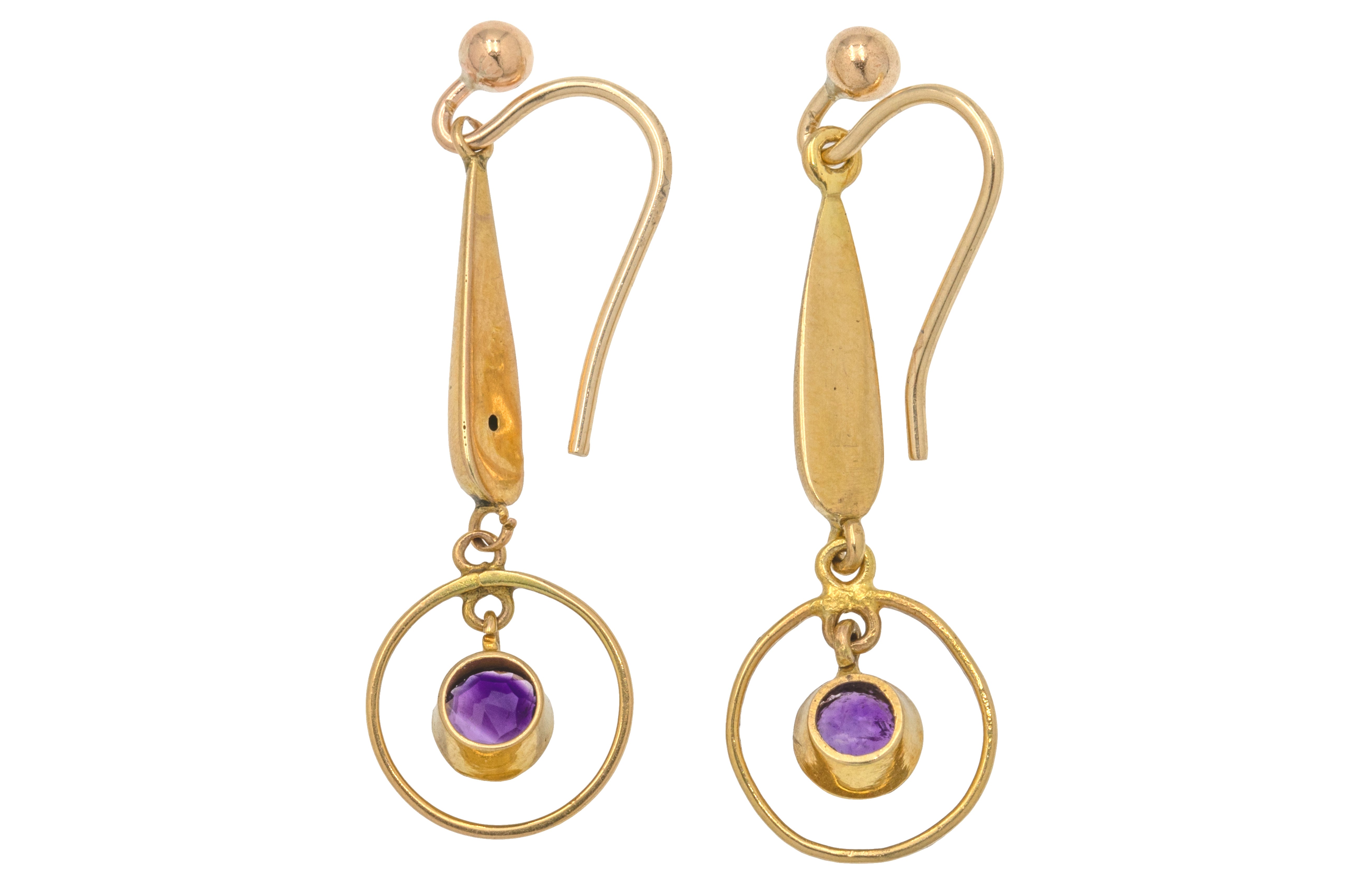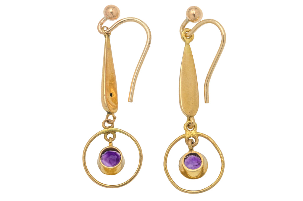 Antique 9ct Gold Amethyst Target Drop Earrings, 0.60ct
