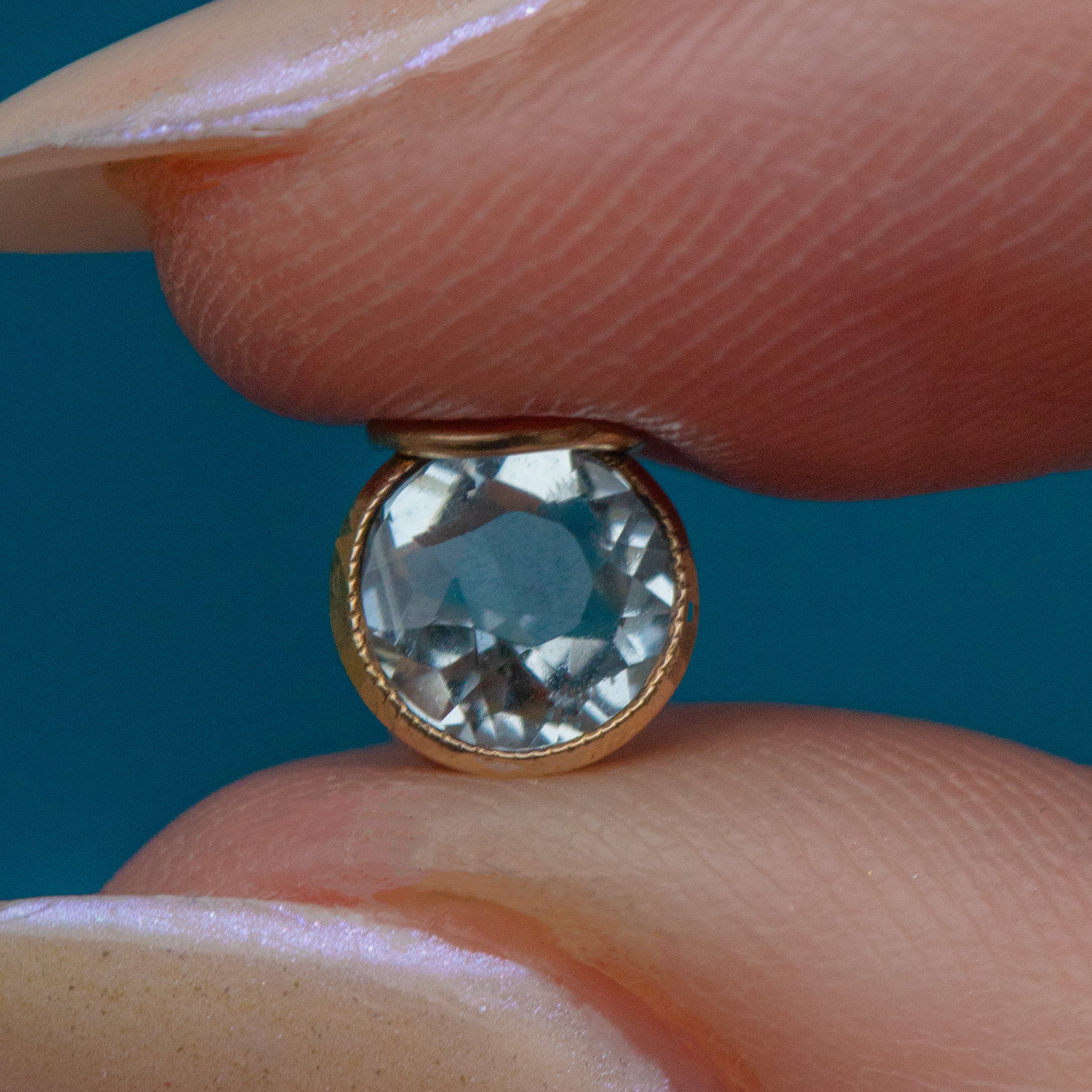 Aquamarine is 5mm in diameter, weighing approx. 0.40ct.