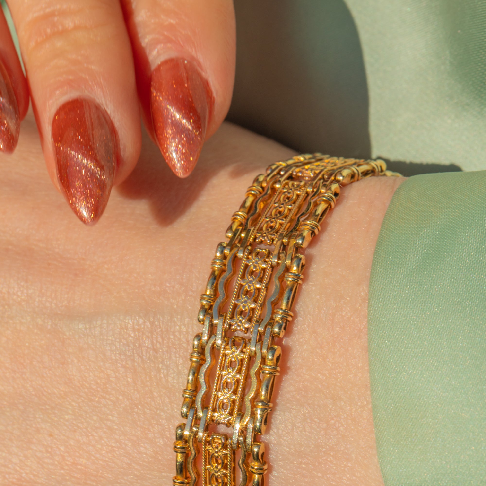 This antique 9ct Gold bamboo gate bracelet is simply gorgeous! The links have been beautifully hand-crafted, with eye-catching open work that you can't help but fall in love with.
