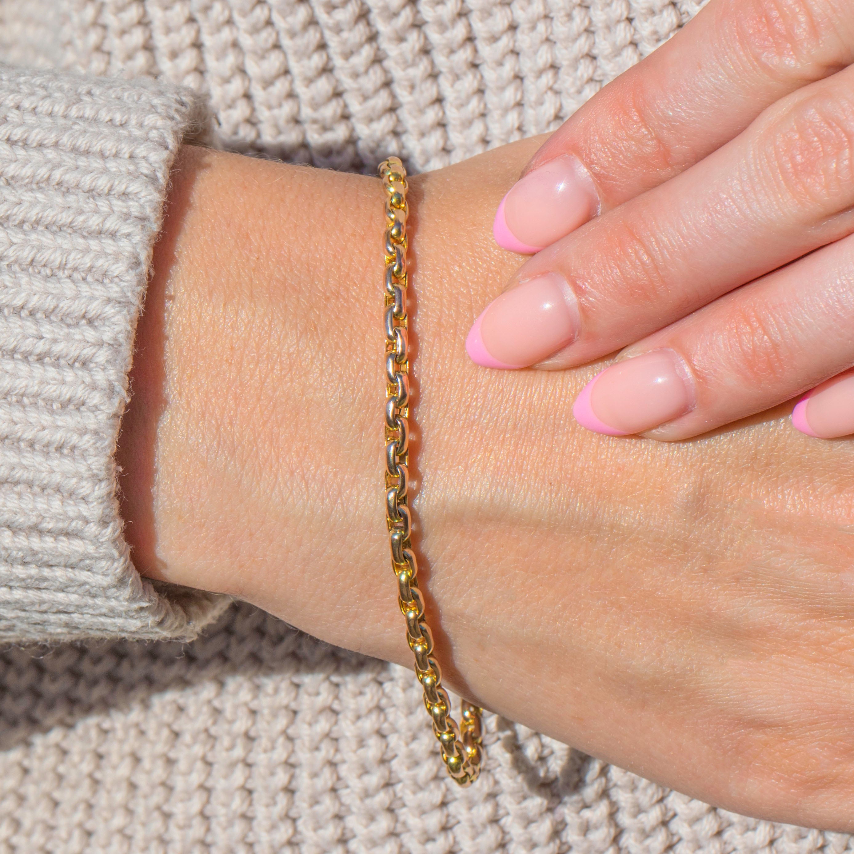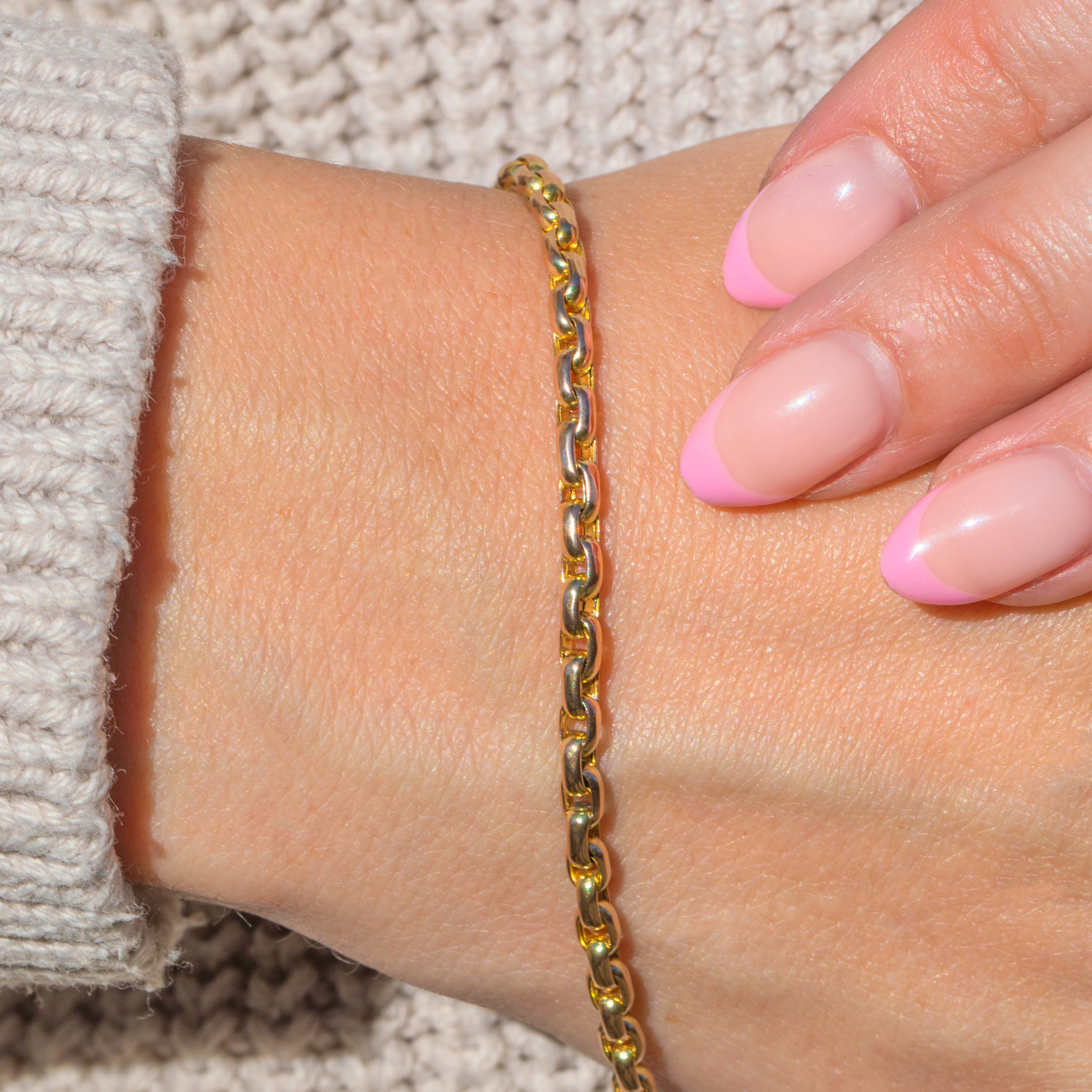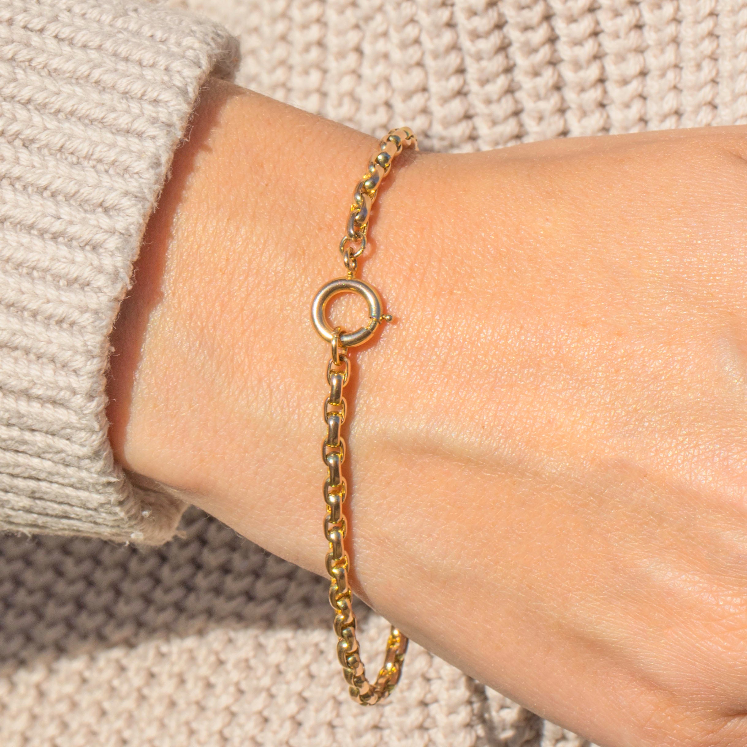 The golden glow of this antique chain bracelet makes her a striking piece of wrist candy, whether layered or worn alone she is sure to be adored. Complete with an antique bolt ring, you can easily add a charm for a personal touch!
