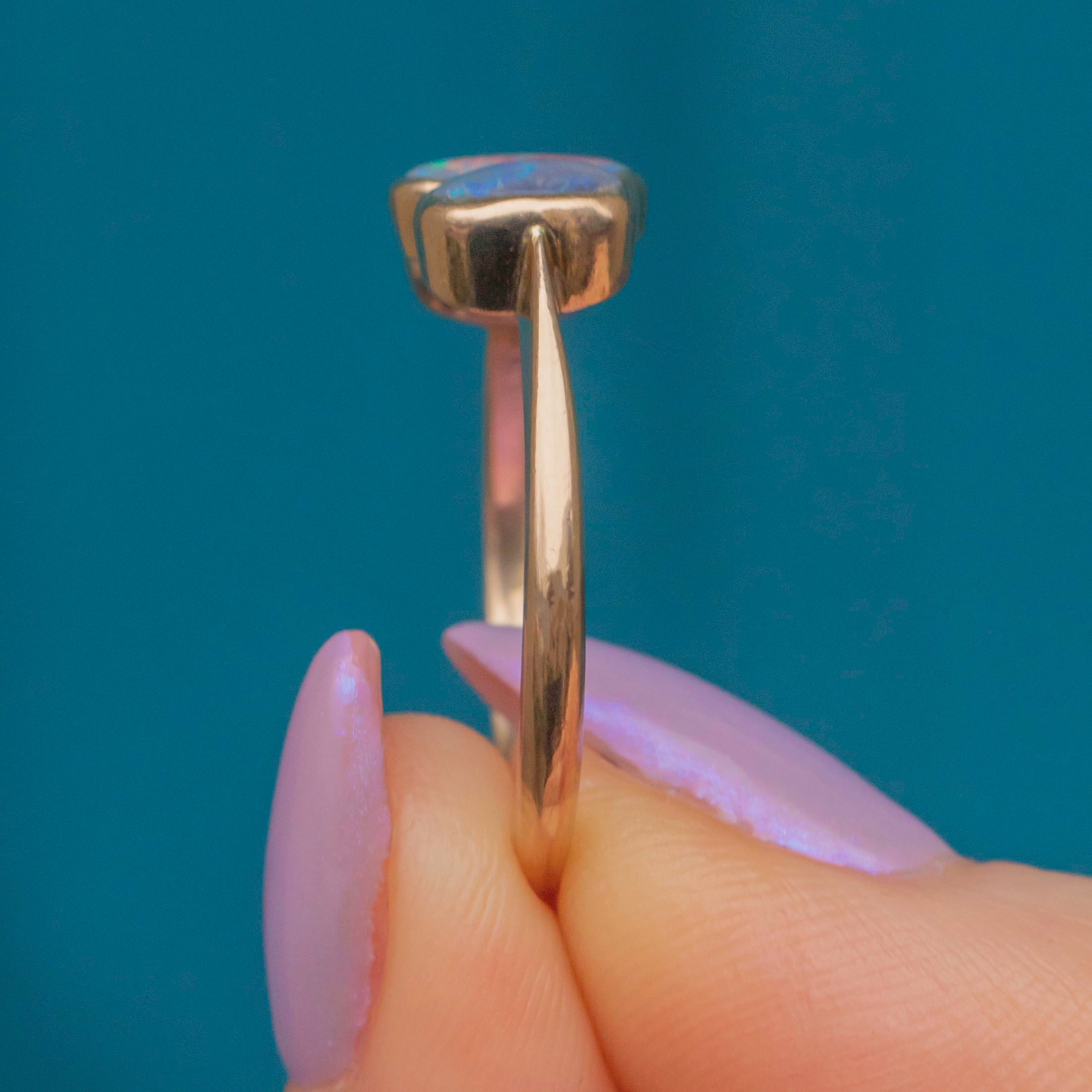 The elegant bezel settings enhance the Opals’ natural beauty, with the smooth band providing comfortable wear. A true statement piece, this antique Opal ring embodies the opulence and romance of the Victorian era!