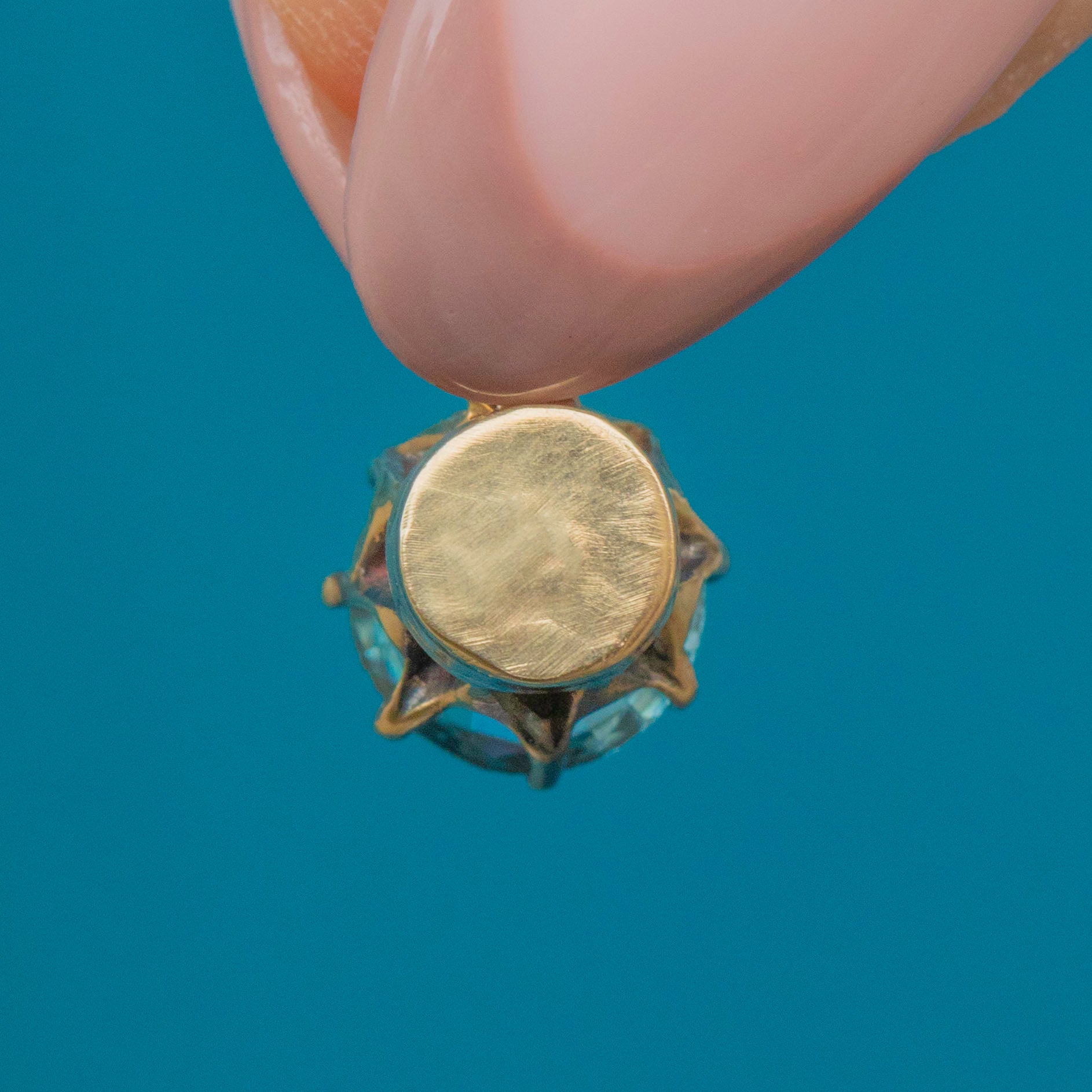 Add a vibrant pop of colour to your décolletage with this antique 9ct Gold blue Zircon charm! Exuding a bright scintillation, the 2.13ct Zircon bursts with a delightful celeste hue and is displayed within white Gold claws for a refined finish.