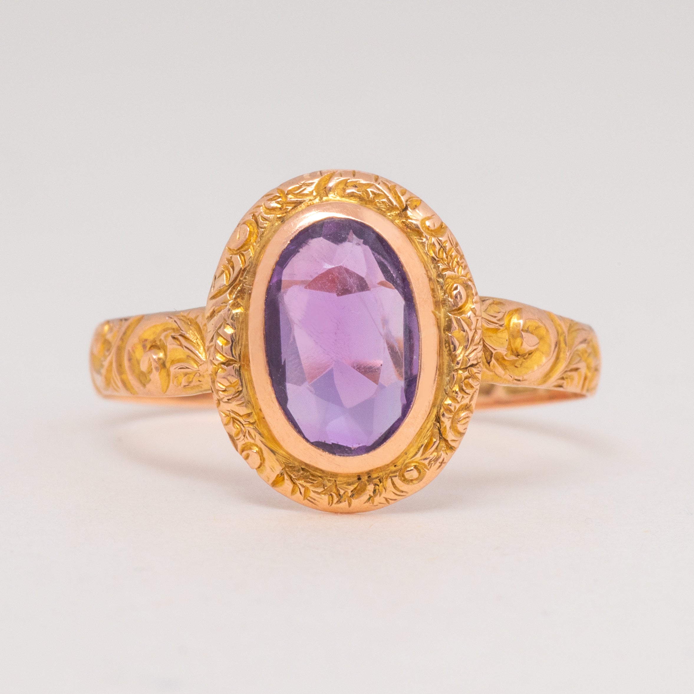 Antique 9ct Gold Chased Amethyst Ring 0.70ct, c.1919