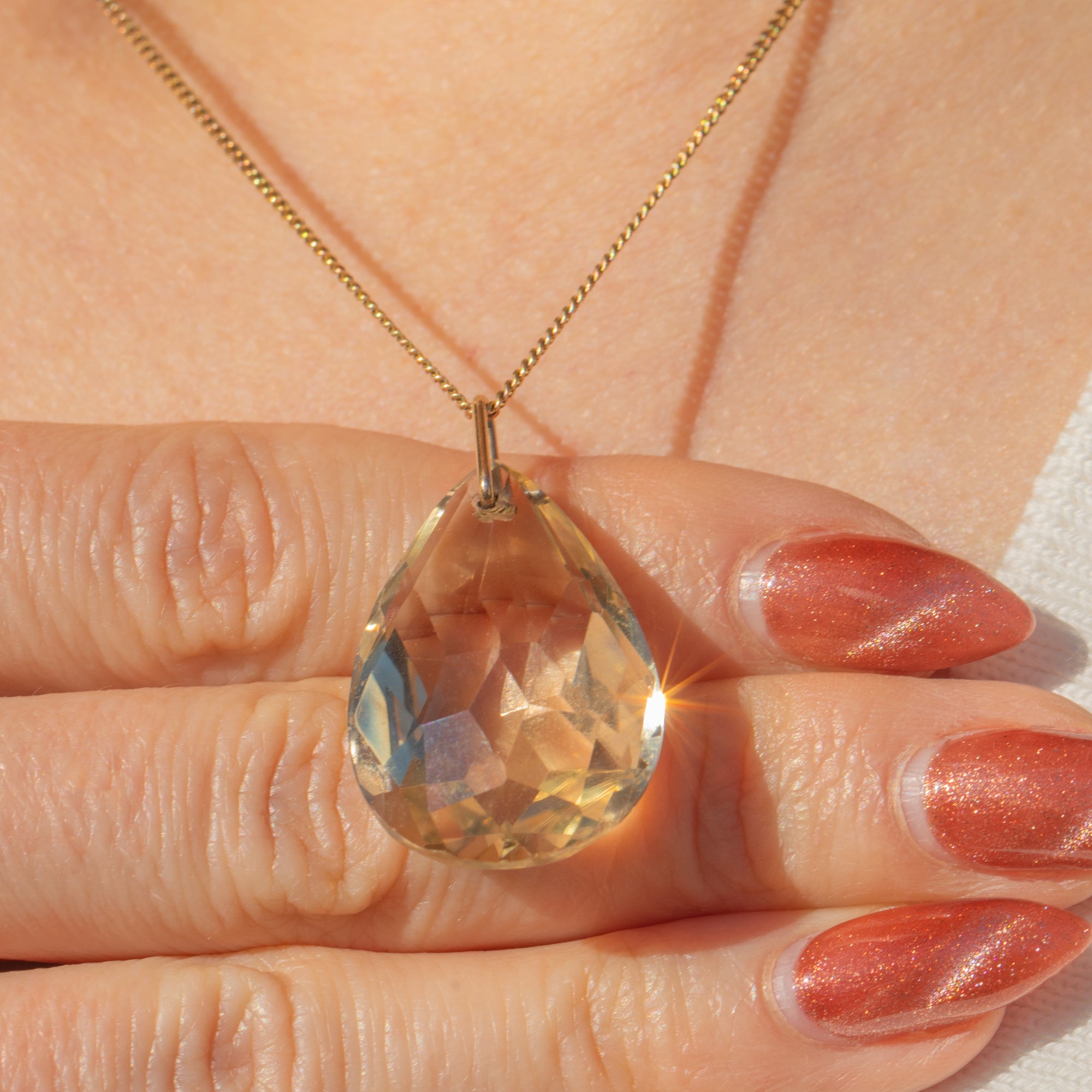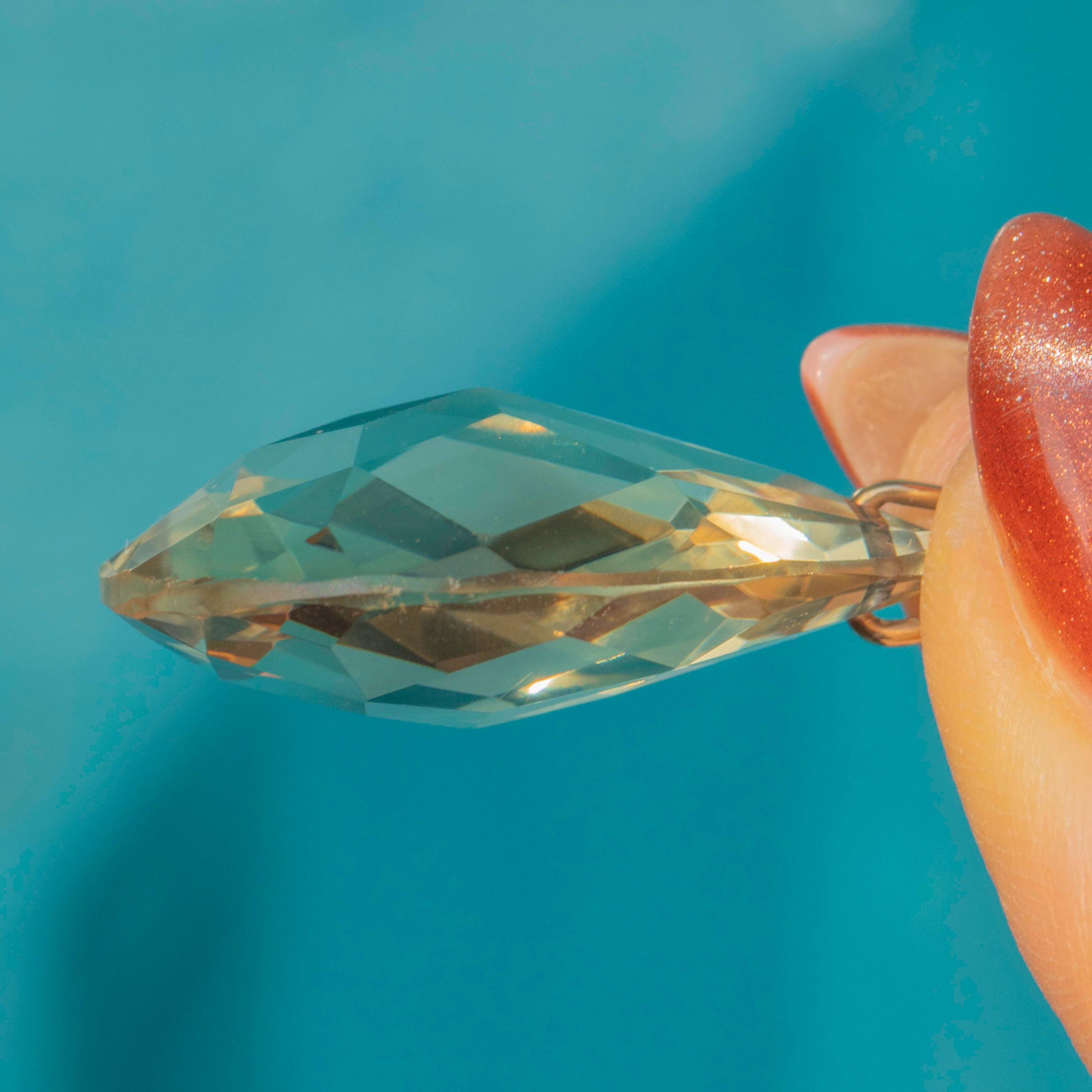 This joyful antique 9ct Gold Citrine pear drop pendant will bring an irresistible glimmering accent to your décolletage! The pear-cut Citrine boasts an impressive 25.29cts and has been exquitely faceted, exuding lemony hues as they glint in the light.