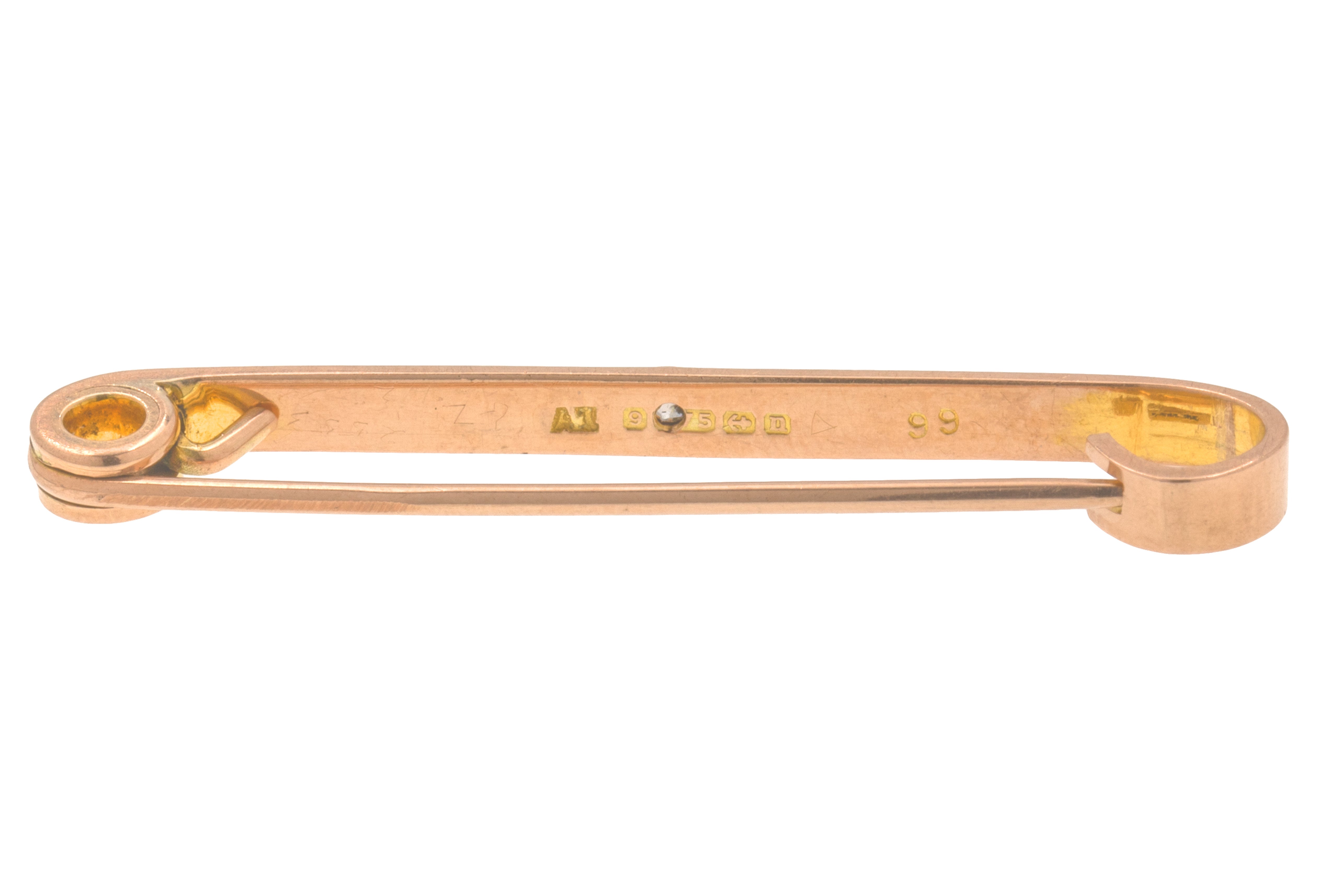 HALLMARKS: 9, .375, Birmingham Anchor, Date letter 'n' for the year 1912. '9', '375' on pin.