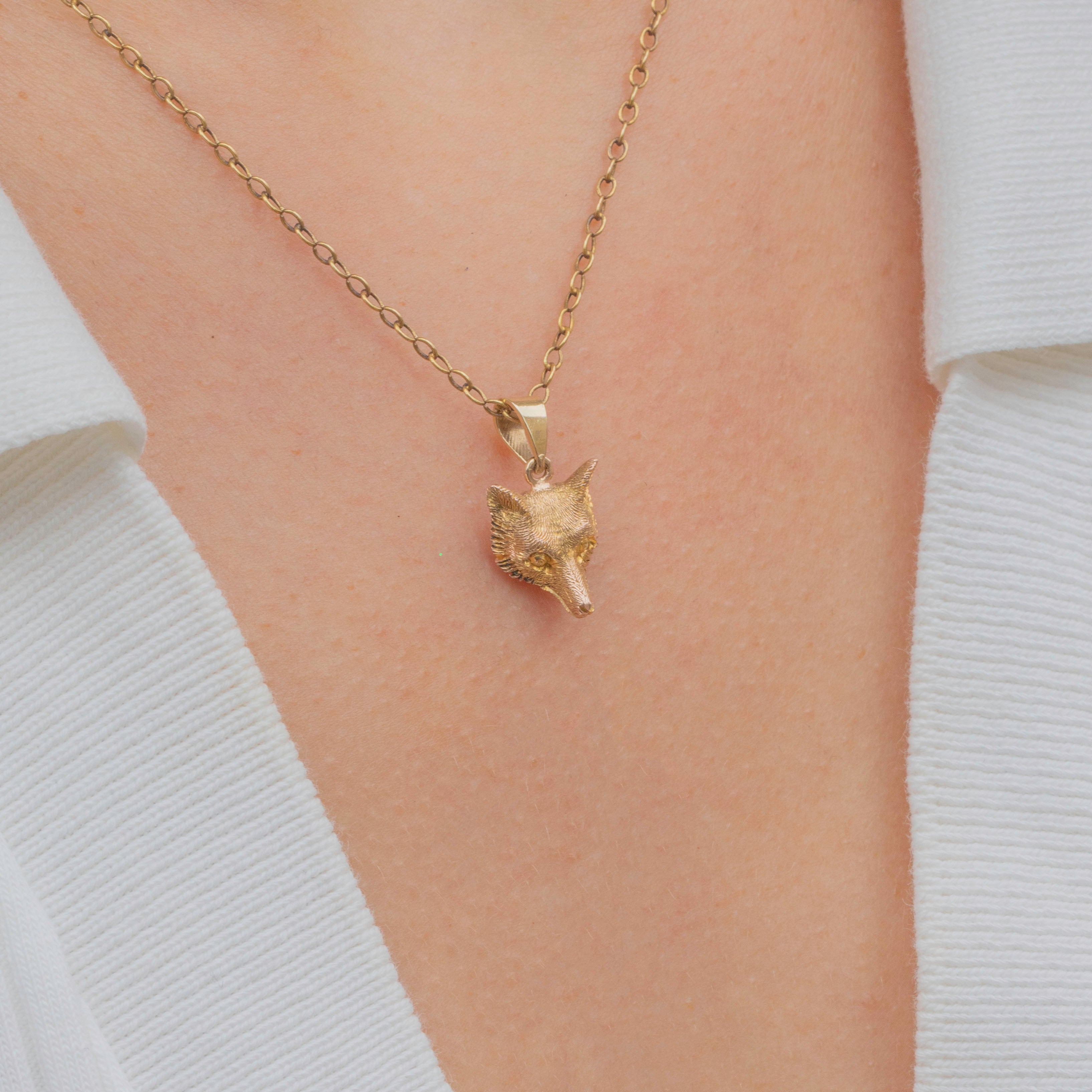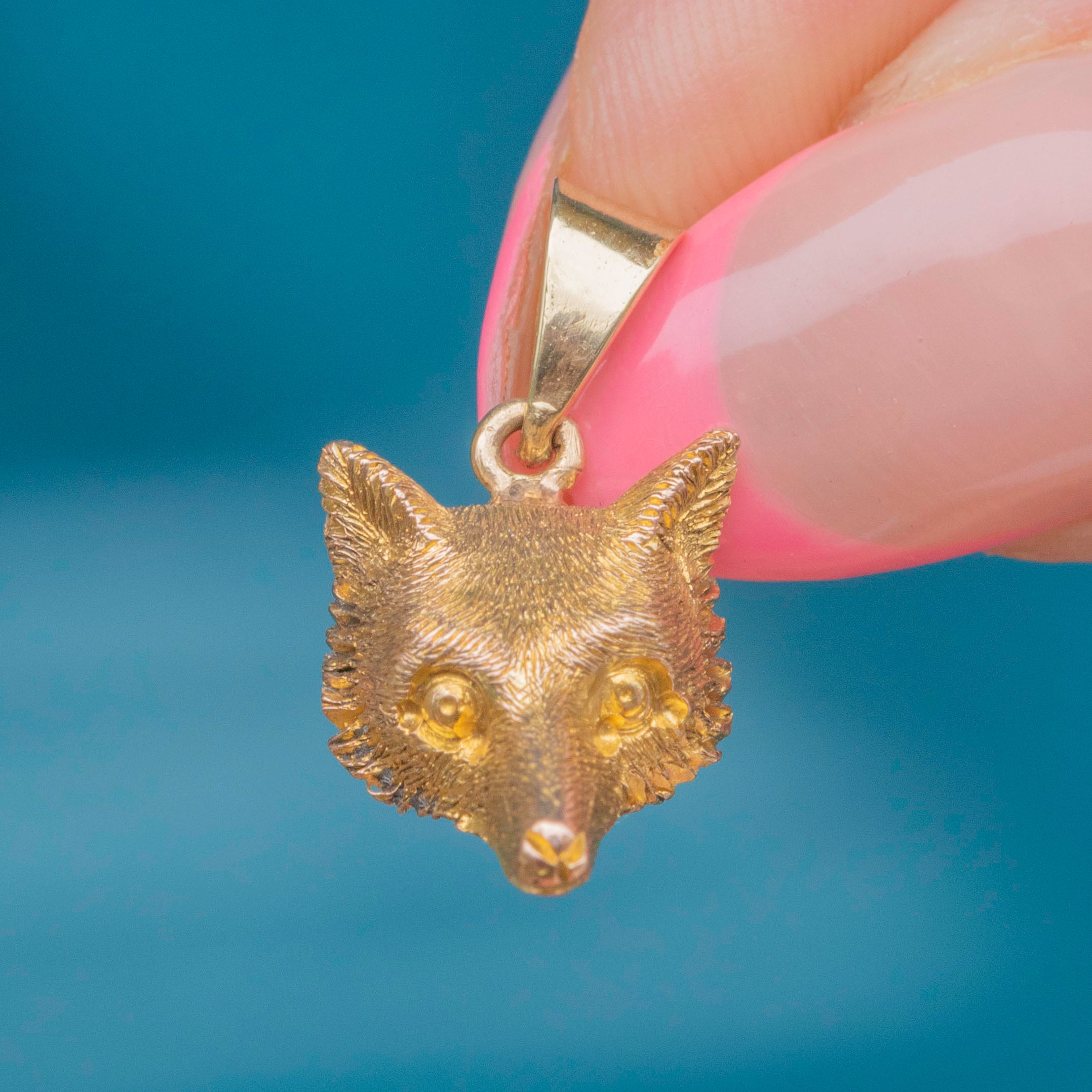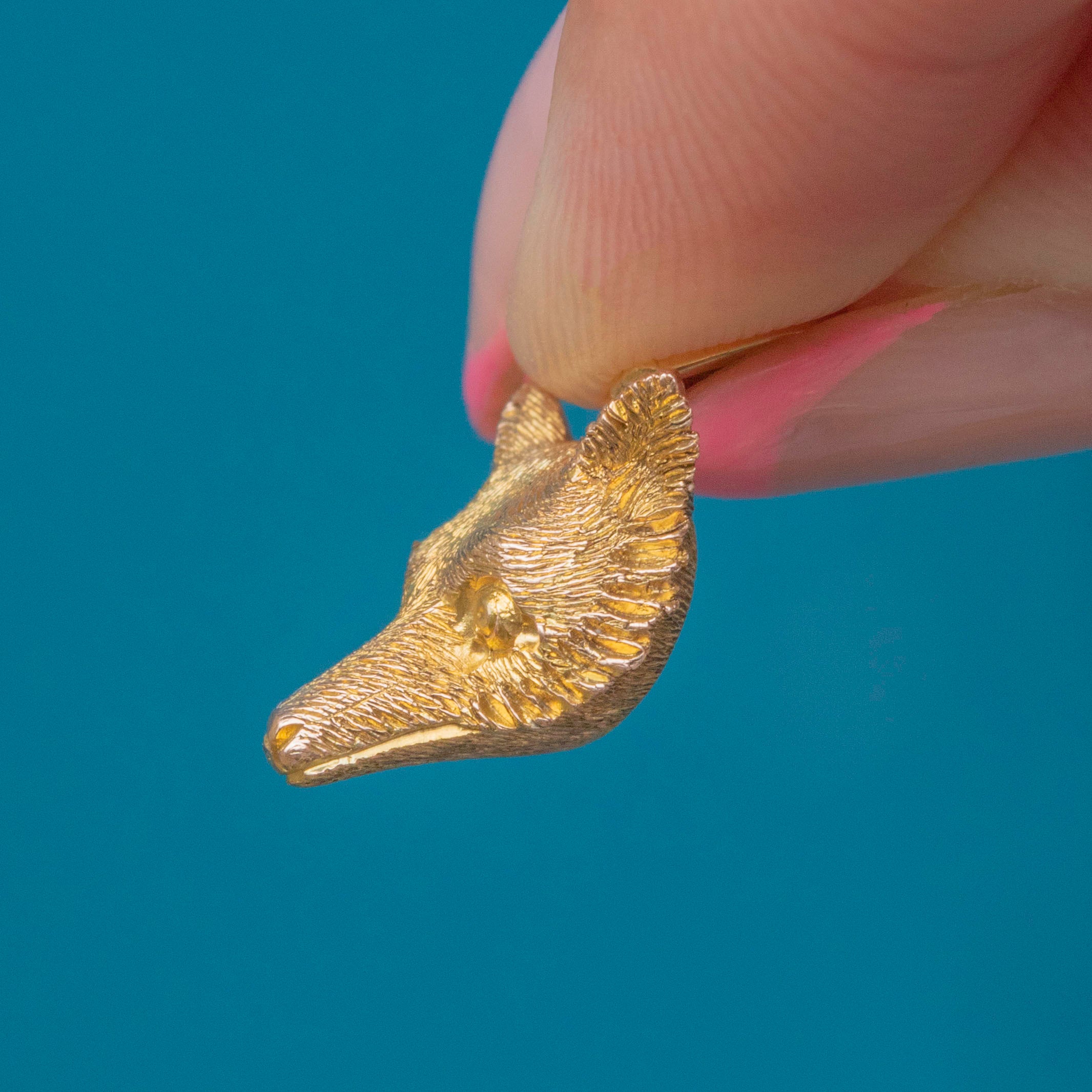 This antique 9ct Gold engraved fox head charm is brimming with character! Crafted from honey-hued 9ct Gold, intricate fur-like engravings adorn every millimetre of the fox head, creating a lovely texture that captures the creature's mischievous nature.