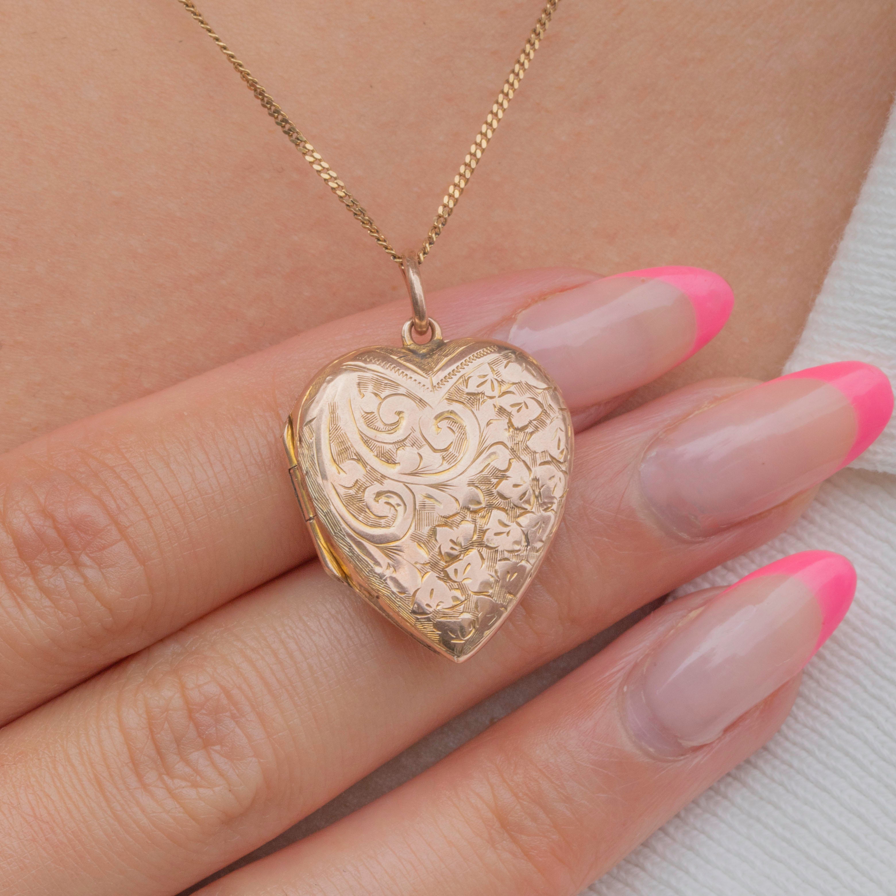 This Victorian 9ct Gold engraved heart locket is a beautiful way to cherish your nearest and dearest. The entirety of the locket is covered with swirling ivy and acanthus leaves, highly romantic Victorian motifs.