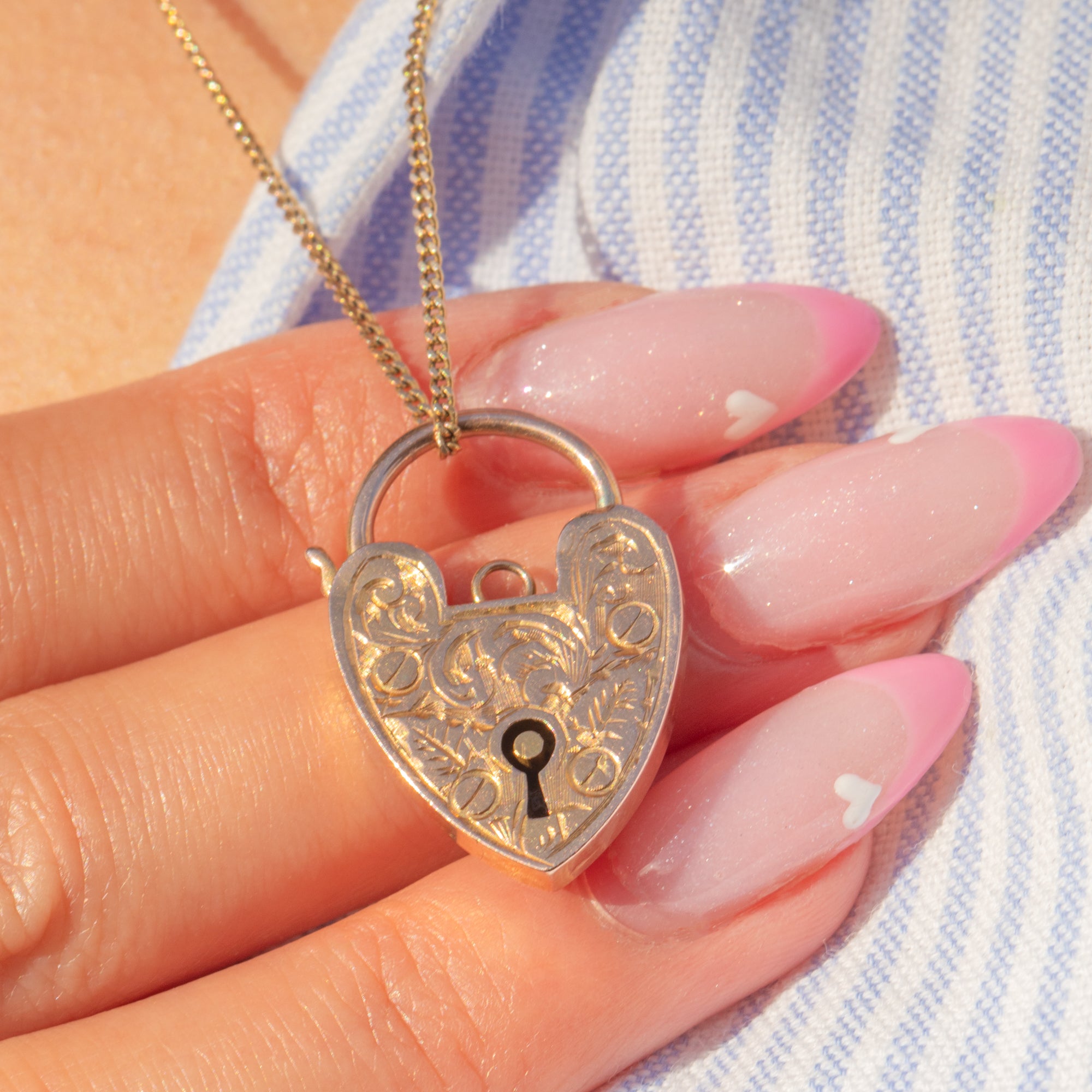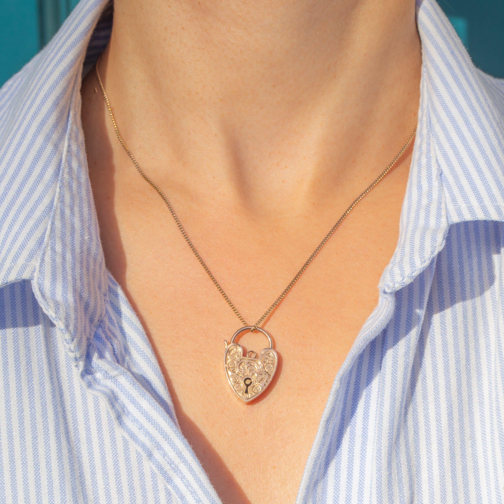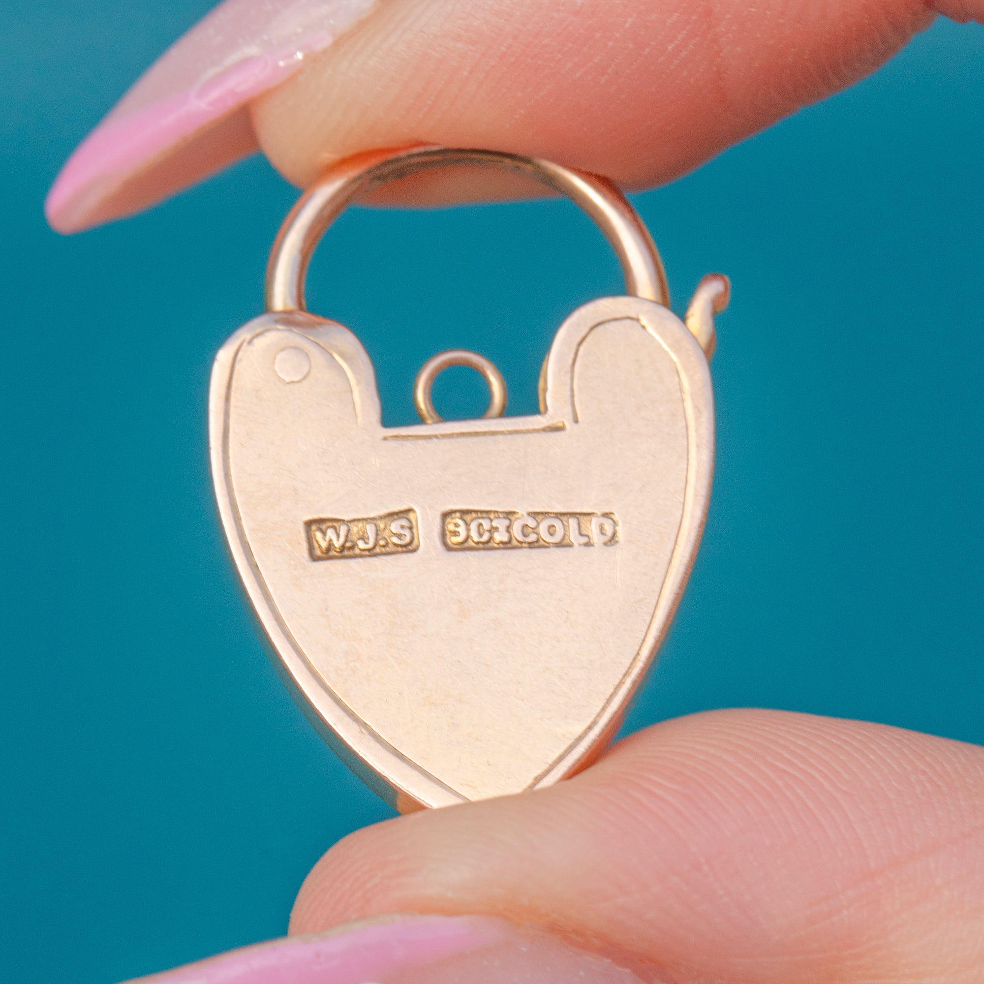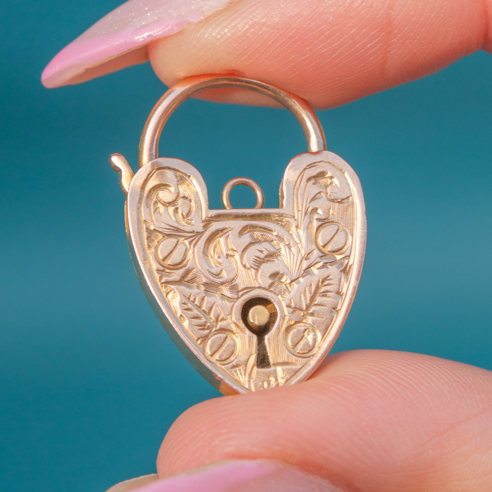 This charming Edwardian 9ct Gold heart padlock is beautifully engraved on both sides, showcasing the romantic detailing so typical of the early 20th century. Crafted in warm, rosy Gold with a working lever, it’s perfect for pairing with a bracelet, chain, or as a standalone pendant.