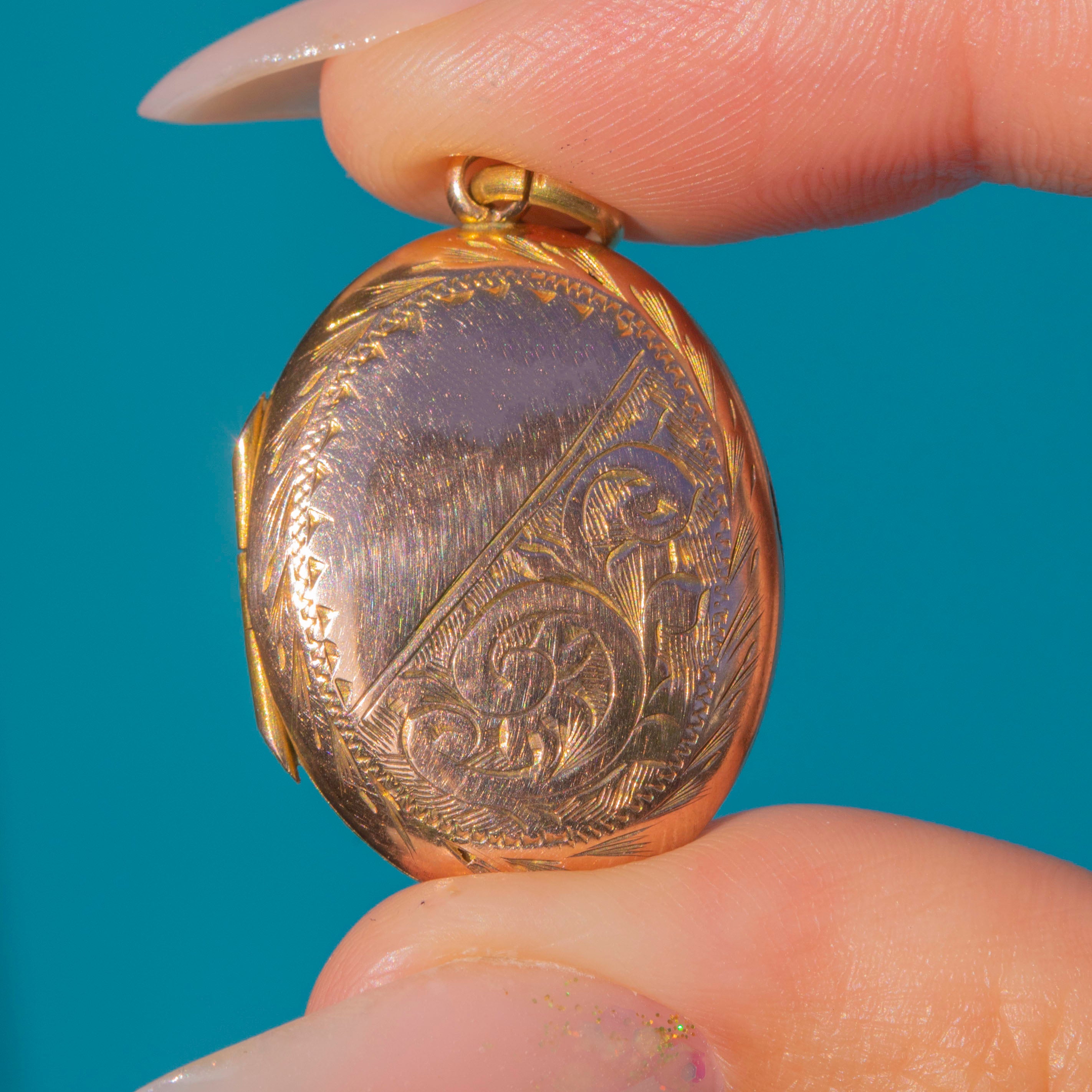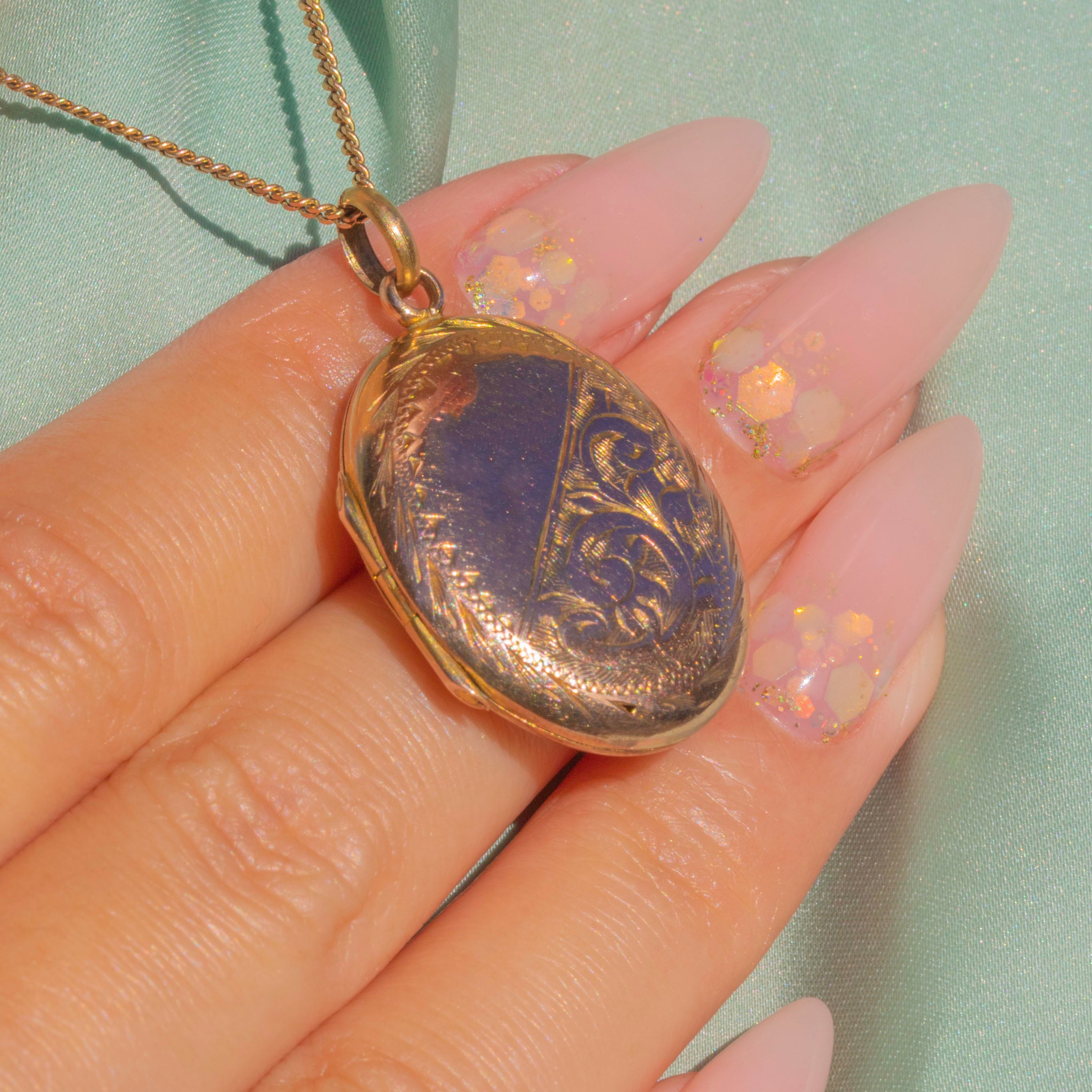 Antique 9ct Gold Engraved Oval Locket
