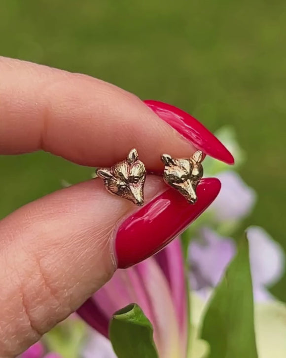 Nestle these antique 9ct Gold fox stud earrings into your lobes and enjoy their splendour forever more! Their dainty fox faces are bursting with character, inlaid with soft, hair engravings from their pricked ears right down to the tip of their nose.