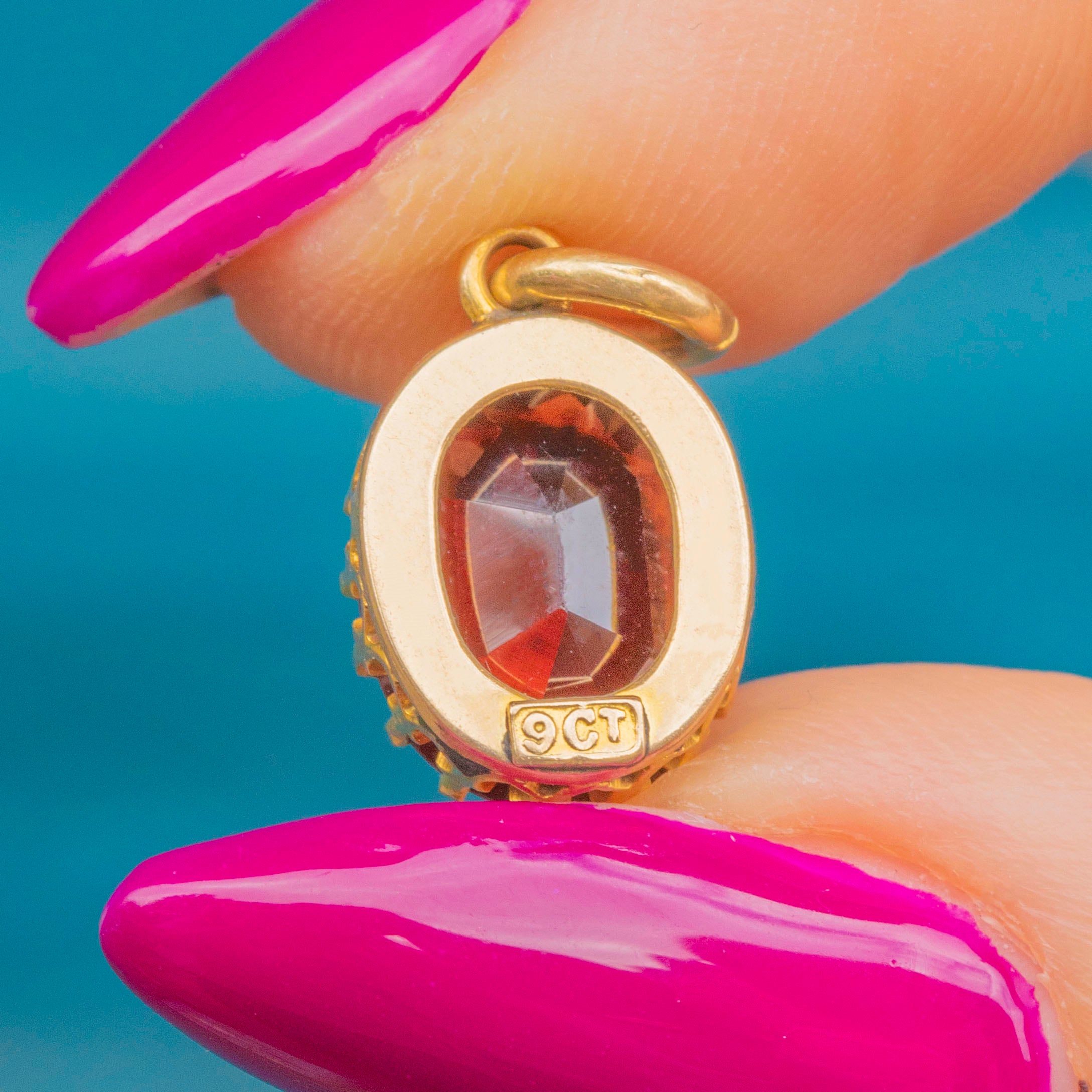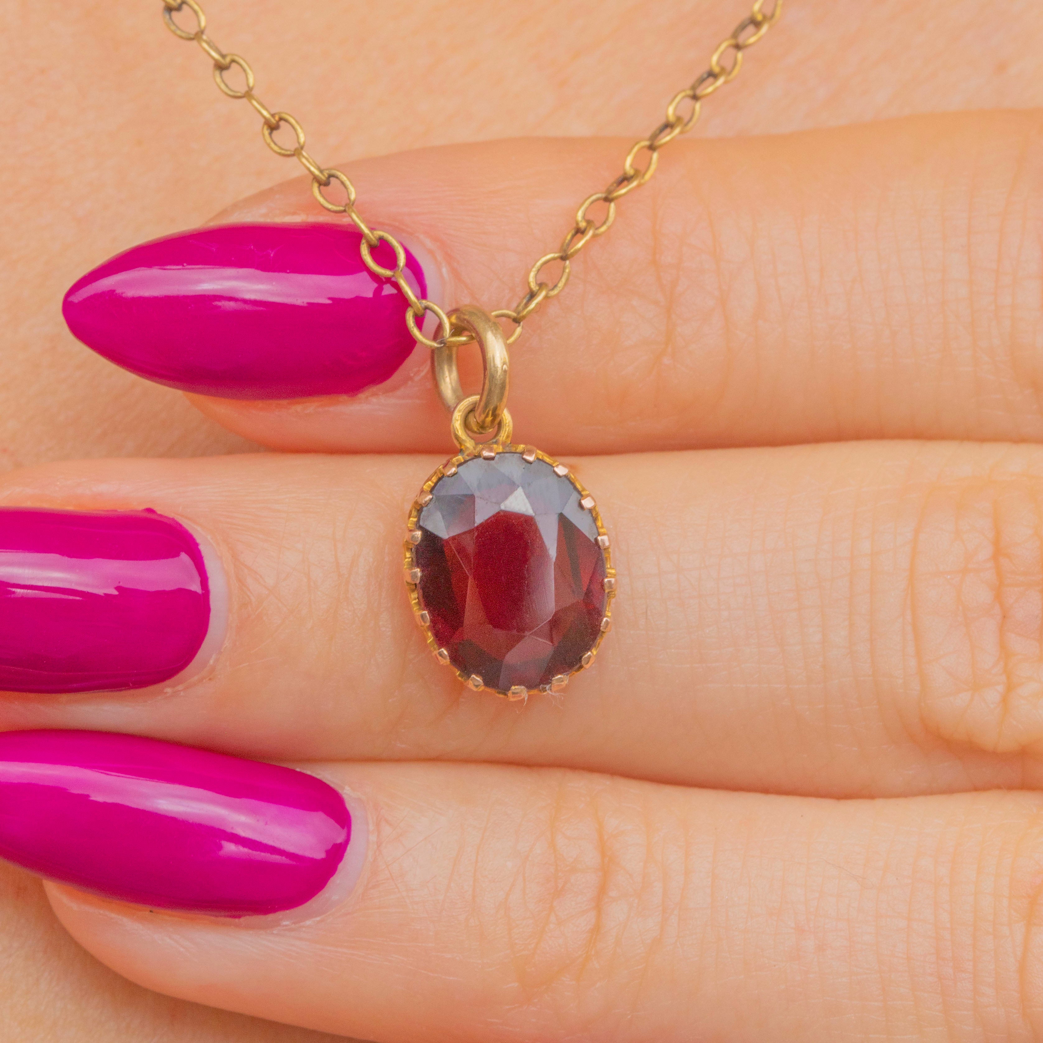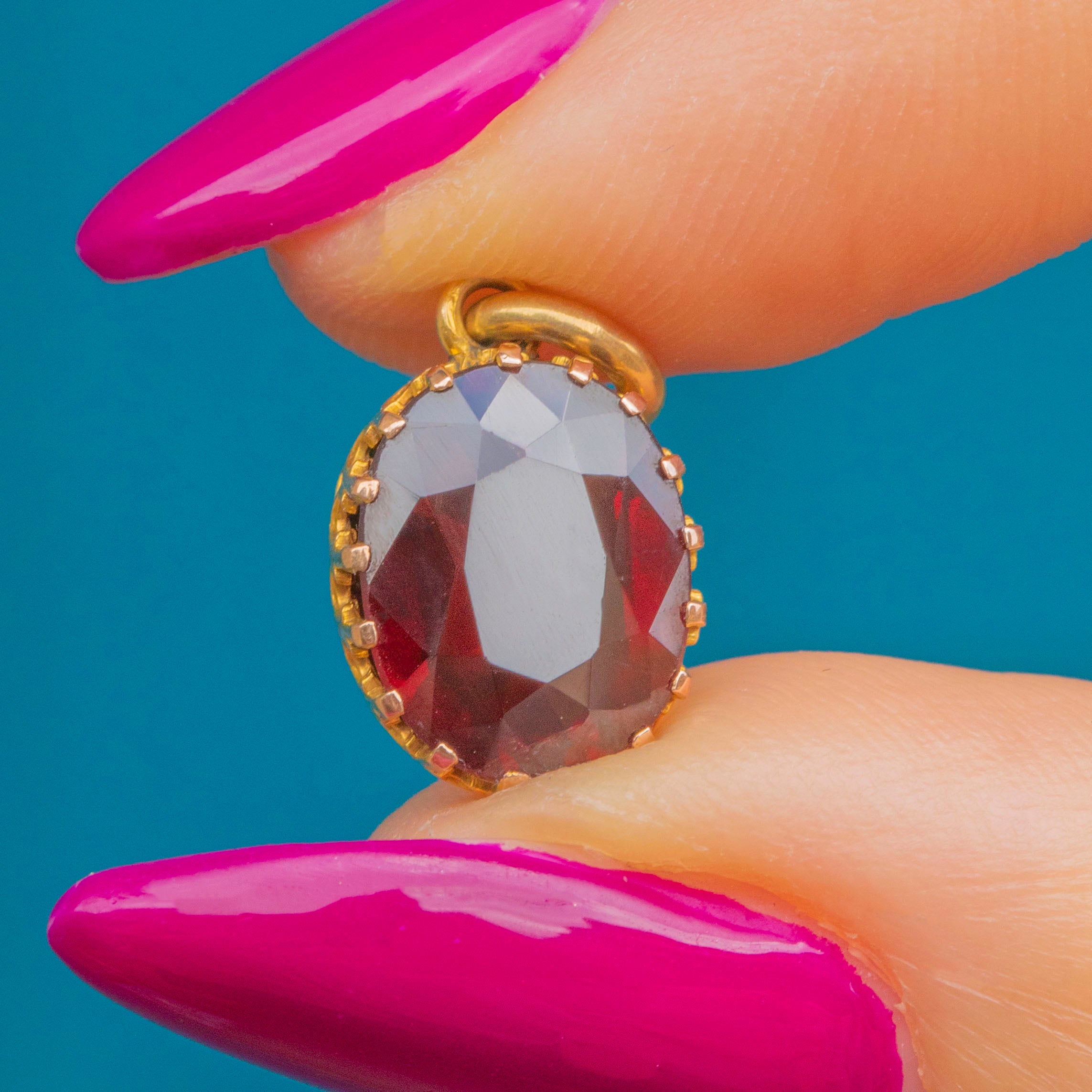 EXCELLENT: The Garnet has been faceted beautifully and is free from any nibbles or notable signs of wear. It is secure within its 9ct Gold settings and is complete with a soldered jump ring, allowing you to wear this antique pendant with utmost confidence.