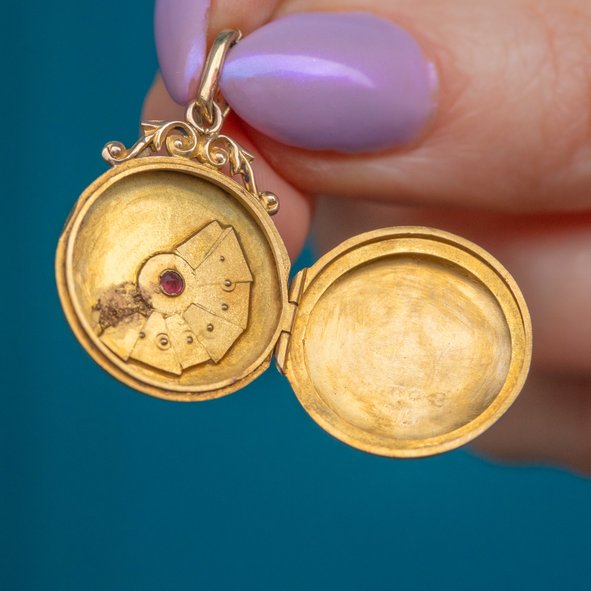 Antique 9ct Gold Garnet Pearl Crescent Moon & Star Locket, c.1914