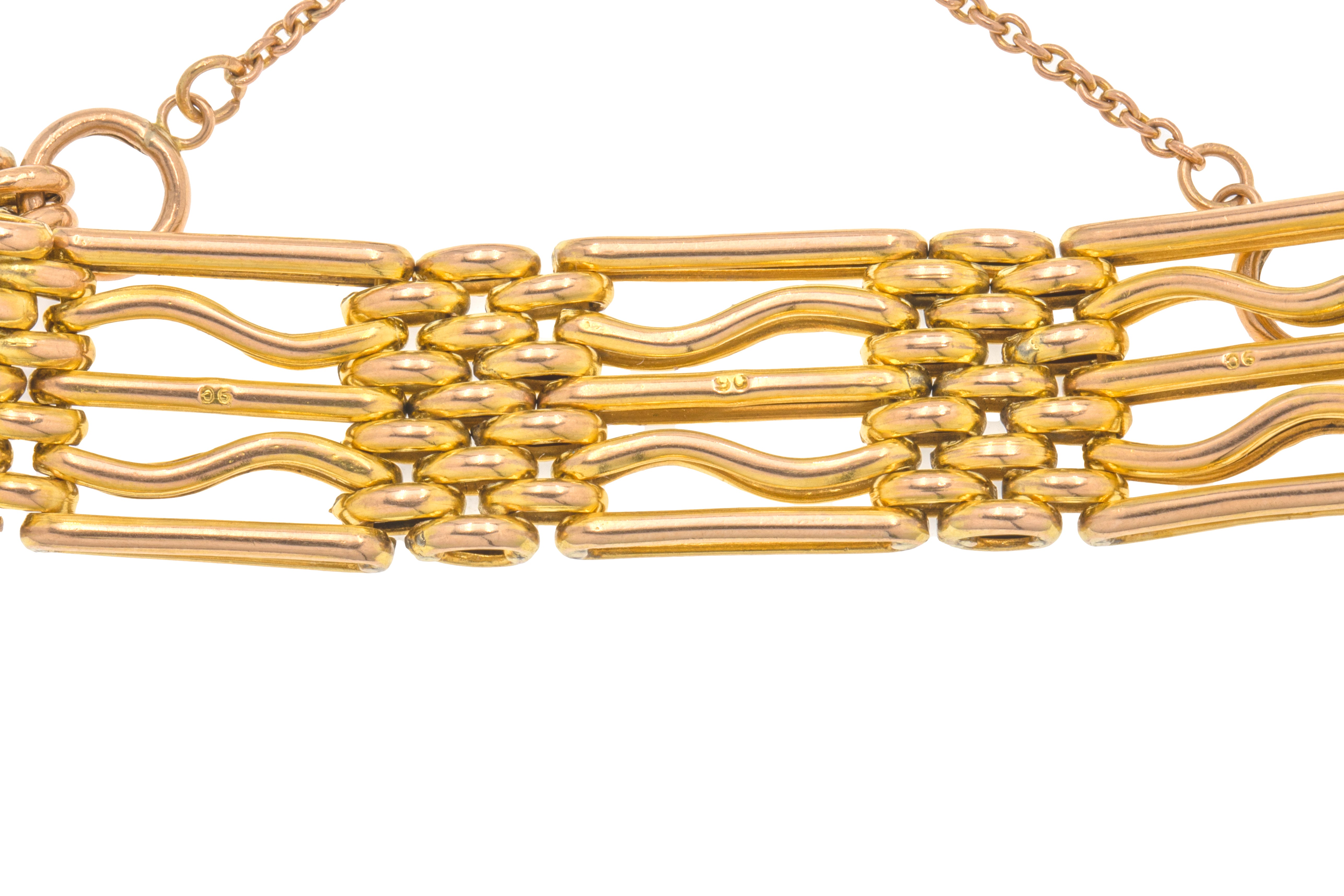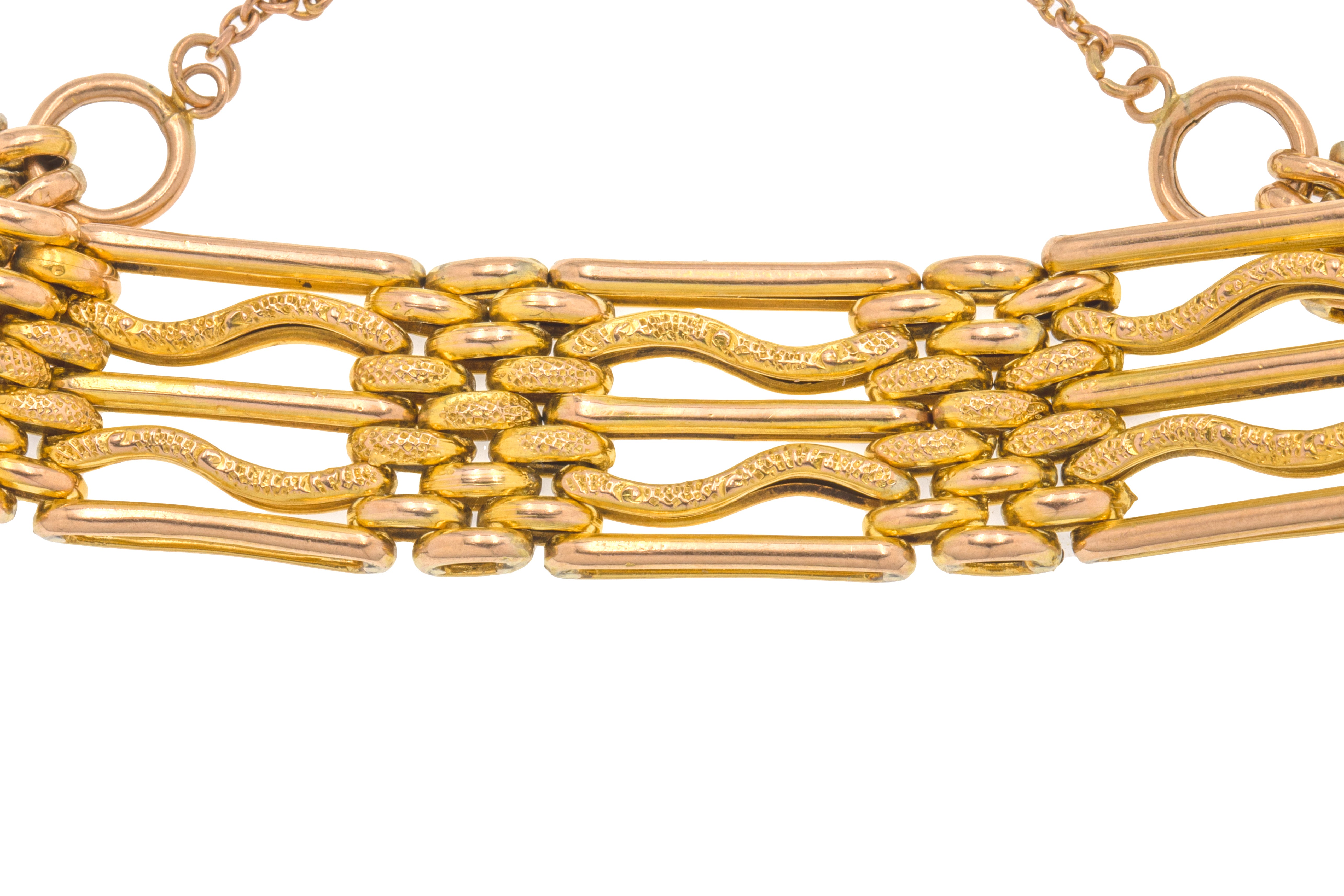 EXCELLENT. Every inch of this antique 9ct Gold Gate bracelet is in excellent condition! The Gold is bright with no wear on any of the links. The engraved patterns are all deep and clear and the padlock is in fine working order, keeping this bracelet securely attached all day and all night long! Ready to be worn or gifted straight away, this Victorian bracelet will make a welcome addition to any woman's jewellery collection.