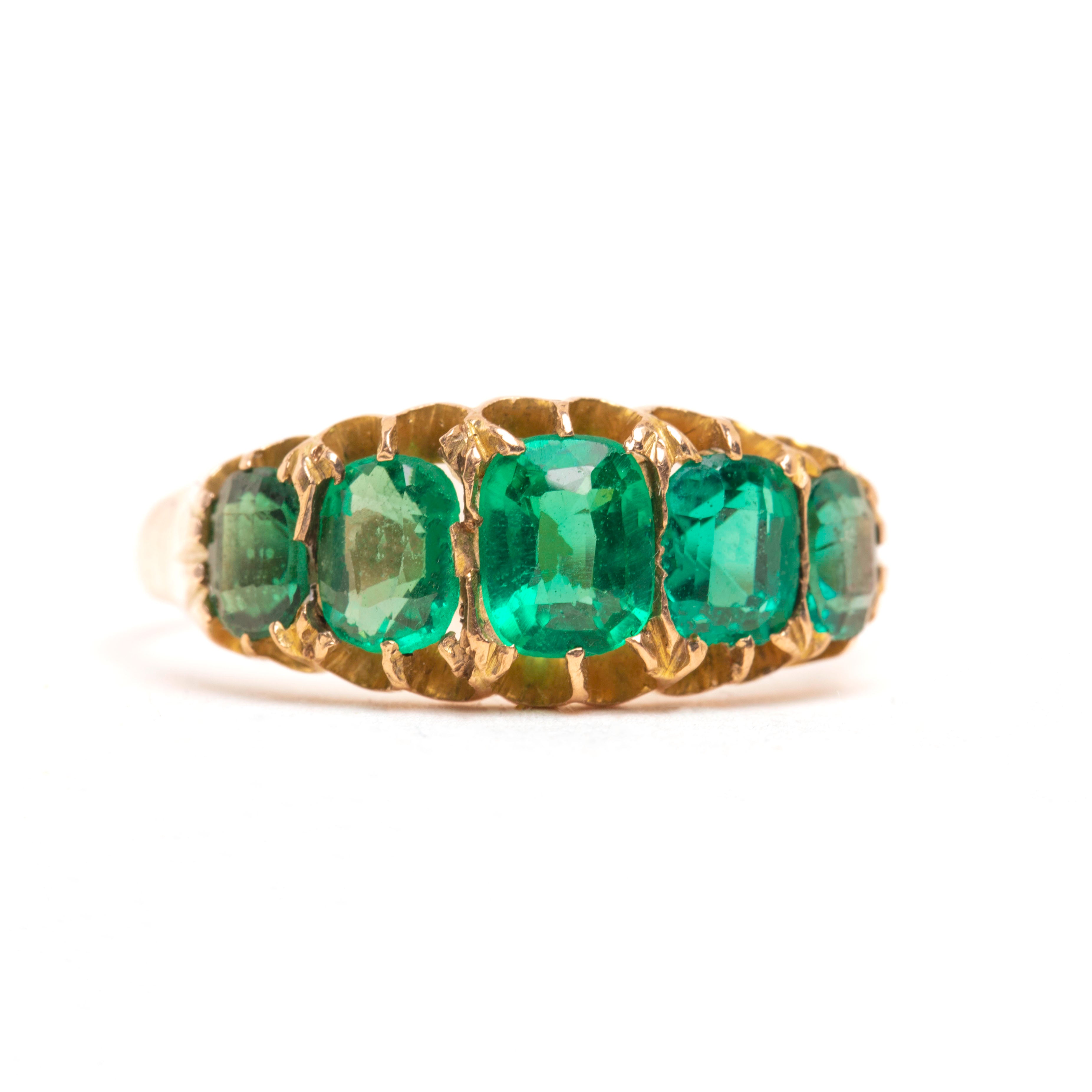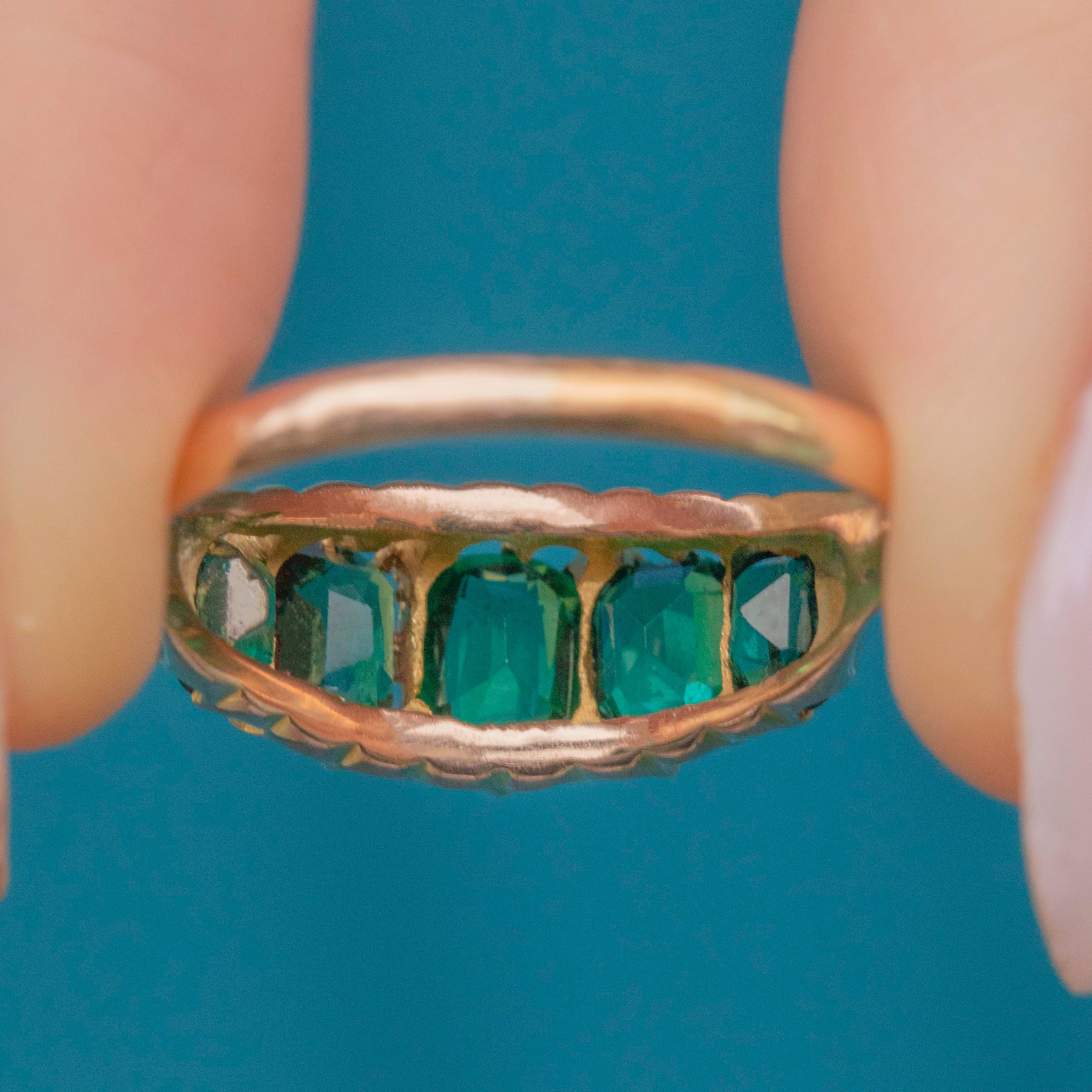 Antique 9ct Gold Green Paste Five Stone Ring, c.1899