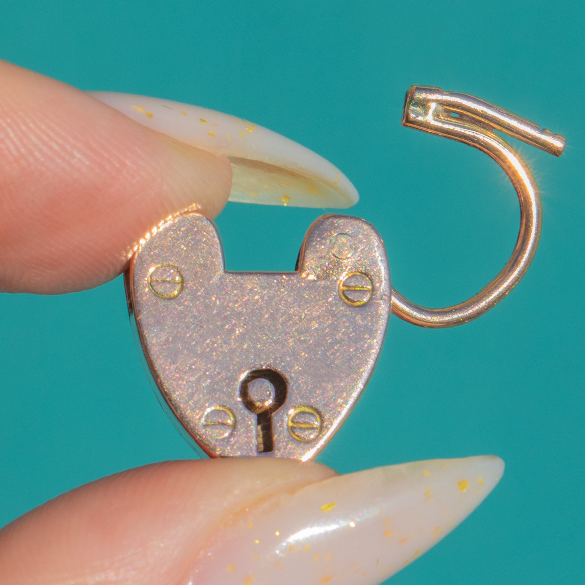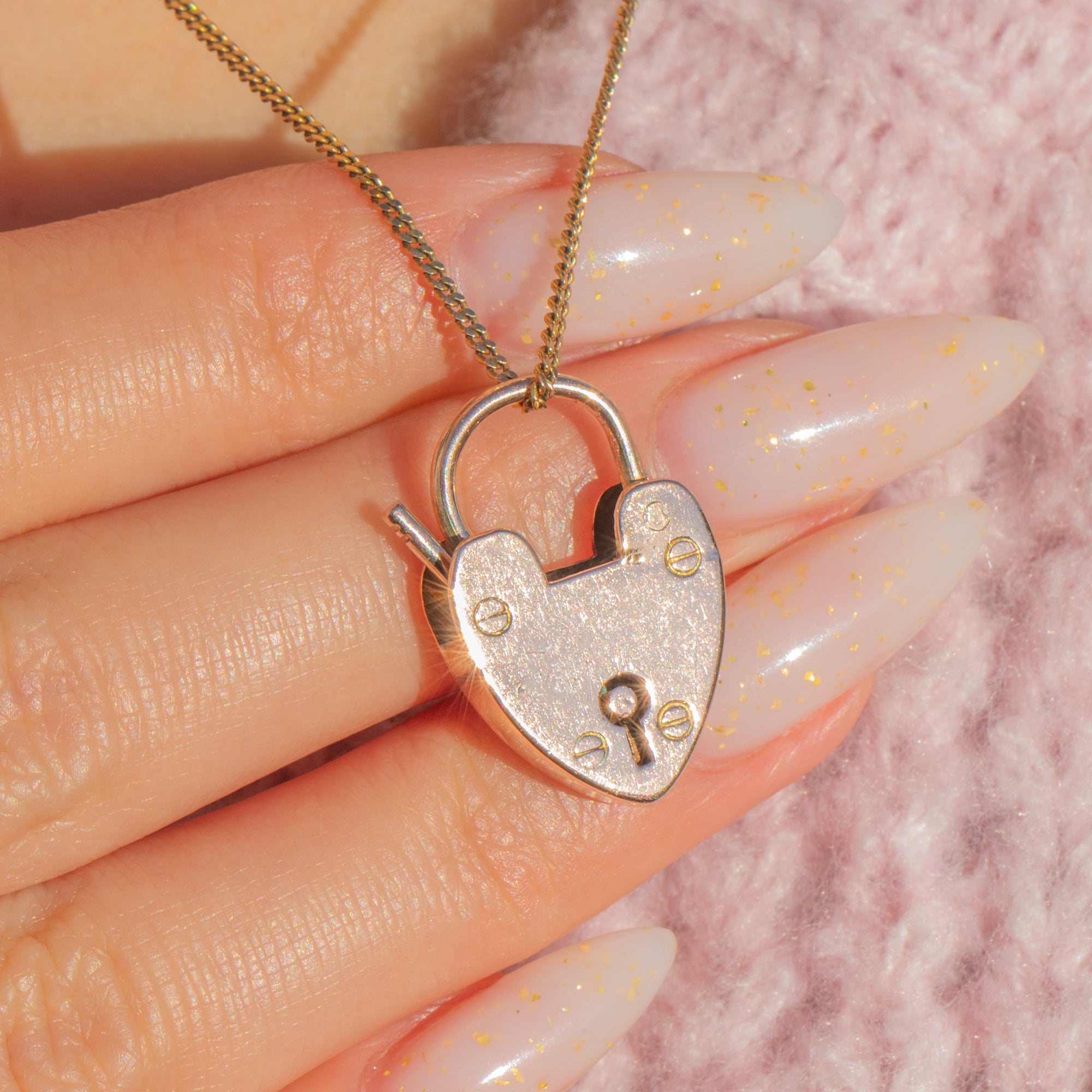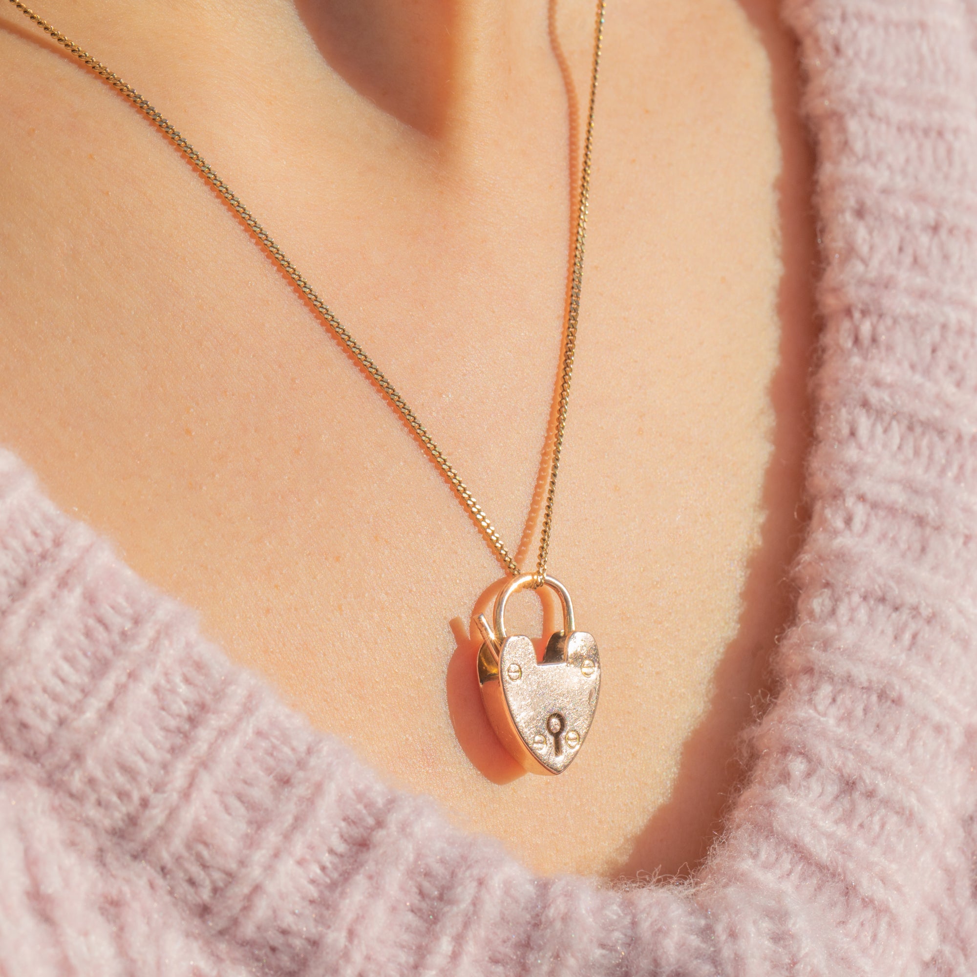 A classic Victorian sweetheart, this functional heart padlock charm is crafted in glowing 9ct Gold. The face is detailed with a pierced keyhole and tiny faux screw rivets; its softly rounded contours and warm hue make it an effortless everyday treasure.