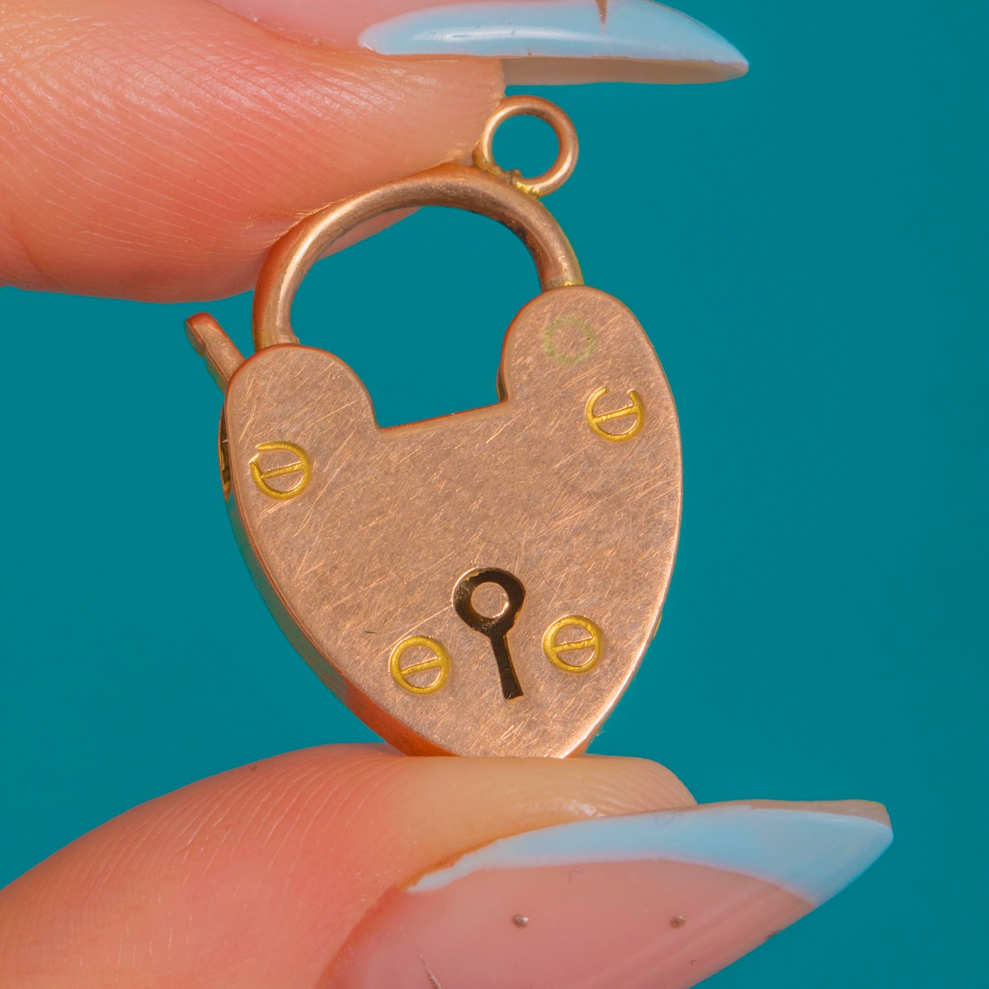 Romantic and wonderfully wearable, this antique heart padlock pendant is crafted in solid 9ct Gold with a warm, rosy hue that sits beautifully against the skin. A quintessential Victorian motif, it’s the sort of piece that pairs effortlessly with a fine chain or adds a little sentiment to a charm collection.