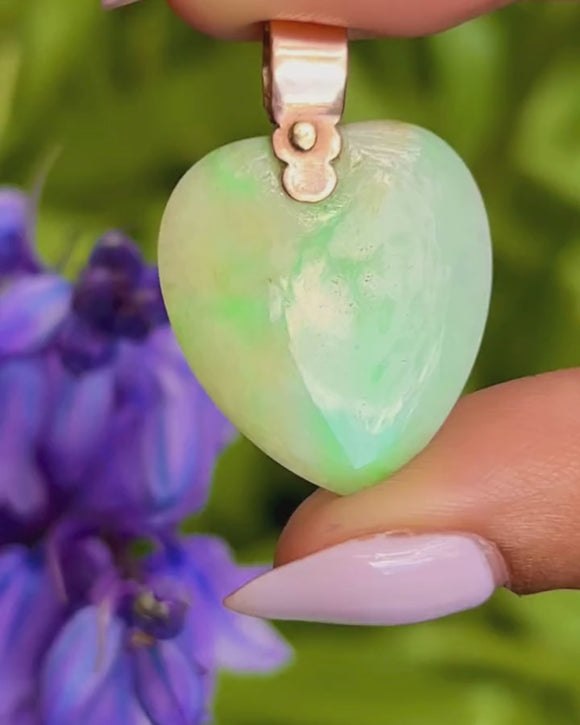 This antique 9ct Gold Jade heart pendant is heavenly! The smooth cut of Jade flaunts mint green hues marbling through her core, with ripples of fern across her surface.