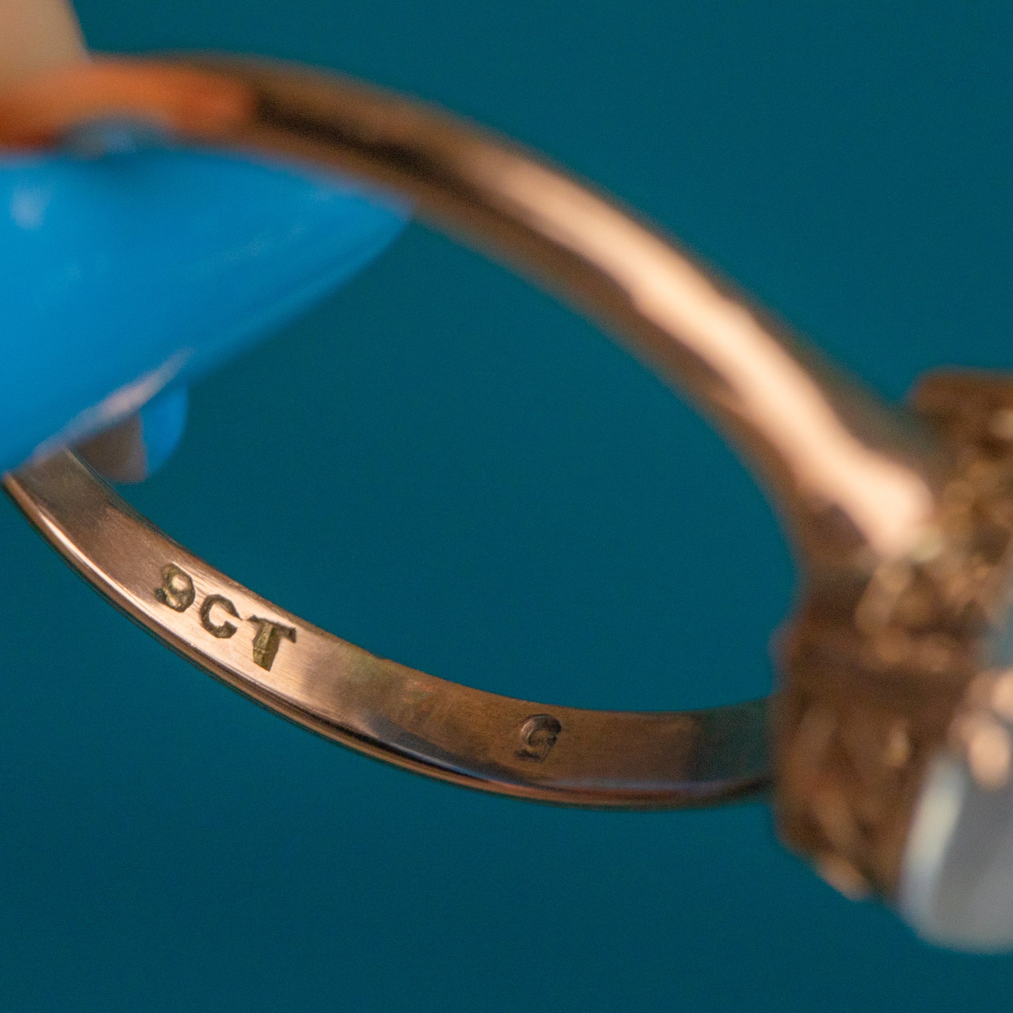 Displayed comfortably within her claw settings, this antique Moonstone ring features a gorgeous gallery and looks magnificent against the warmth of her 9ct Gold band. A stone associated with balance and relaxation, this Moonstone solitaire ring will bring a wave of calm to its wearer!