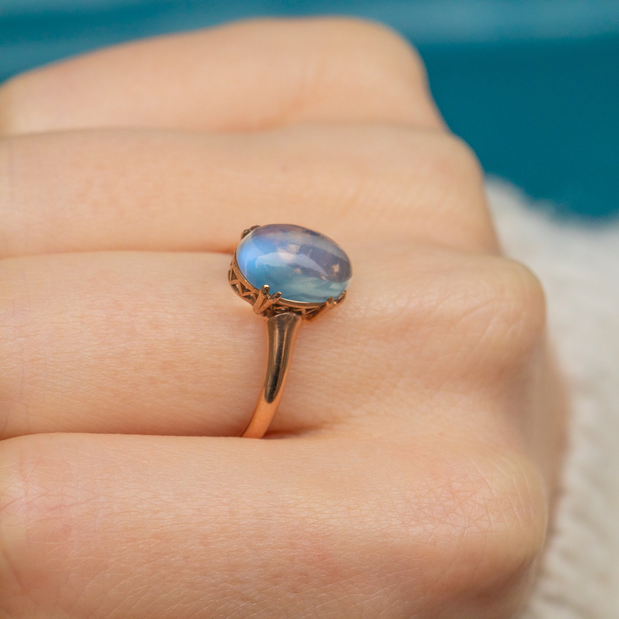 Antique 9ct Gold Moonstone Cabochon Ring 2.70ct