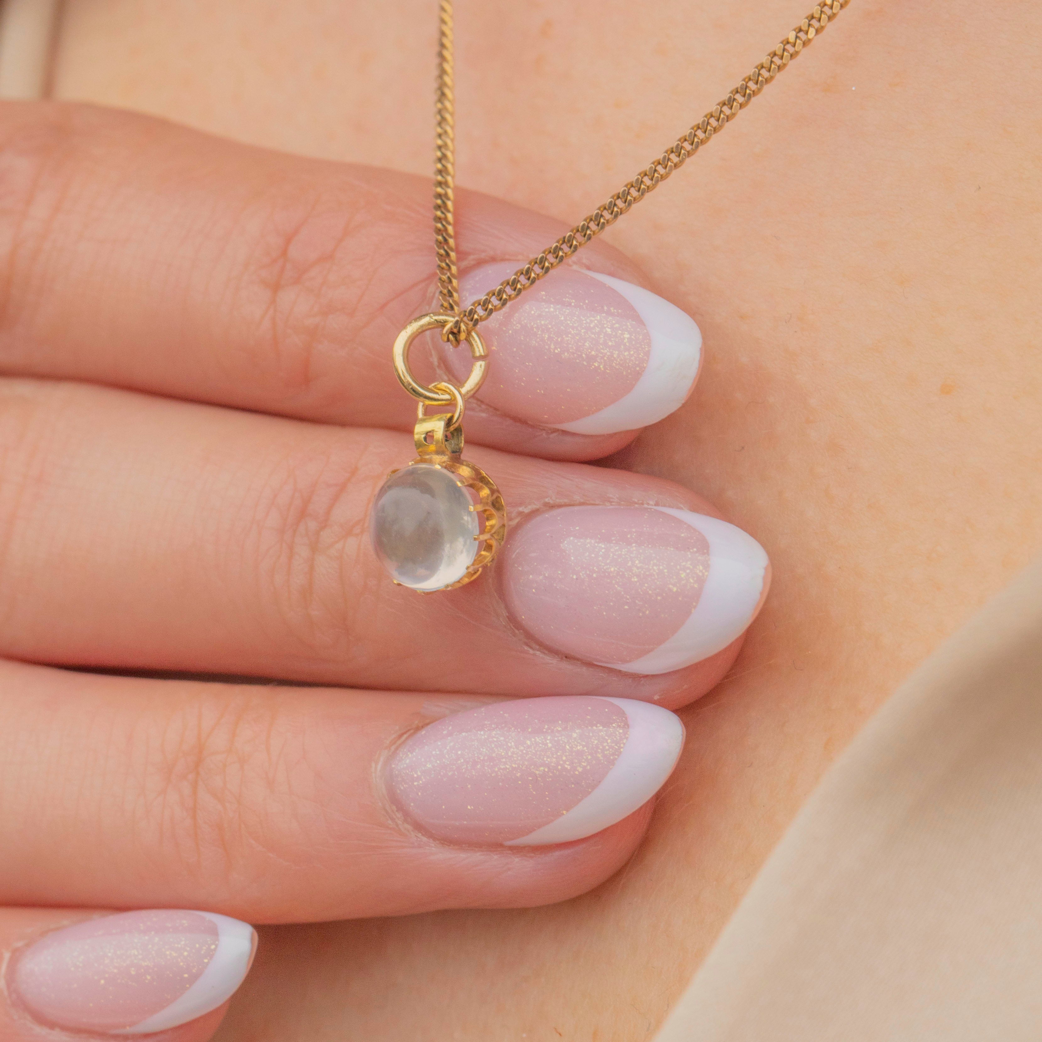EXCELLENT: We consider this Antique 18ct Gold Moonstone Cabochon Charm to be in very good condition. Her Moonstone shows no signs of markings or chips, with a lovely smooth cabochon cut that you can't help but admire.Her Gold is buttery throughout and the soldered jump-ring allows you to wear this Victorian pendant with the utmost confidence!