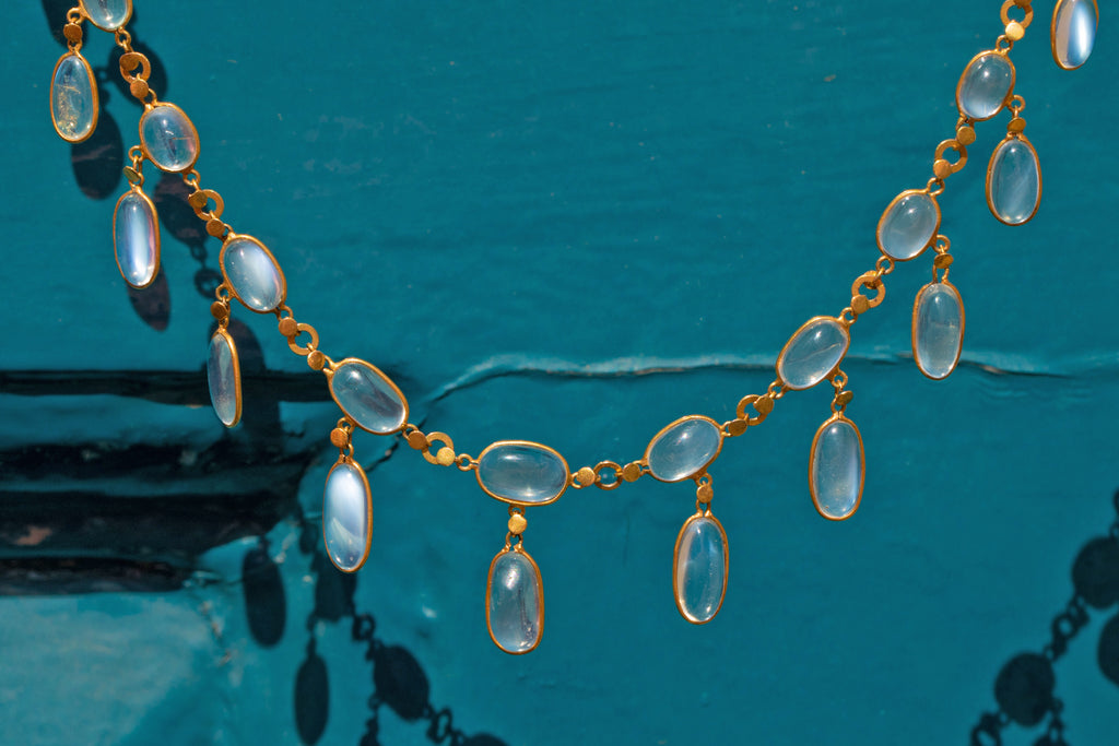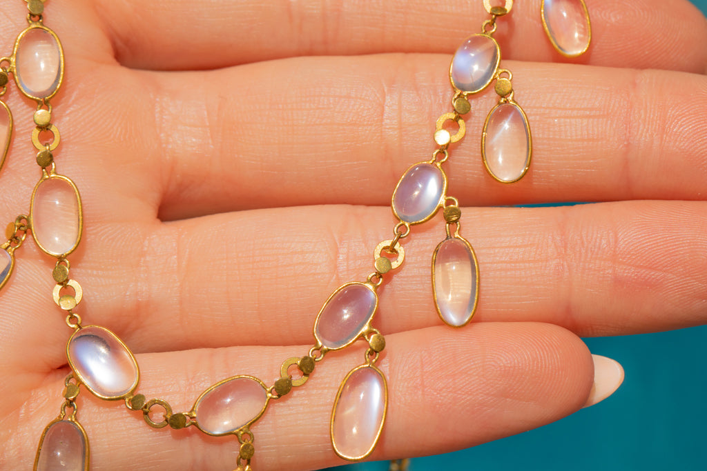 Antique 9ct Gold Moonstone Fringe Necklace, 24.40ct