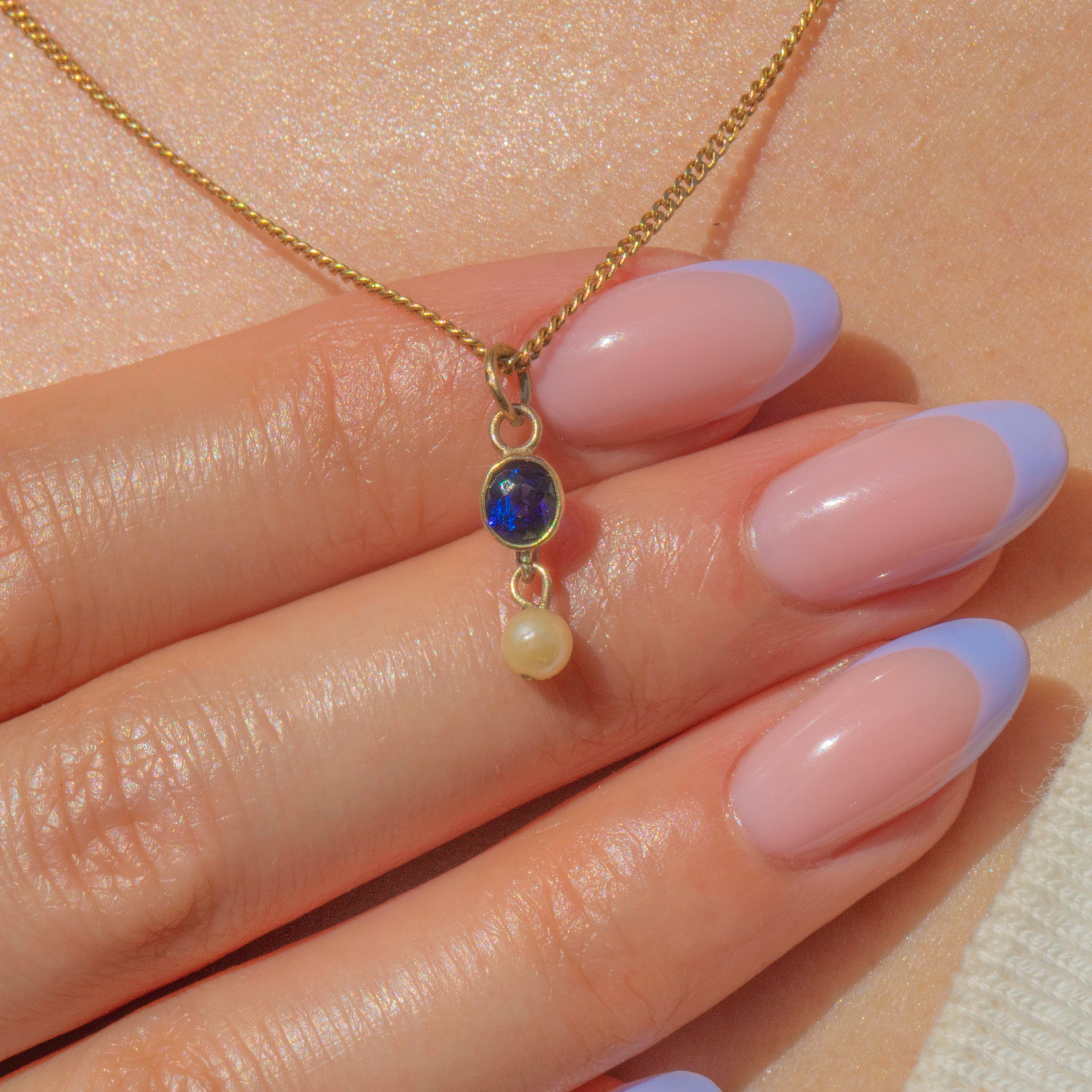 Antique 9ct Gold Natural Sapphire Pearl Charm