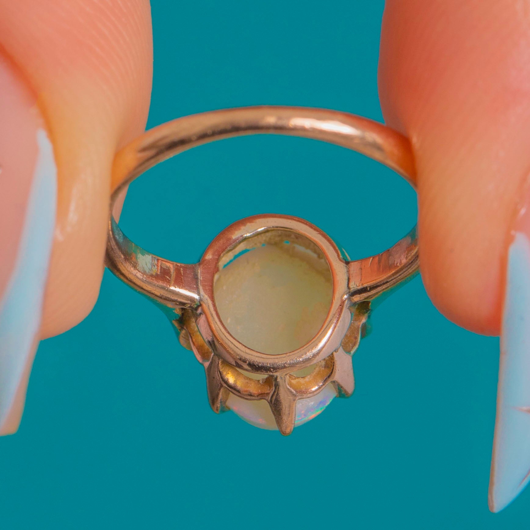 Hand-set multiple claws embrace the Opal securely, while the slim shank keeps the silhouette refined and wearable. A beautiful example of classic Victorian taste, with approximately 1.70cts of mesmerising colour at its heart.
