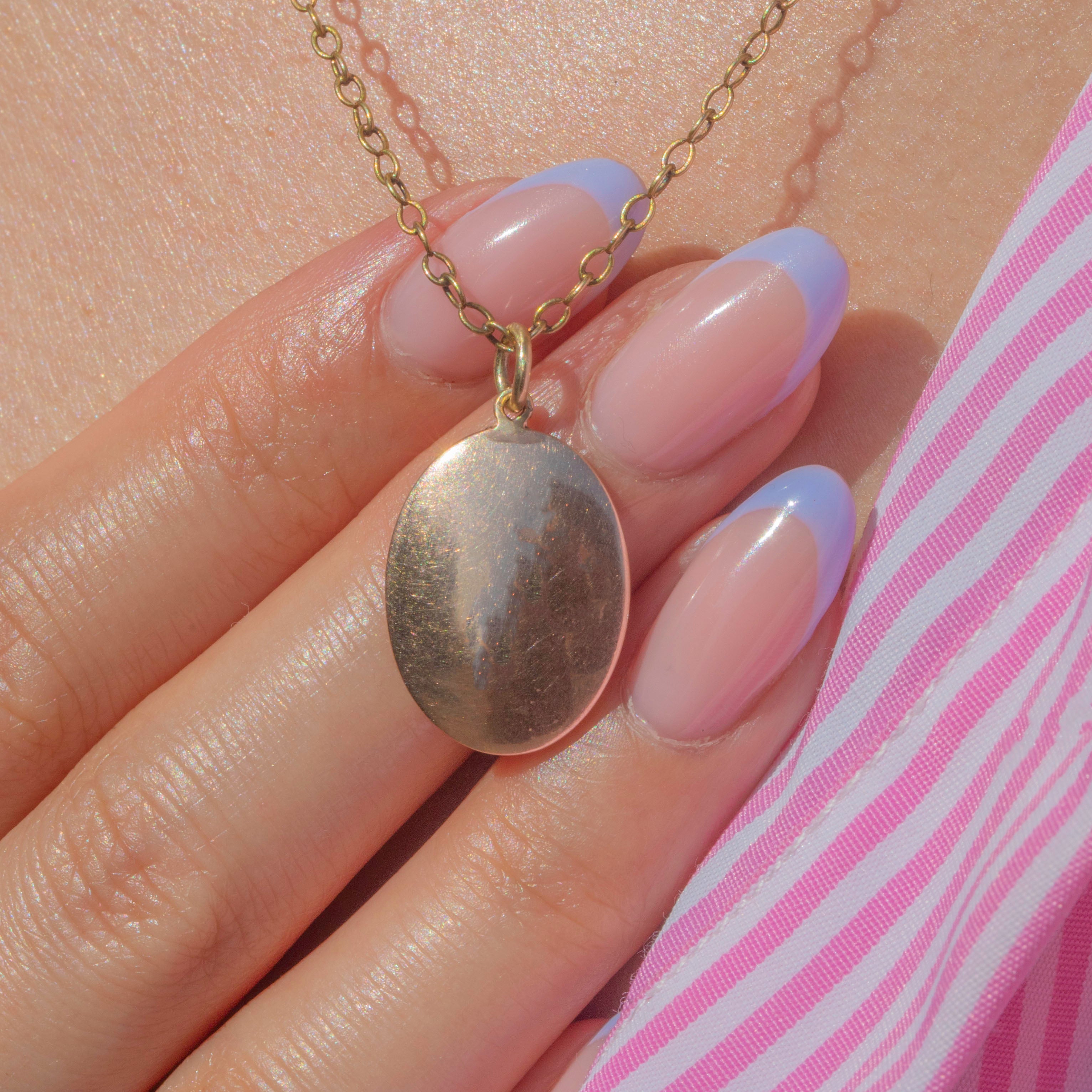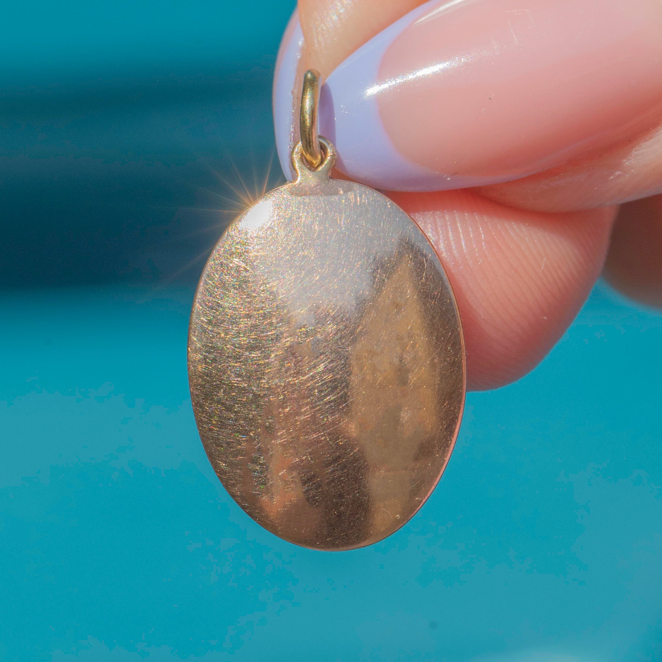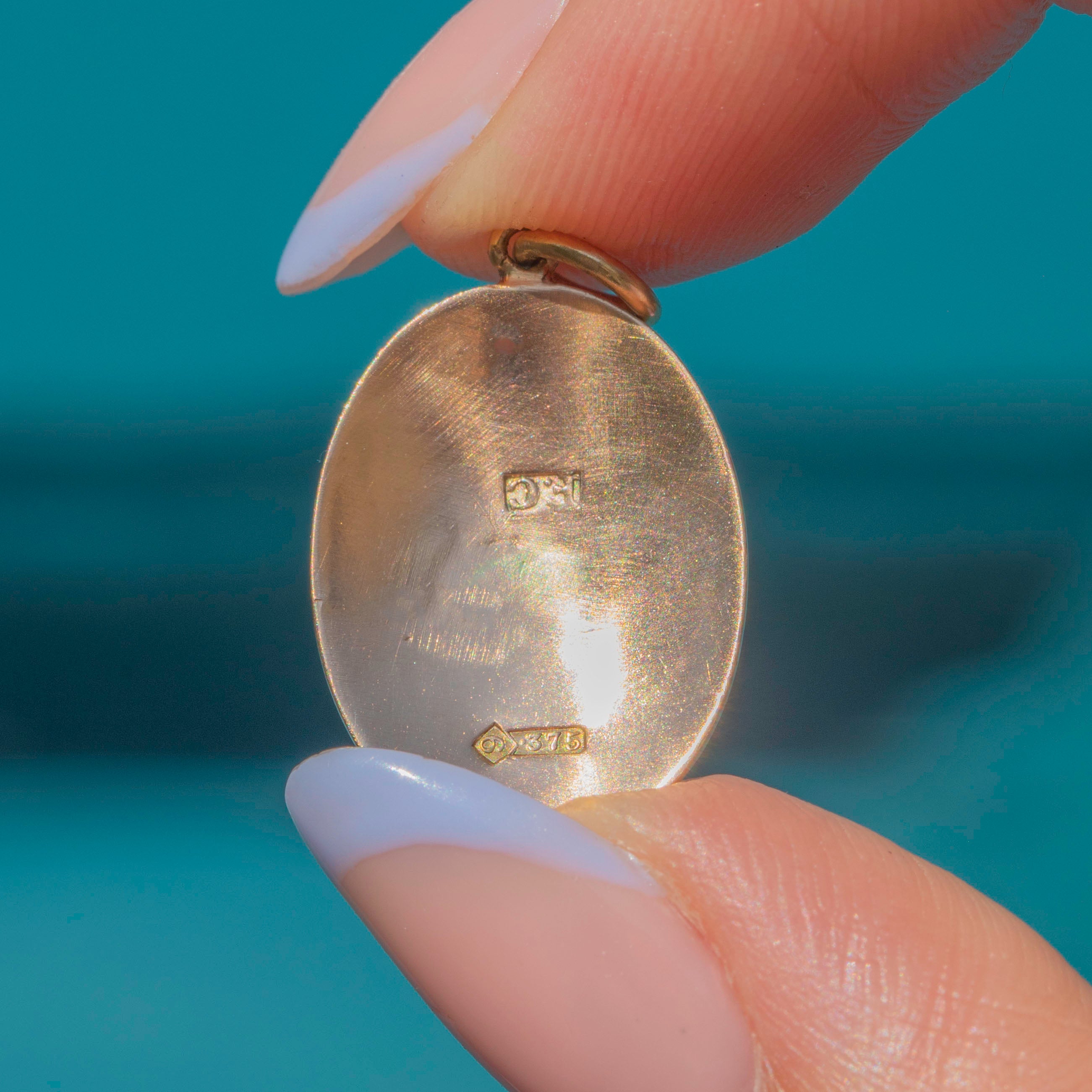 VERY GOOD-EXCELLENT: This antique 9ct Gold oval pendant is in very good-excellent condition. The Gold is glossy and projects a lovely sheen. There is some minor wear to back of the pendant, including some small pinprick marks and a spot of discolouration, though this cannot be seen when wearing and is difficult to spot without a loupe. With a securely soldered jump ring, you can wear this Victorian pendant with confidence!