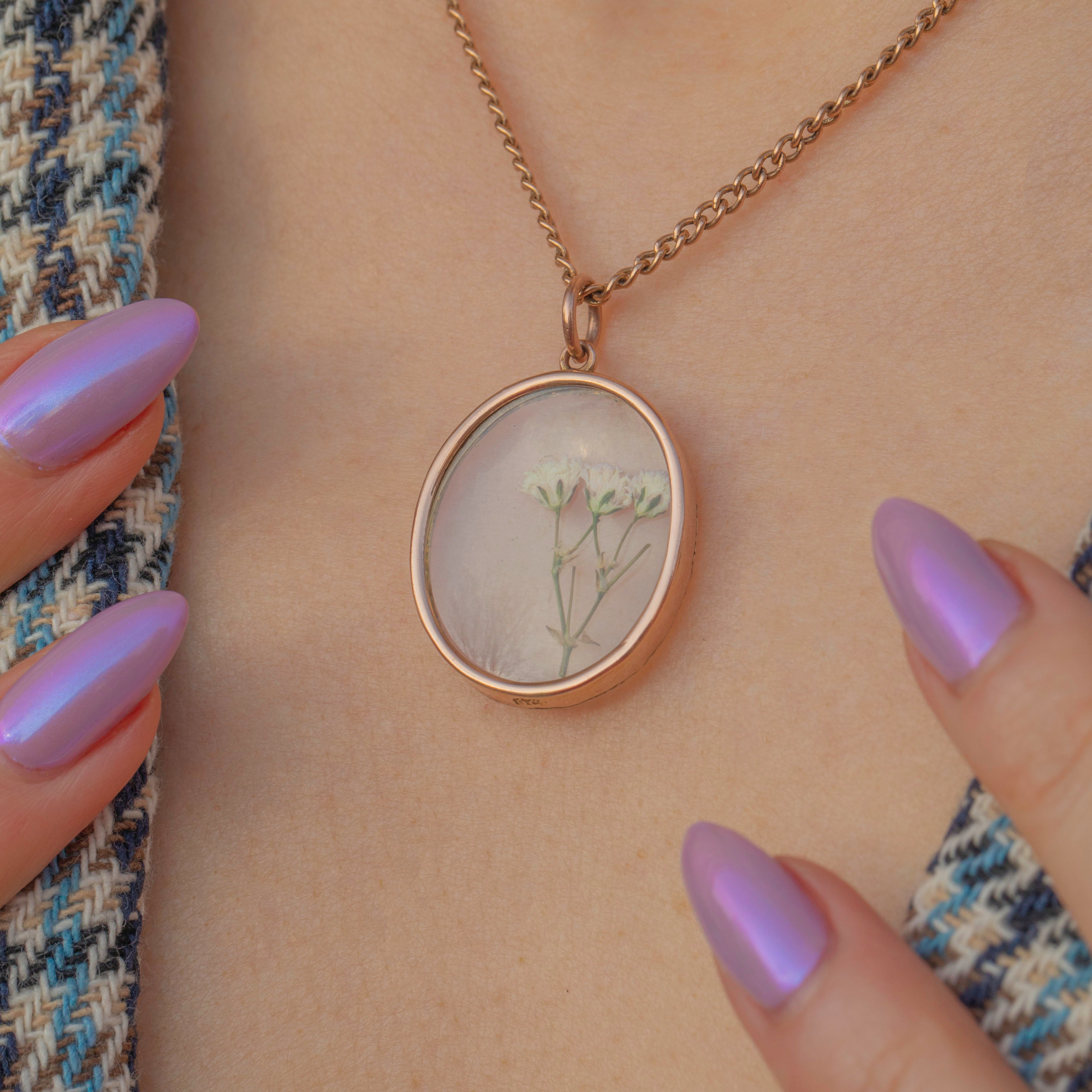 A small sprig of white blooms are encased within the glass panels adding a feminine finishing touch. The contents can easily be added to or replaced, providing you with endless styling possibilities and making this Edwardian locket a wonderful sentimental gift choice!