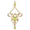 This Art Nouveau pendant will make for a show-stopping adornment on your chest. We love the lime green hues from the Peridot, which is balanced beautifully by the Pearls! This feminine masterpiece will be a sure winner for you, and your collection.