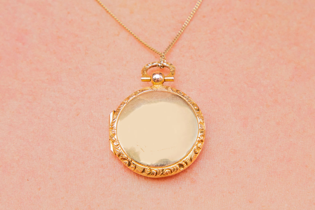 Antique 9ct Gold Round Embossed Locket