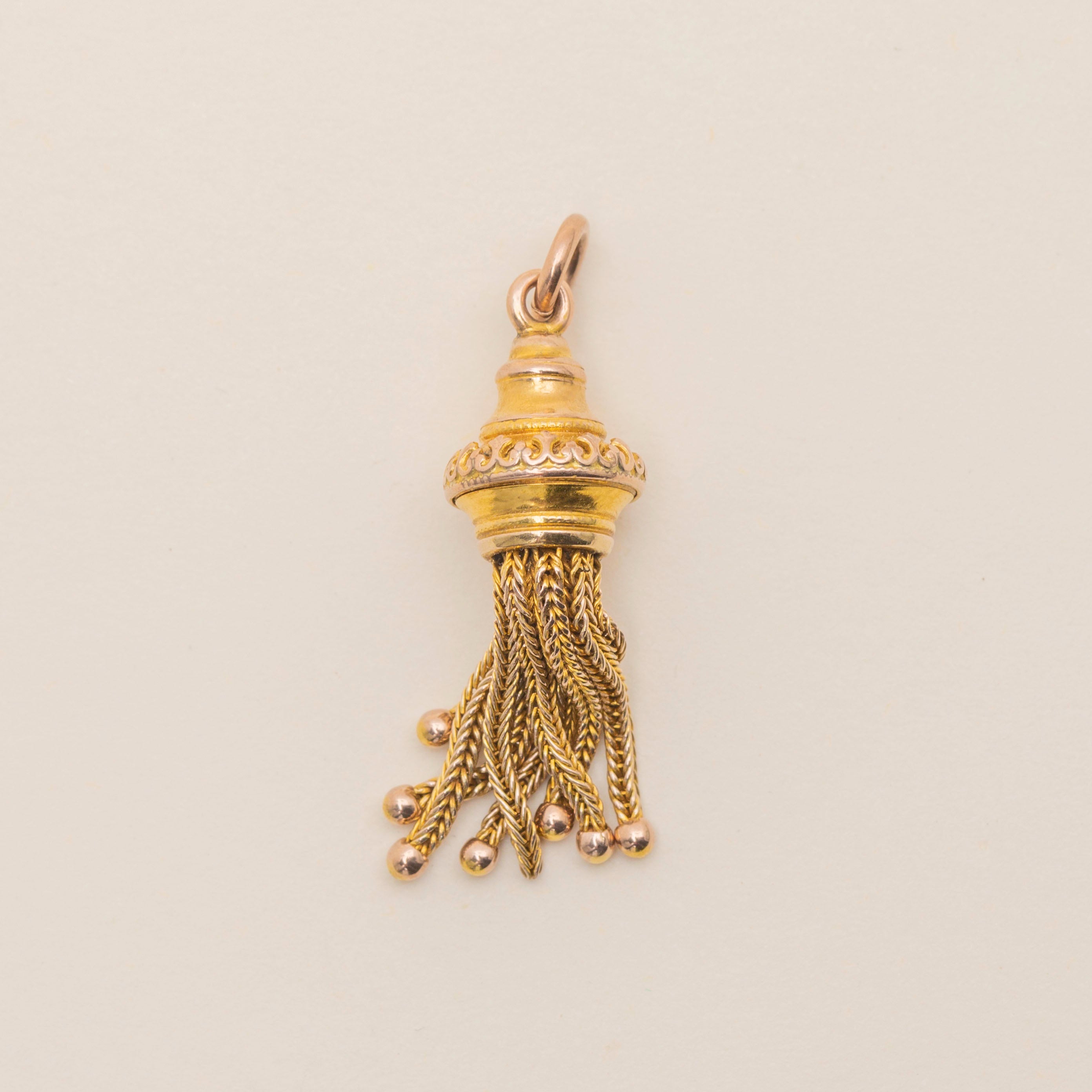 This Victorian 9ct Gold tassel drop pendant exudes antique charm! Crafted from solid 9ct Gold, this antique tassel pendant boasts ornate details spanning the smoothly formed top.