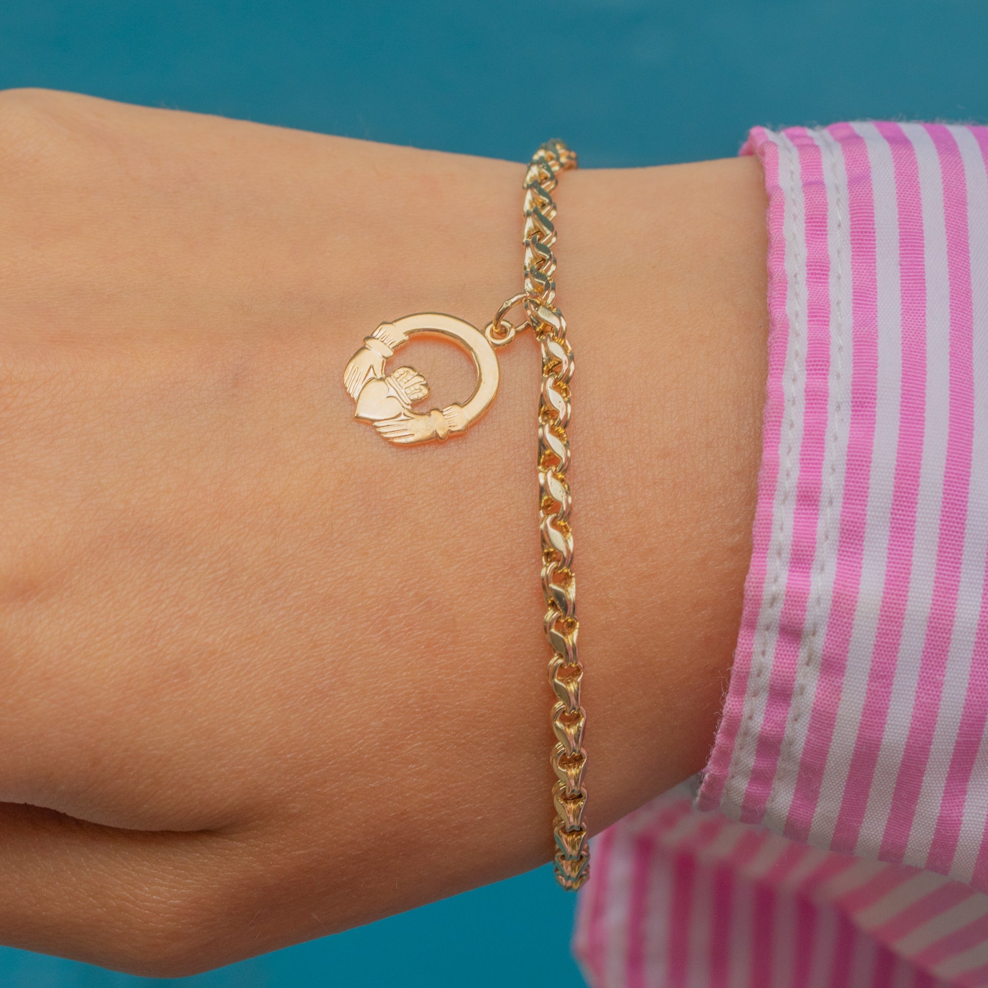 The Claddagh is a traditional symbol in Irish jewellery, comprised of two hands, a heart and crown representing friendship love and loyalty respectively. This sweet pendant adds bundles of character and charm to the bracelet and is sure to bring a little luck wherever you go!