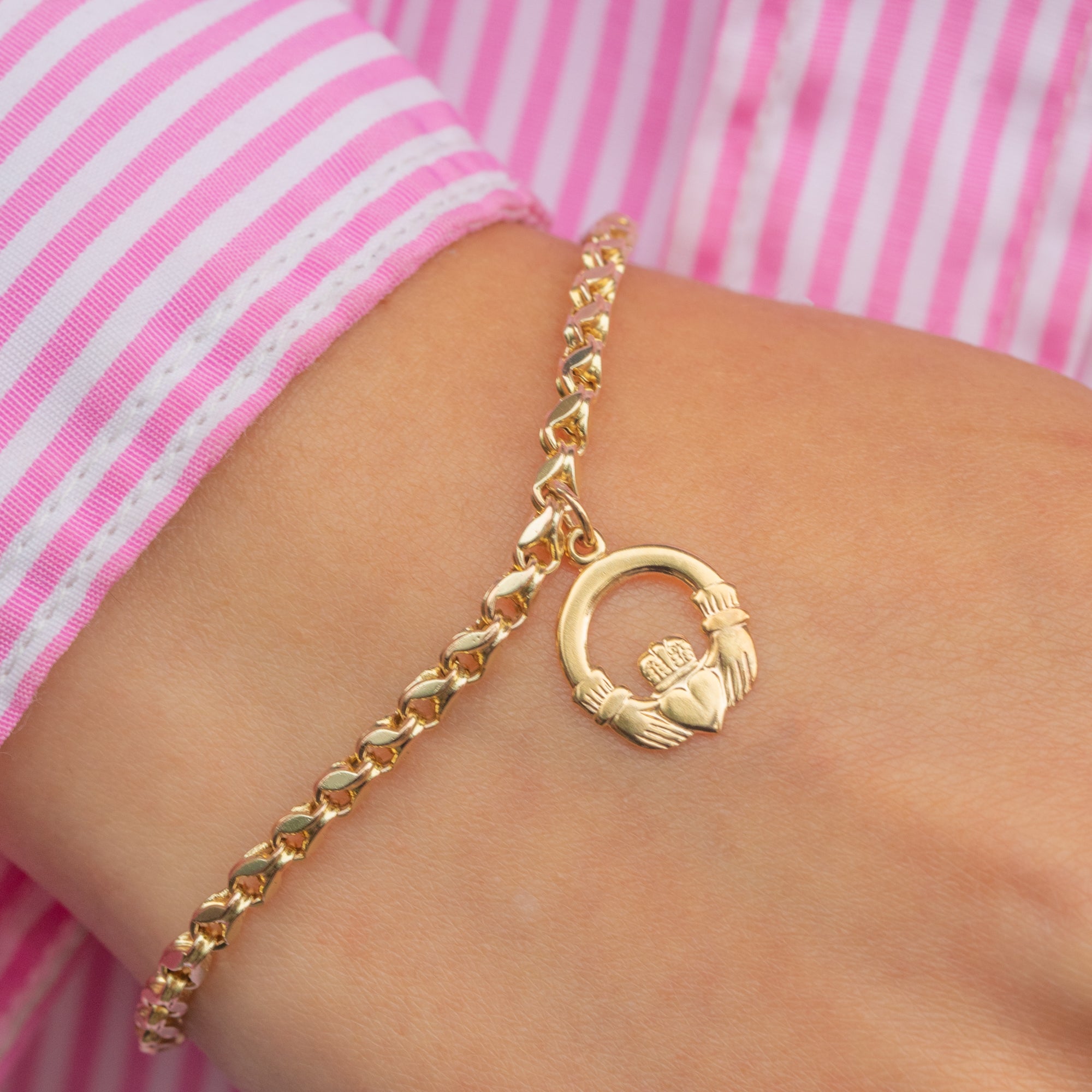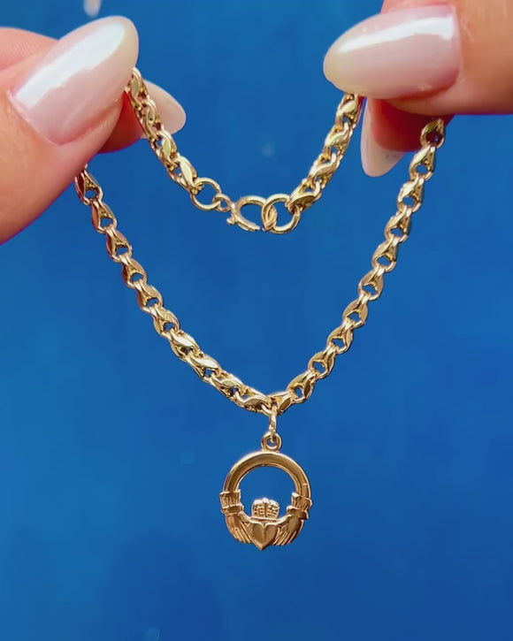 Antique 9ct Gold Tulip Bracelet with Claddagh Charm